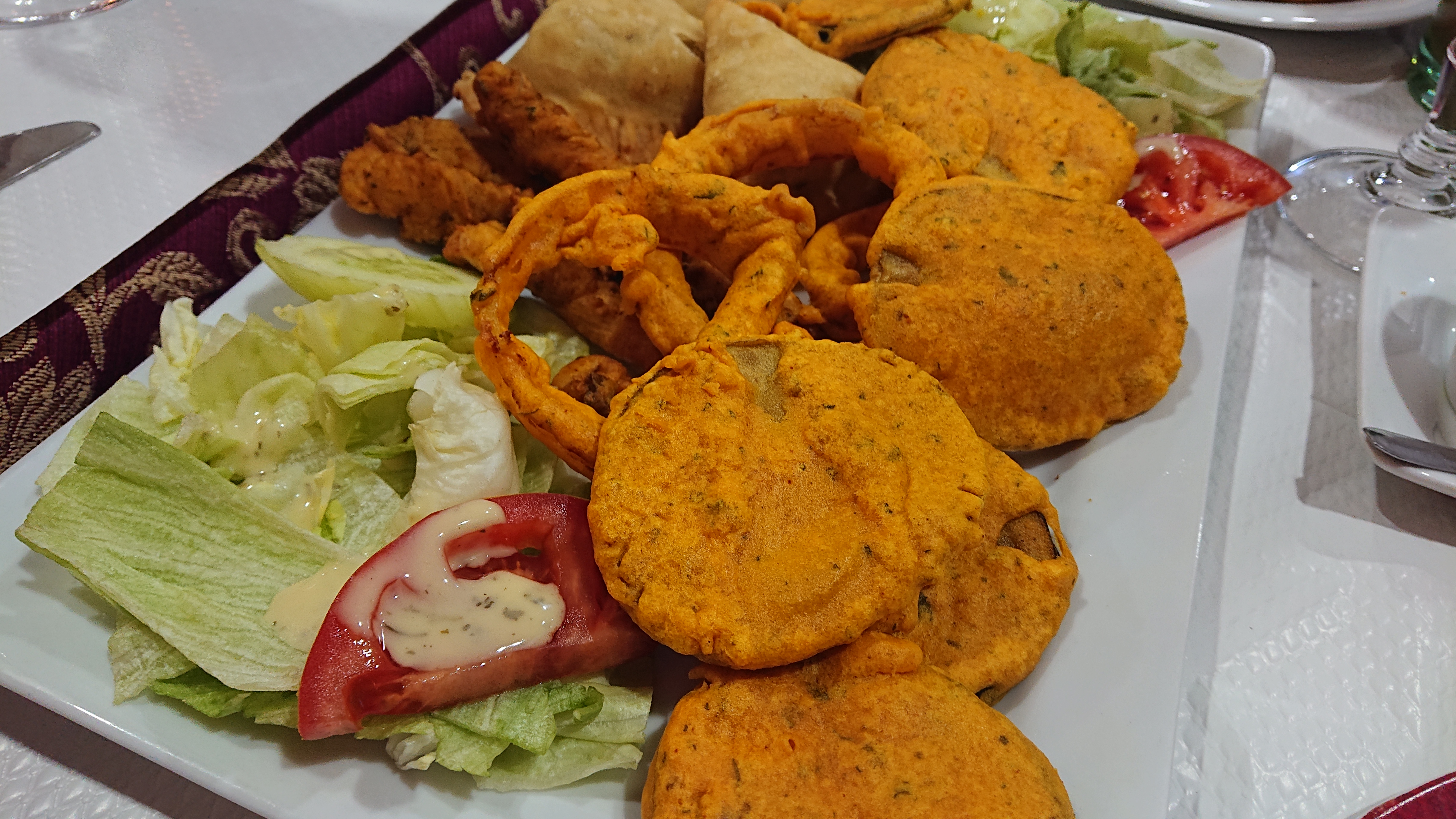 Bonne entrée et cocktail mais attente insupportable dans un resto ou plutôt une boite de nuit indienne, tant la musique était forte. Plus d'une heure et demie d'attente...