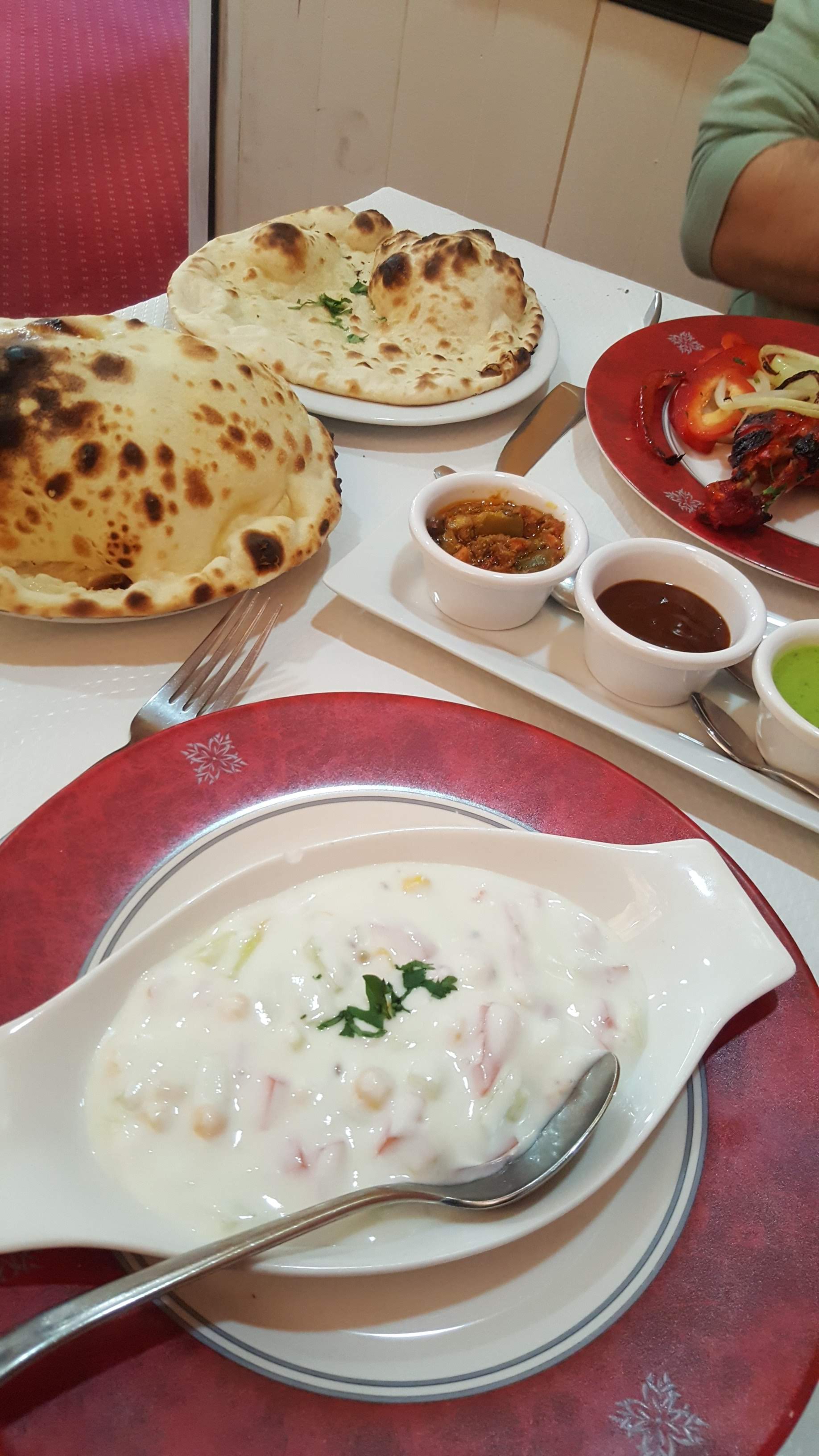 Première fois car je suis cliente de Creil alors très bon service tous étaient bon mais mon seul point noir le poulet vindaloo pas assez de poulet et beaucoup trop épicé a Creil quand j y vais je l ai très léger le riz pulao différents mais excellent merci