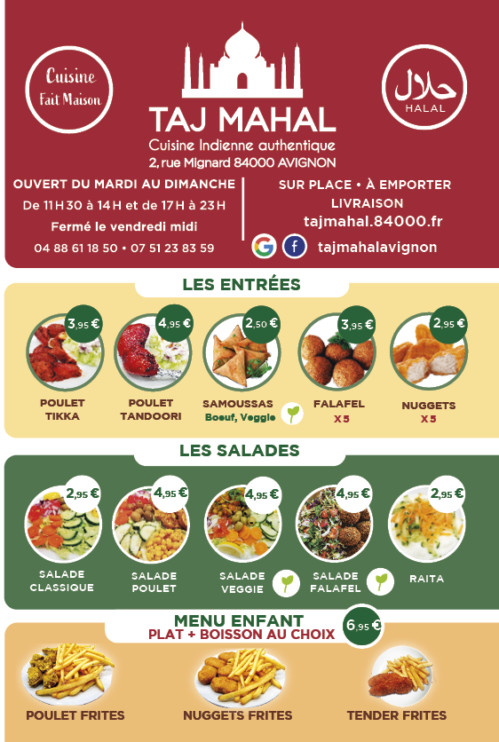 Au top ! Un accueil chaleureux, sympathique et un service de très bonne qualité. Le plats sont généreusement servis, on a beaucoup de choix et les prix sont très abordables au vu la qualité des ingrédients et leur goût exceptionnel. Une très bonne adresse sur Avignon idéale pour les petites et grosses faims. Je recommande personnellement l’assiette Taj Mahal, un délice !!