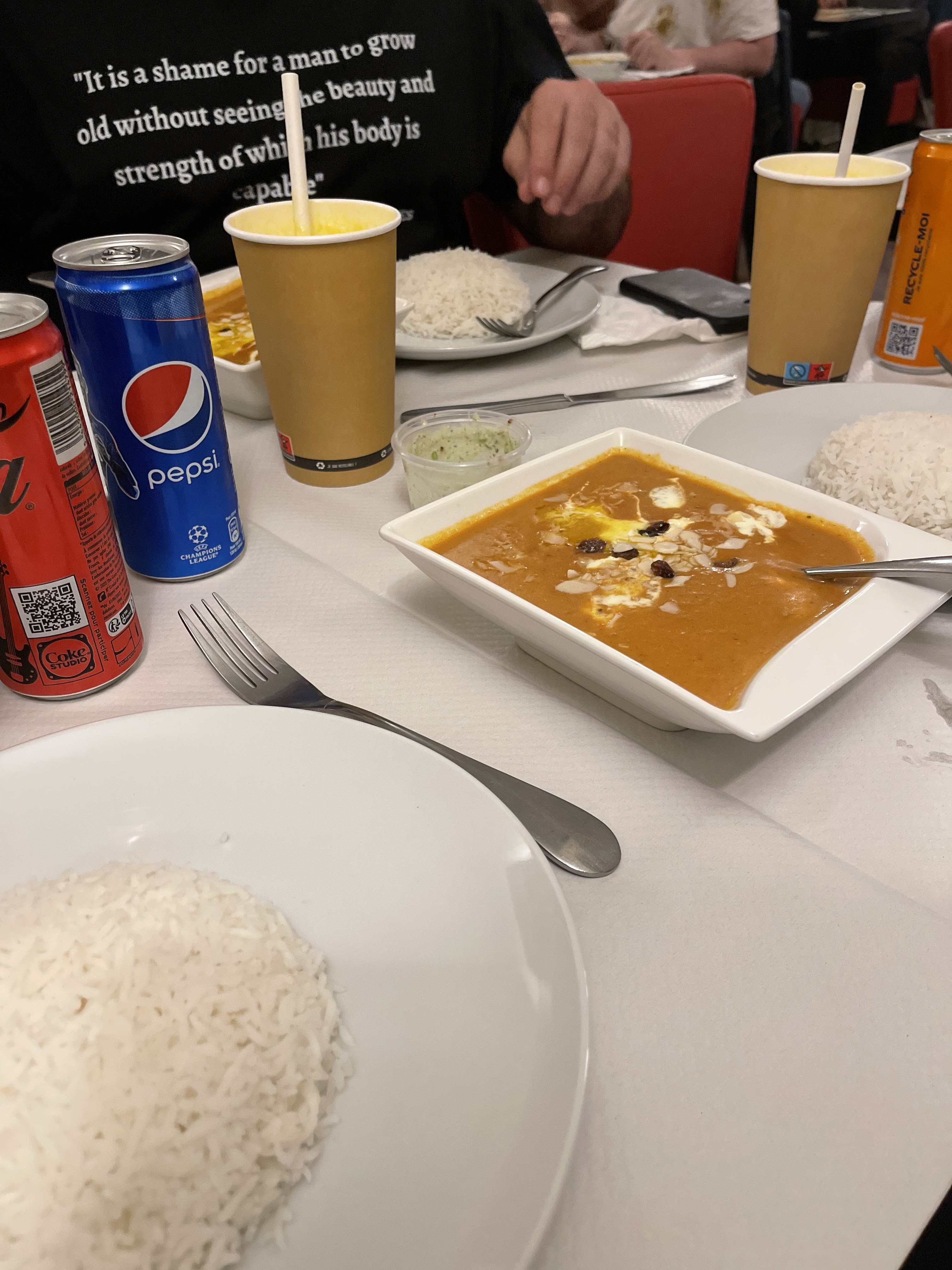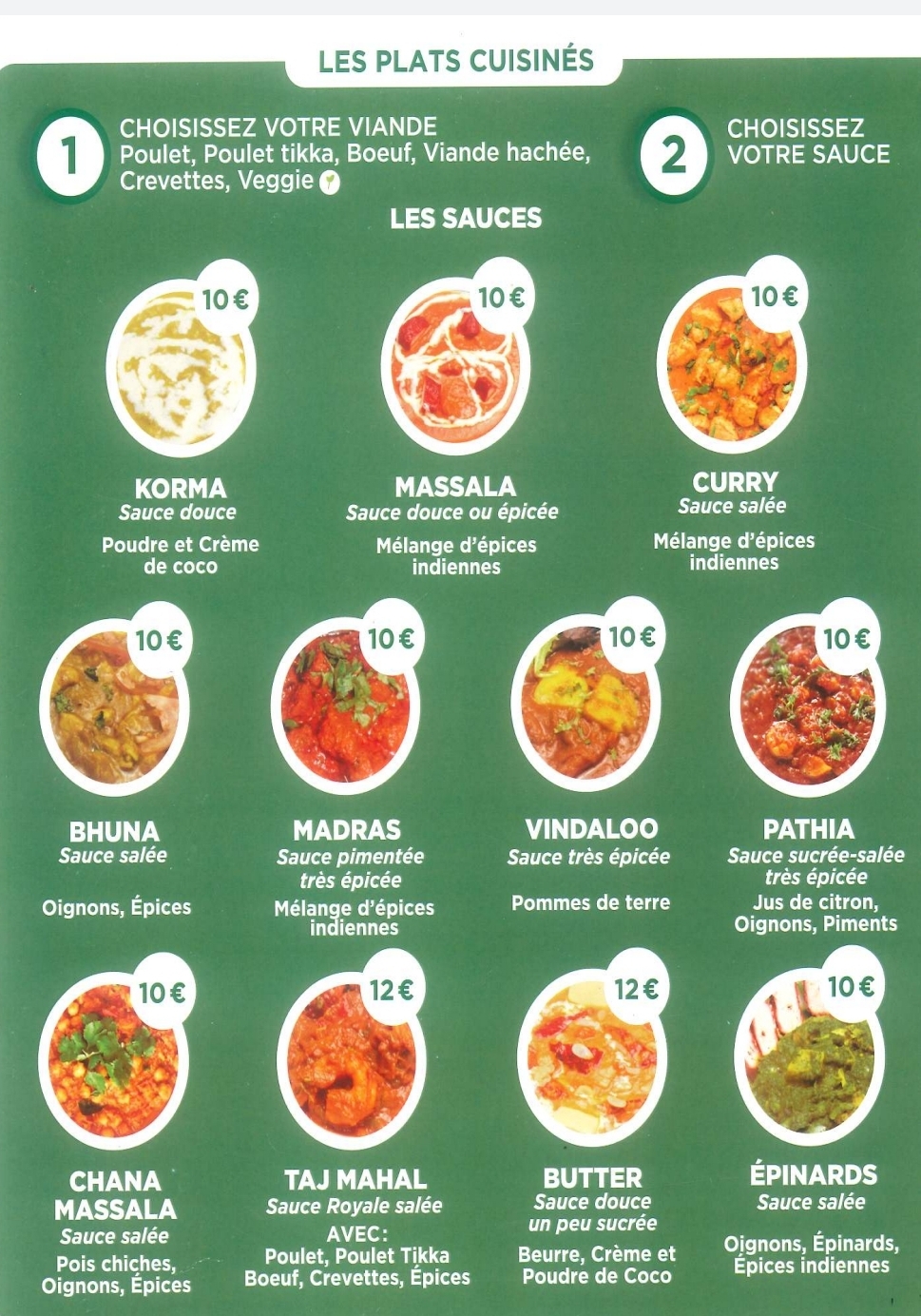 Sauce madras très bon pas déçu Sauce Korma manque un peu de crème Je demanderais un peu plus de viandes dans les plats mais portions assez copieuses généreuses en sauces 👌👍🏽👍🏽👍🏽