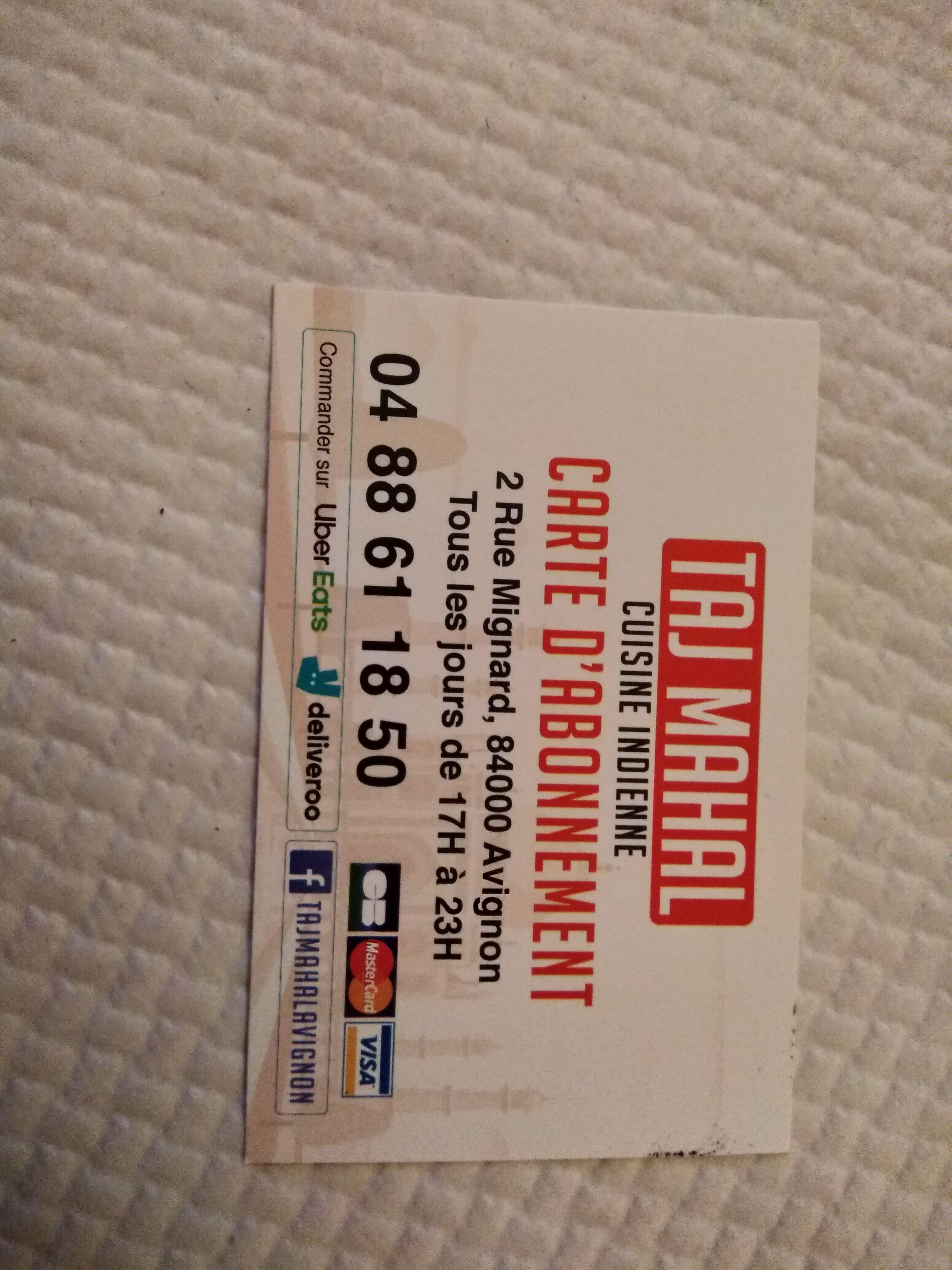 De passage sur Avignon nous avons découvert le Taj Mahal. Parfait, tout est bon et frais. Le snack est propre et sent bon, la cuisine est séparée donc pas de bruit ni d’odeur de cuisine. Cuisson parfaite des naans et du poulet tandoori (pas de « brûlé »). Accueil chaleureux et attentionné. Ne vous fiez pas à la taille de la salle.
