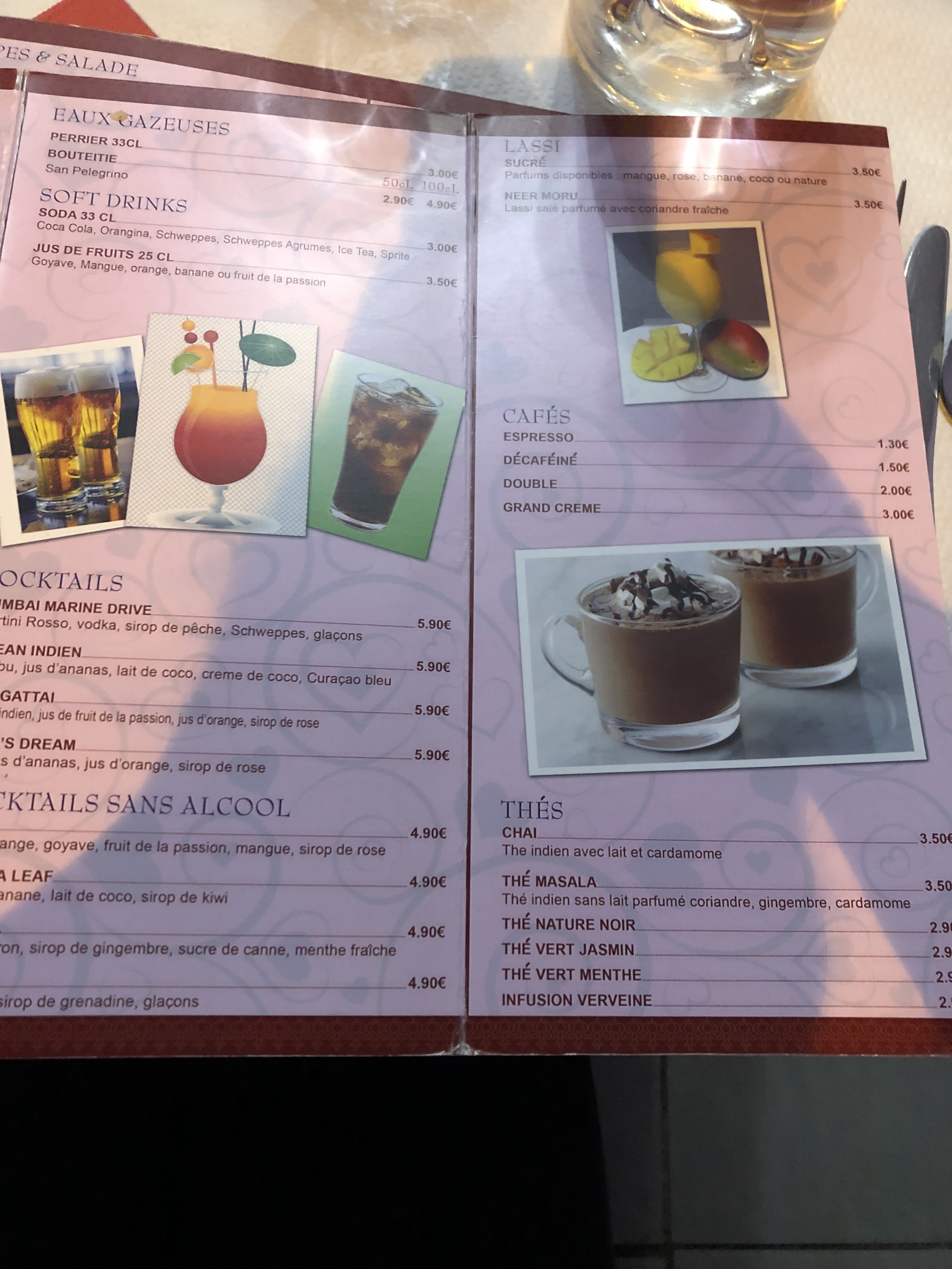 Une cuisine raffinée et copieuse aux saveurs de l’Inde, un vrai régal merci pour le service. Tout était parfait peut être juste il aurait fallu un peu de chauffage dans la salle.