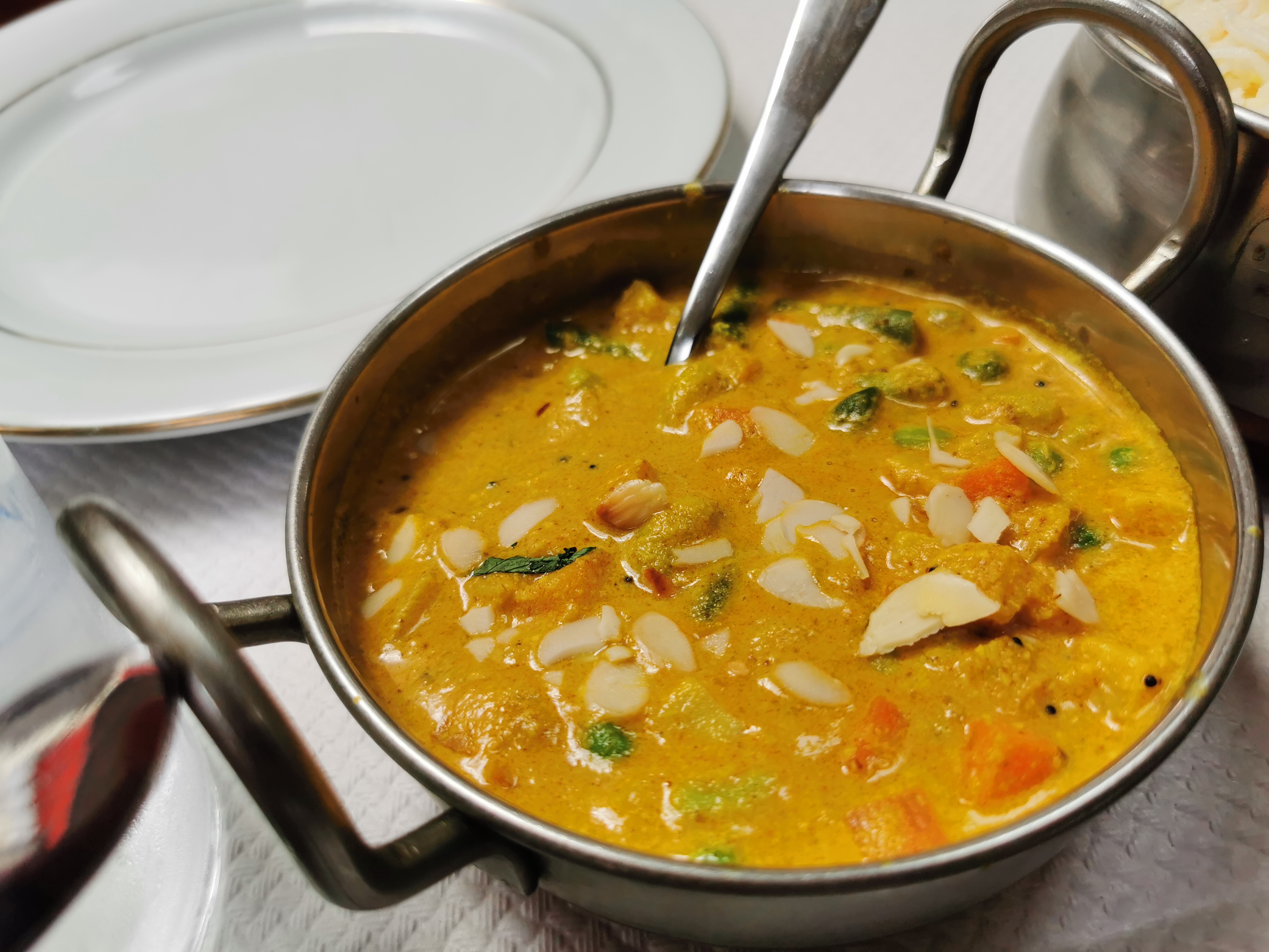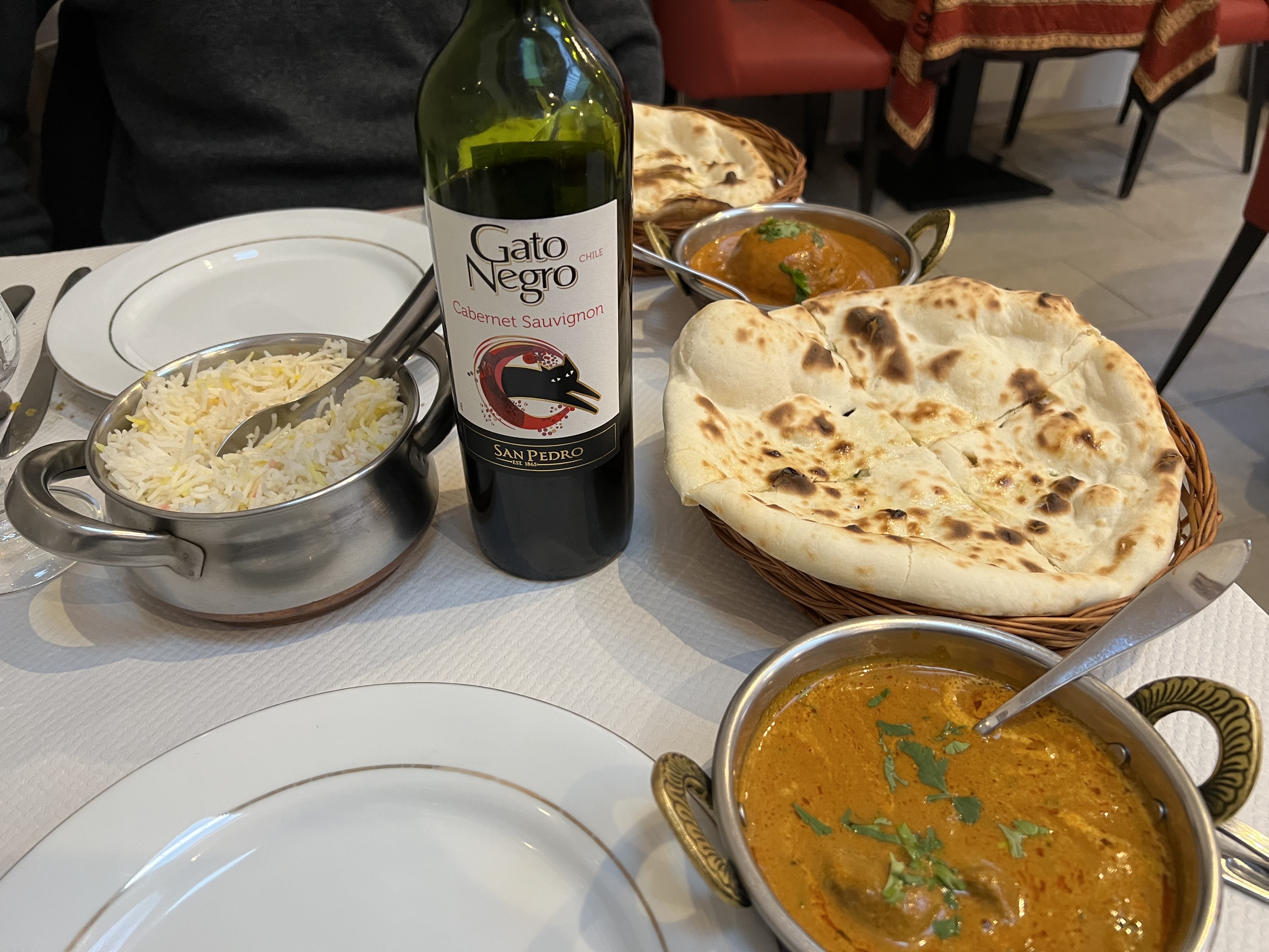 Ce fut une expérience très agréable ! Après avoir voyagé dans la région pendant un certain temps, j'étais prêt pour quelque chose de différent et tellement heureux d'avoir de la nourriture indienne. Le service était merveilleux et ils ont pu préparer plusieurs plats végétariens végétaliens et sans produits laitiers ni beurre, ce qui était super. Le korma était mon préféré, mais les épinards et le curry d'aubergines et de pommes de terre étaient également corrects. A Paris je serais peut-être plus sévère sur ma note, mais pour la région c'était super. Oh et mon mari a adoré le naan.