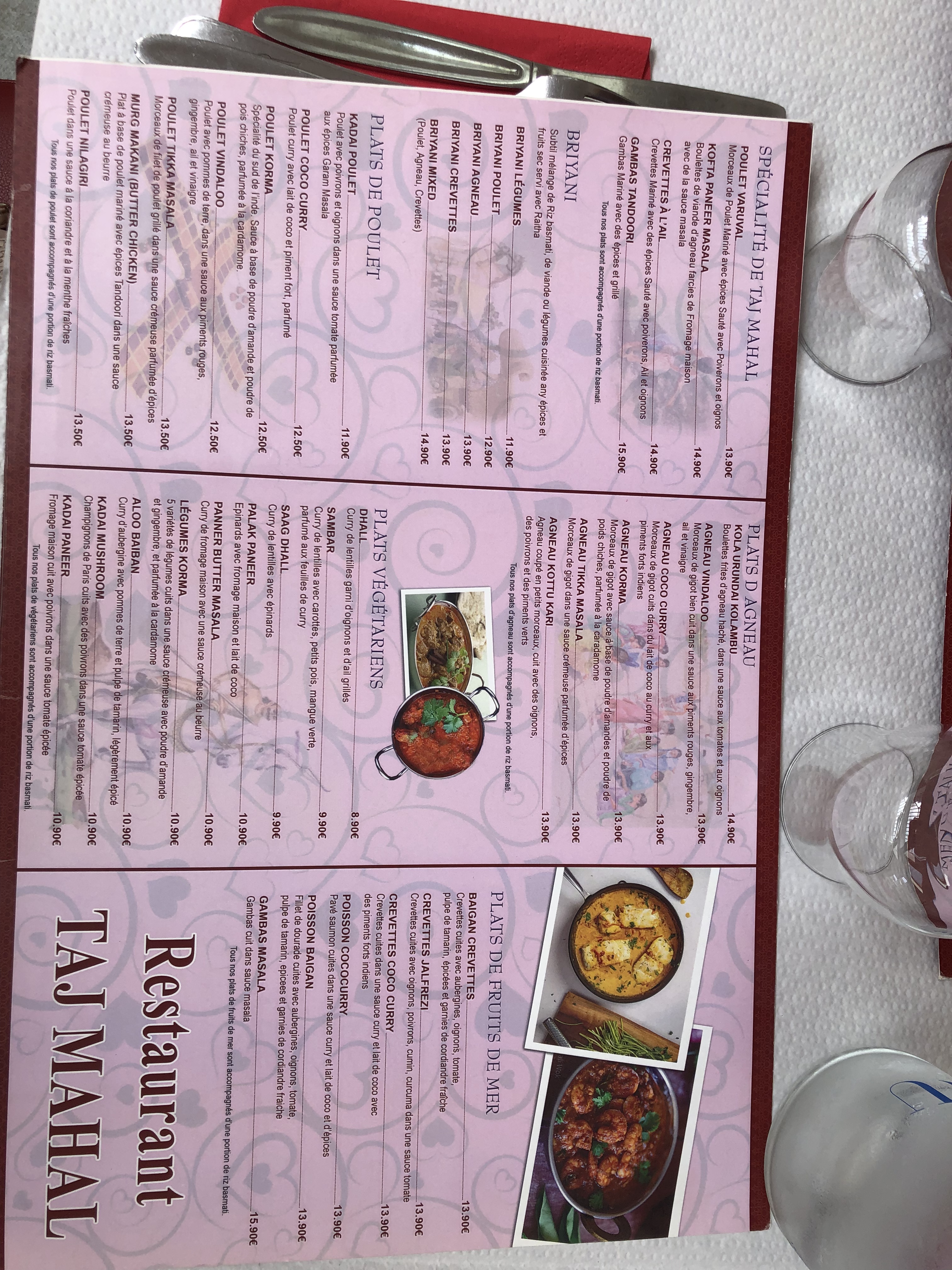 Taj Mahal est un super restaurant indien, on y mange très bien. Ce sont des plats copieux à un prix correct. Le personnel est très sympathique et l'accueil est très chaleureux.