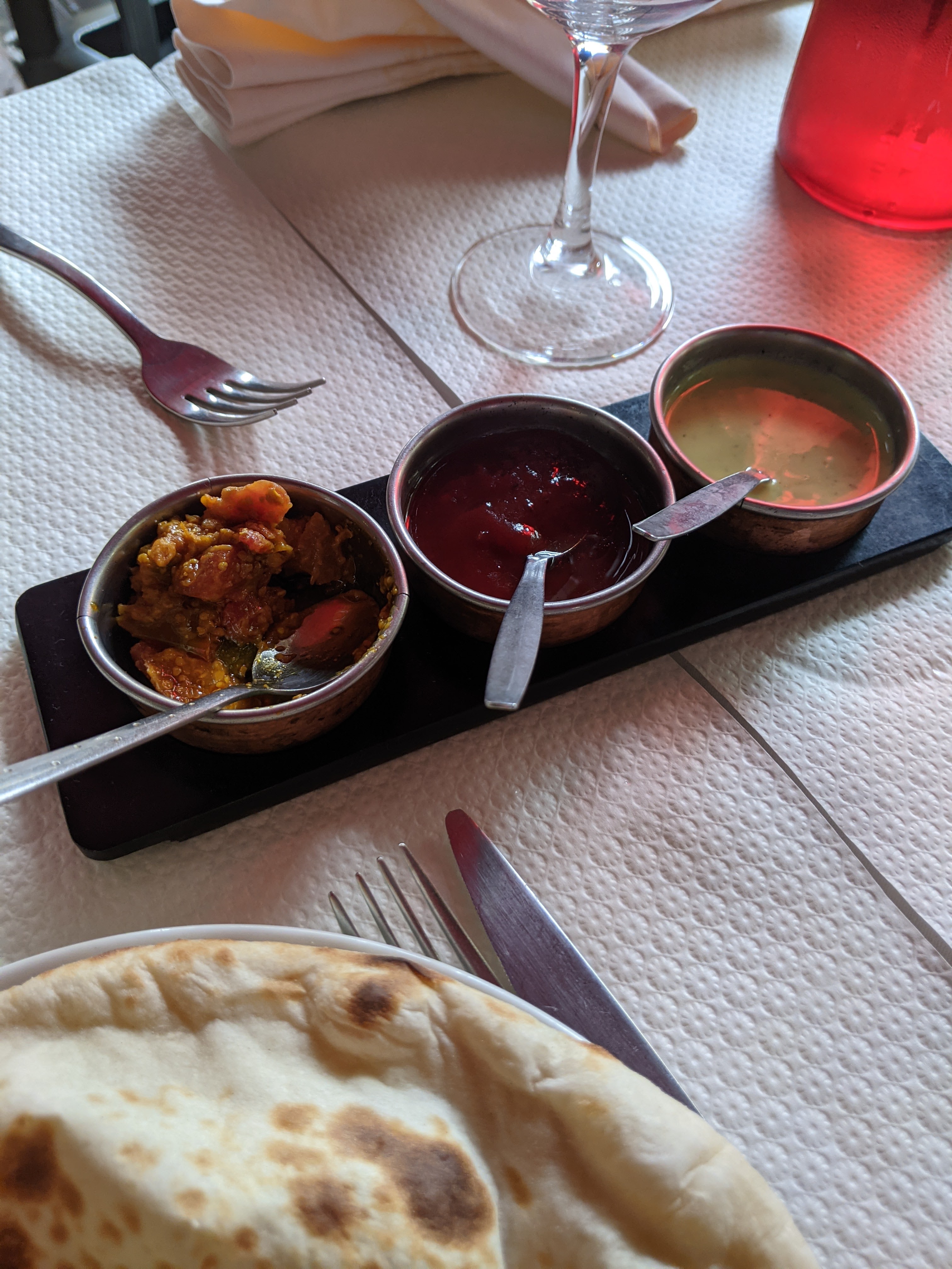 Pour ma première fois de manger hindou, ça m'a rappelé les délicieux plats marocains... Les plats sont bien épicés comme je les aime.