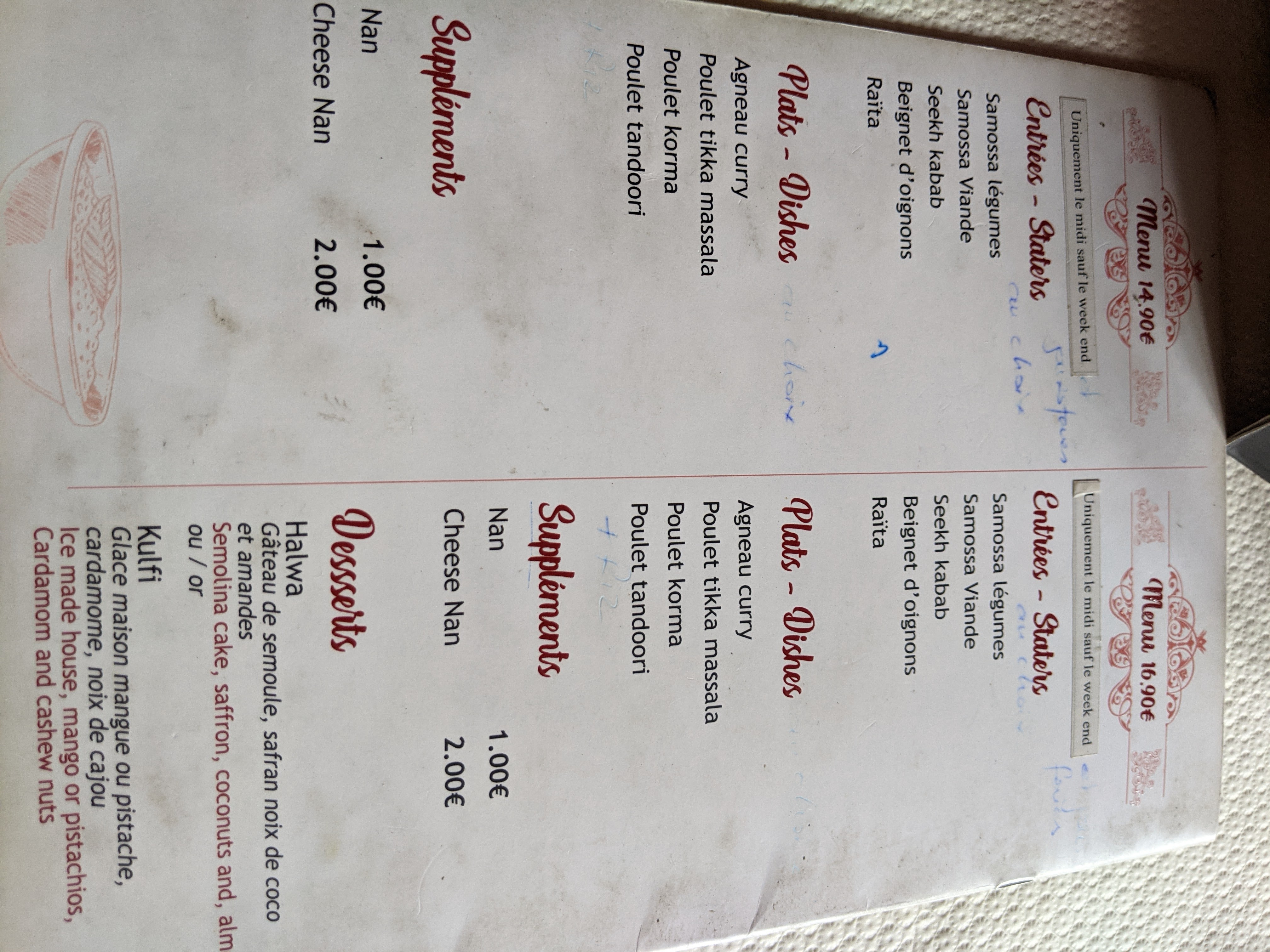 Un indien correct avec une formule midi accessible (14,90€). La salle reste petite mais agréable, si vous êtes en groupe pensez à réserver.
