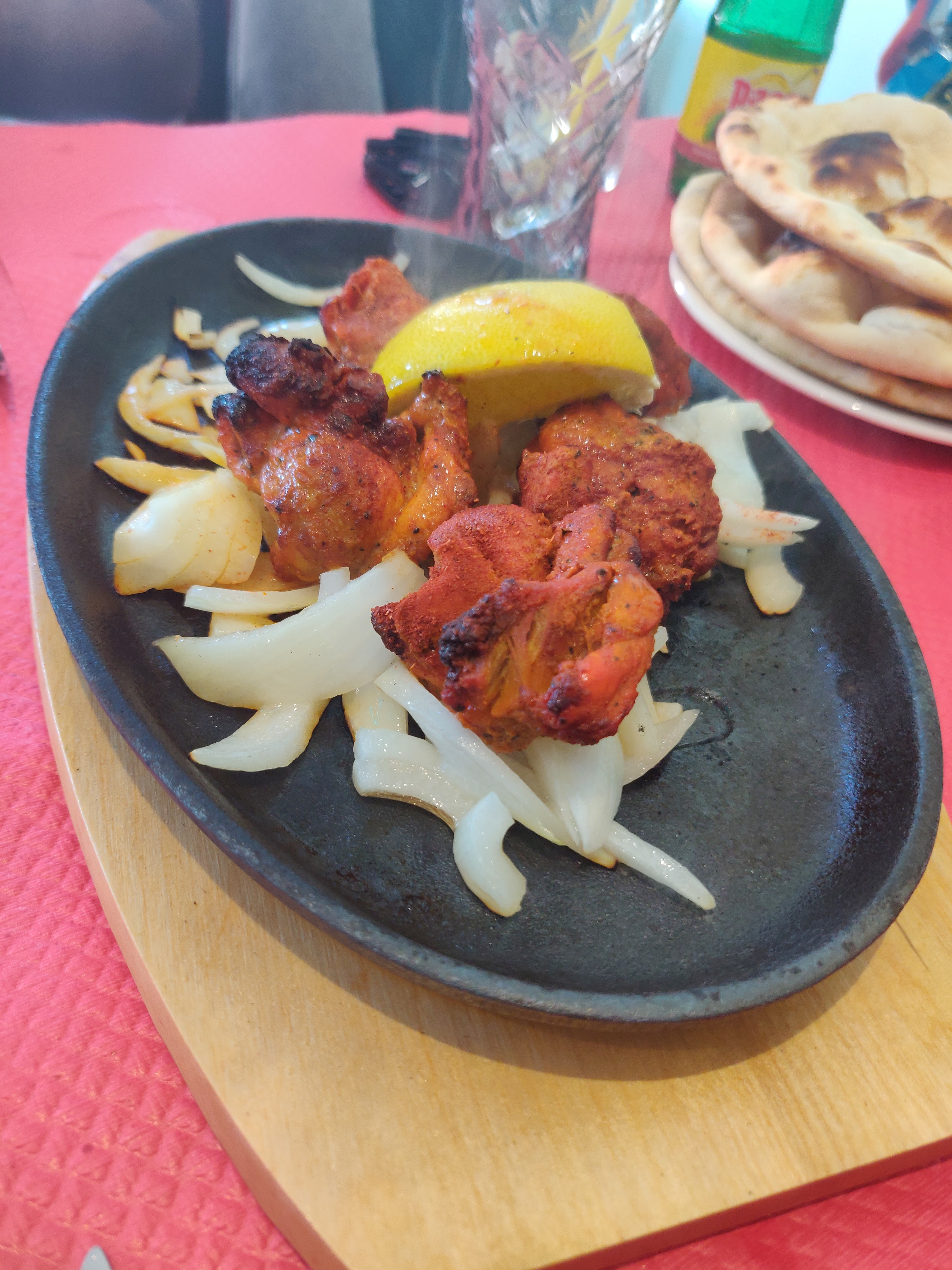 Bien accueilli. Le poulet Tikka est très bien assaisonné et pas trop épicé, niveau quantité pour une entrée c’était juste bien. Le naan au fromage était très bon.
