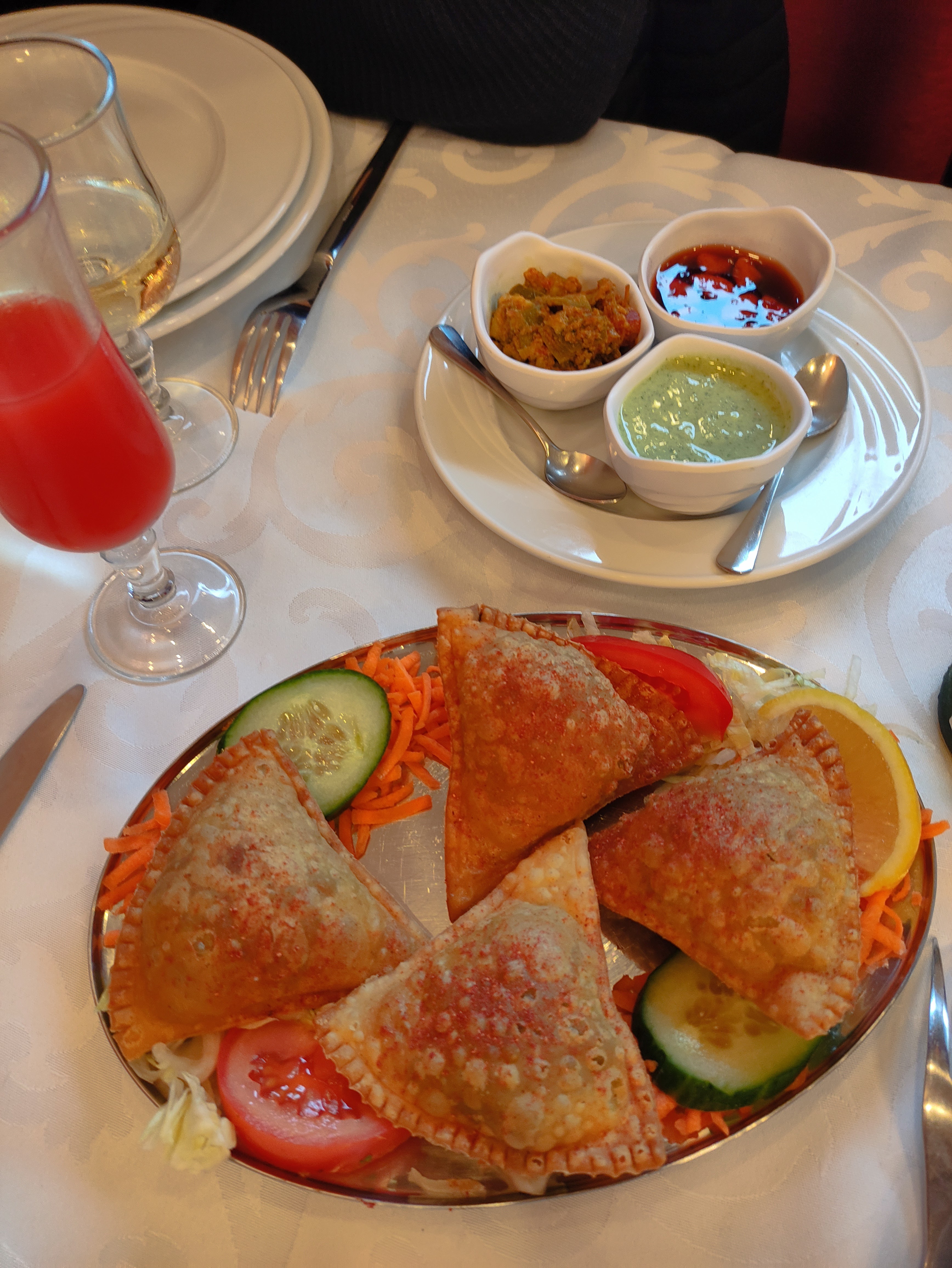 Très bonne première expérience dans un restaurant indien ! Personnel timide mais très accueillant ! Prix raisonnable 20€ pour un menu avec boisson sans compter le nombre d’extras offerts avant l’entrée et le plat ! A suivre ...