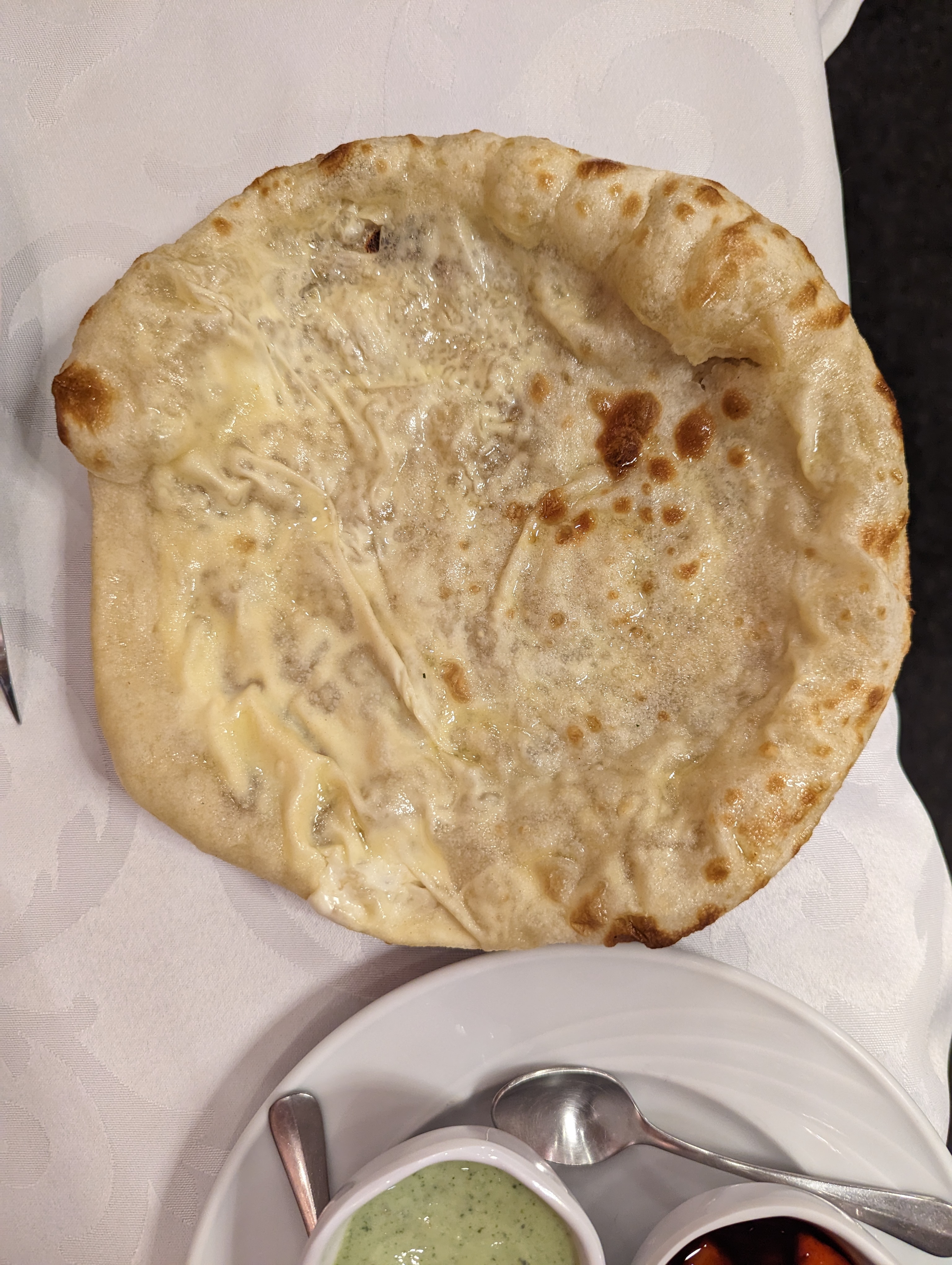 C'était tellement bon, et pourtant un samedi midi y avait si peu de monde, honnêtement je comprends pas J'ai pris butter chicken, cheese naan et du riz pilau et j'étais bien calée Le meilleur indien que j'aie mangé en France, merci pour le repas !