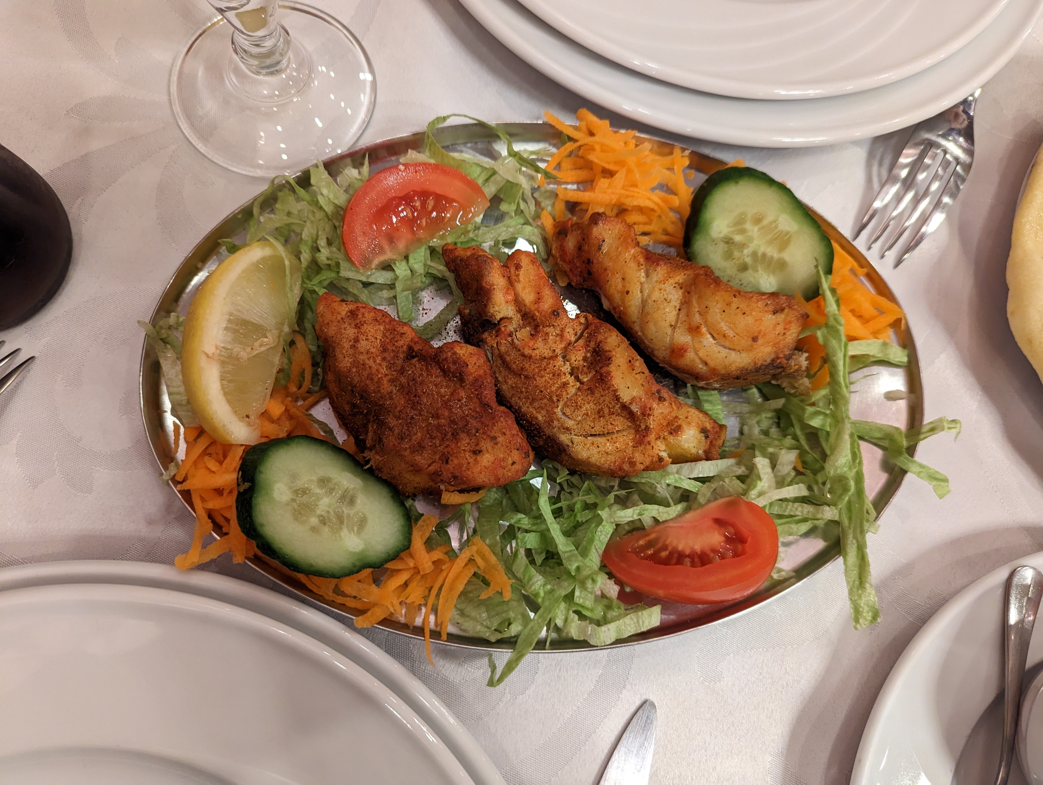Points positifs : la patience de la serveuse et sa gentillesse, les conseils donnés. La distance entre les tables et la fraîcheur de la pièce. Les plats sont faits de façon artisanale, ça se sent. Pain à l'ail excellent. Poulet tica massala bon aussi. Points négatifs, trop d'attente malgré peu de monde dans le resto et crevettes peu goûteuses, bien épicées cependant. Les prix paraissent abordables mais un calcul est nécessaire quand on rajoute le prix du pain et le riz. L'apéritif est cher car seulement 4cl pour un porto au lieu de 7cl habituellement. Grillades à essayer la prochaine fois car rupture de mouton ce jour là.