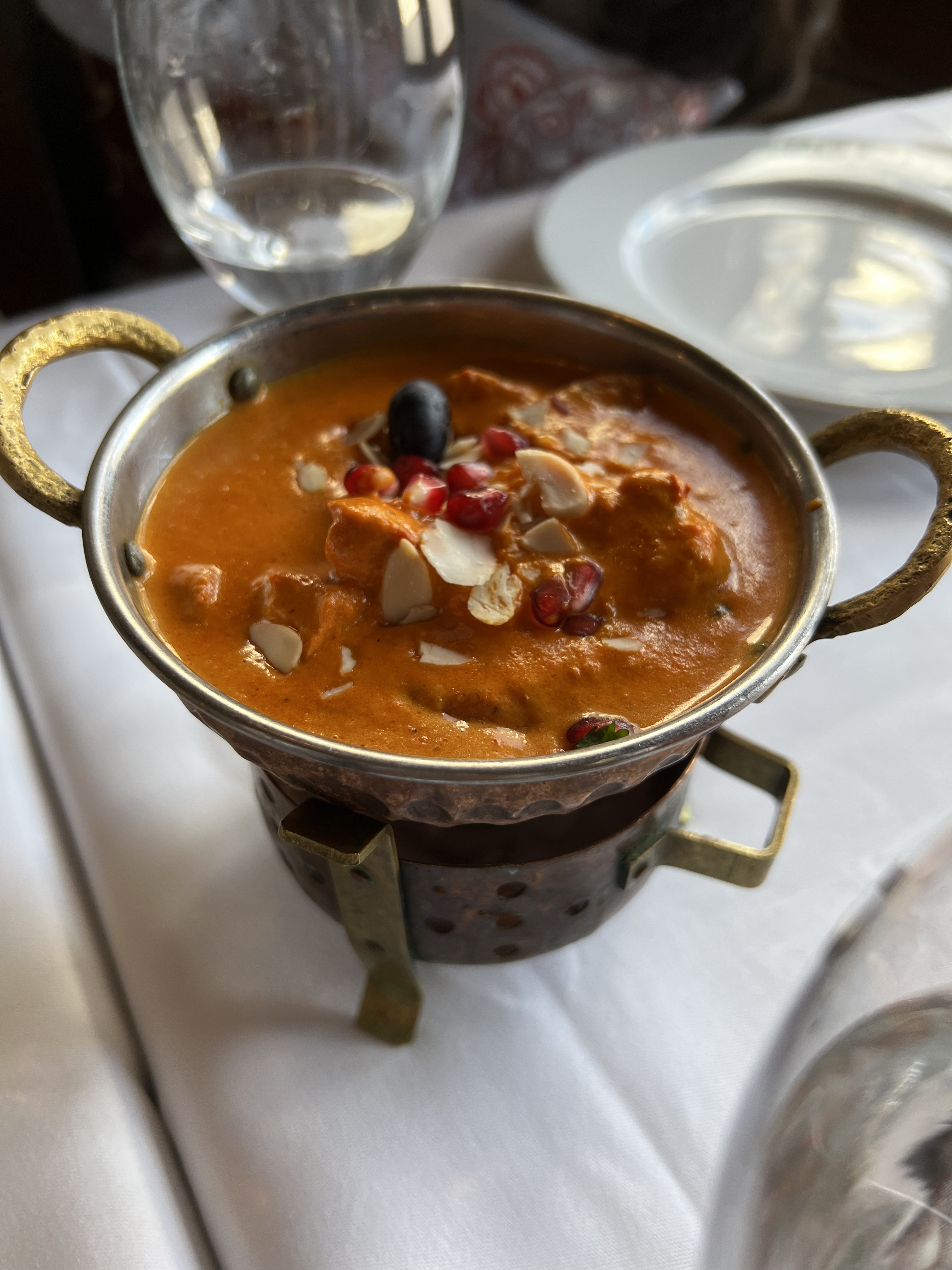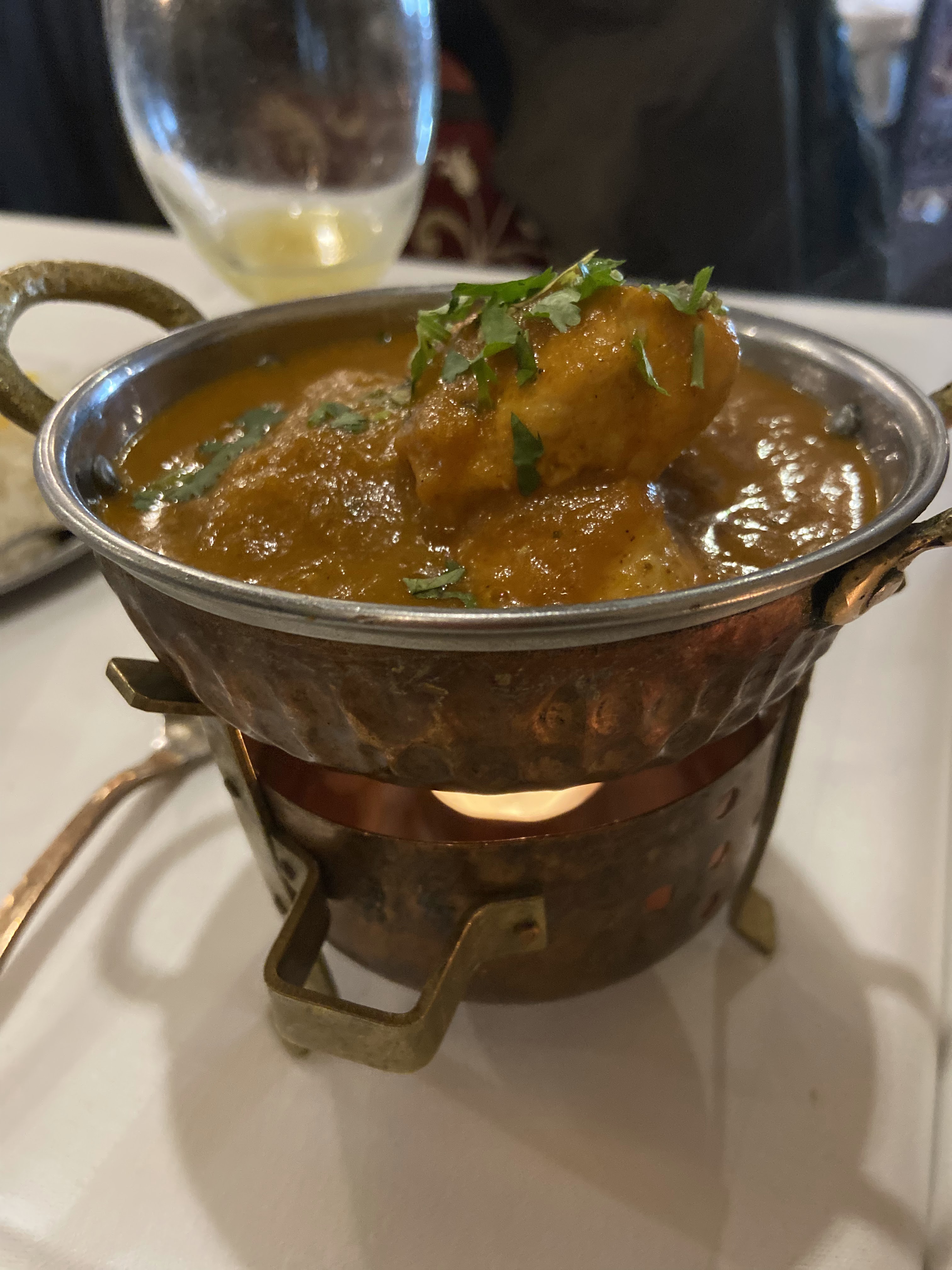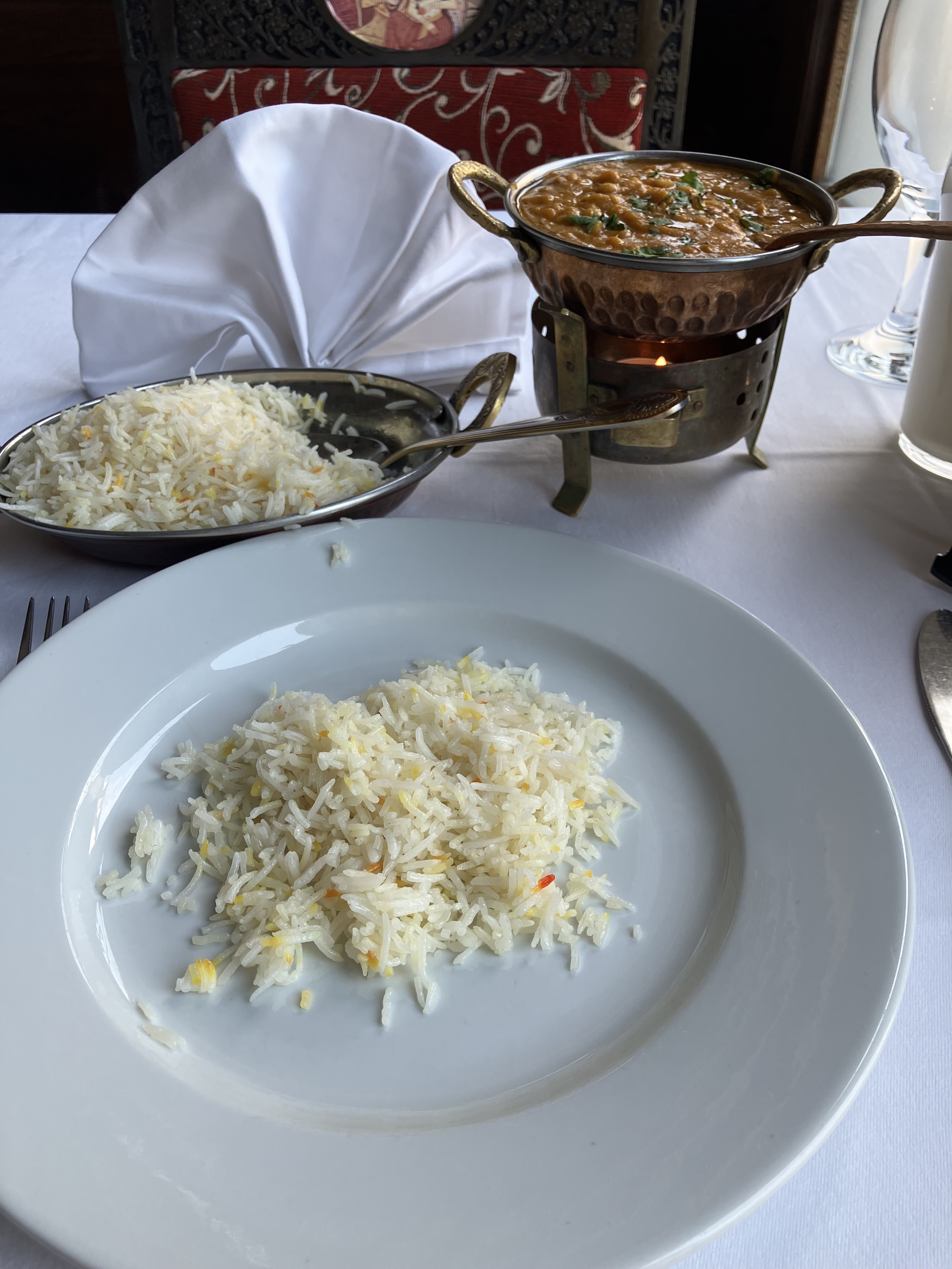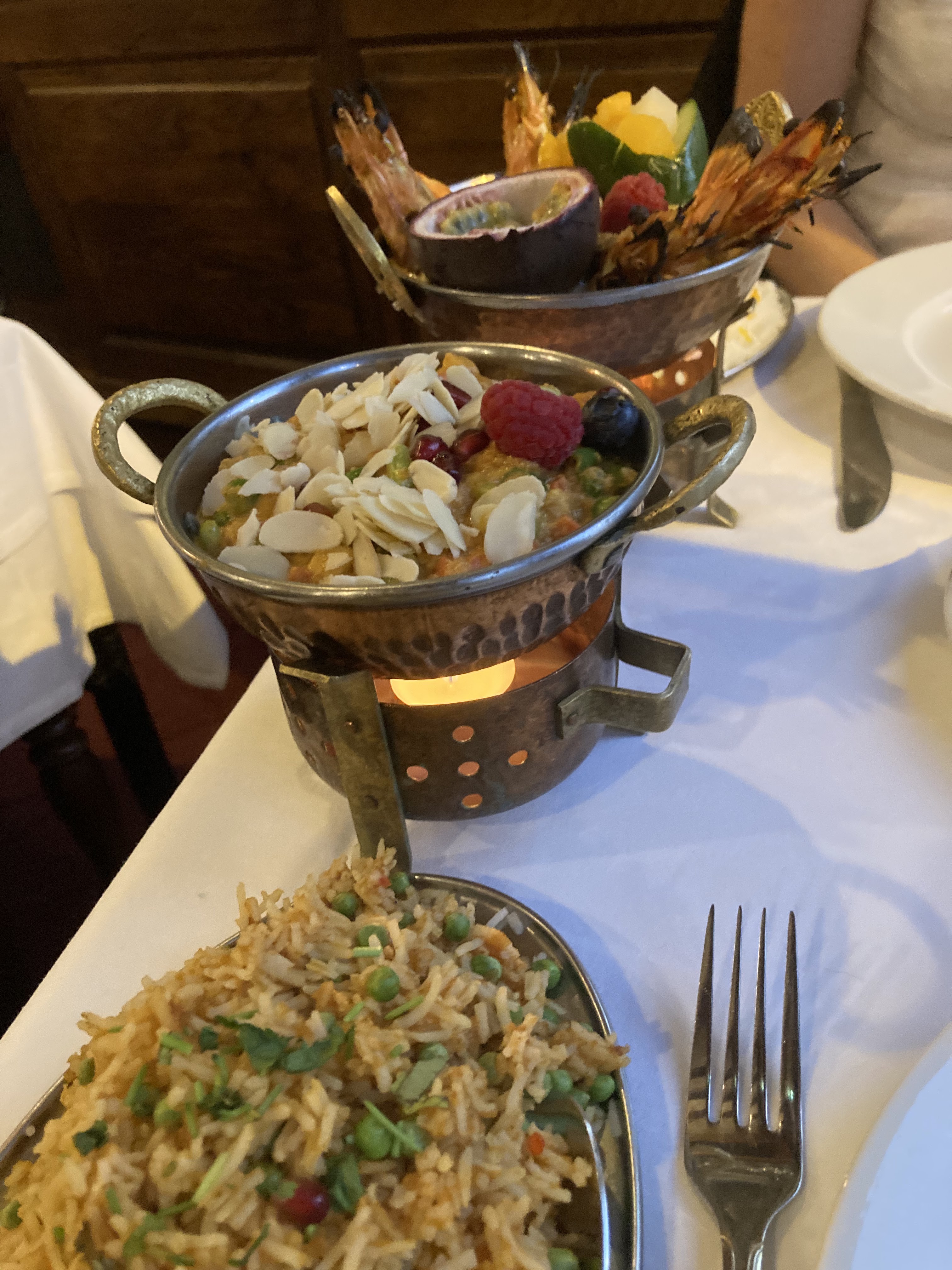Excellent restau, service rapide. Nous sommes arrivés sans réserver et on a pu s’installer. (Pensez à réserver) Les plats étaient très bons (la dose de riz de 2 personnes n’est pas assez suffisante il resté beaucoup de sauce après c’est dommage). J’ai pris un Poulet Shahi Korma (sauce noix de cajou) un peu déçue qu’il y avait qu’une seule noix de cajou dans mon plat… 😅 mais très bon quand même. Les naan sont bien rempli aussi 😋 Le cadre du restaurant vraiment très beau 🥰 Je recommande!