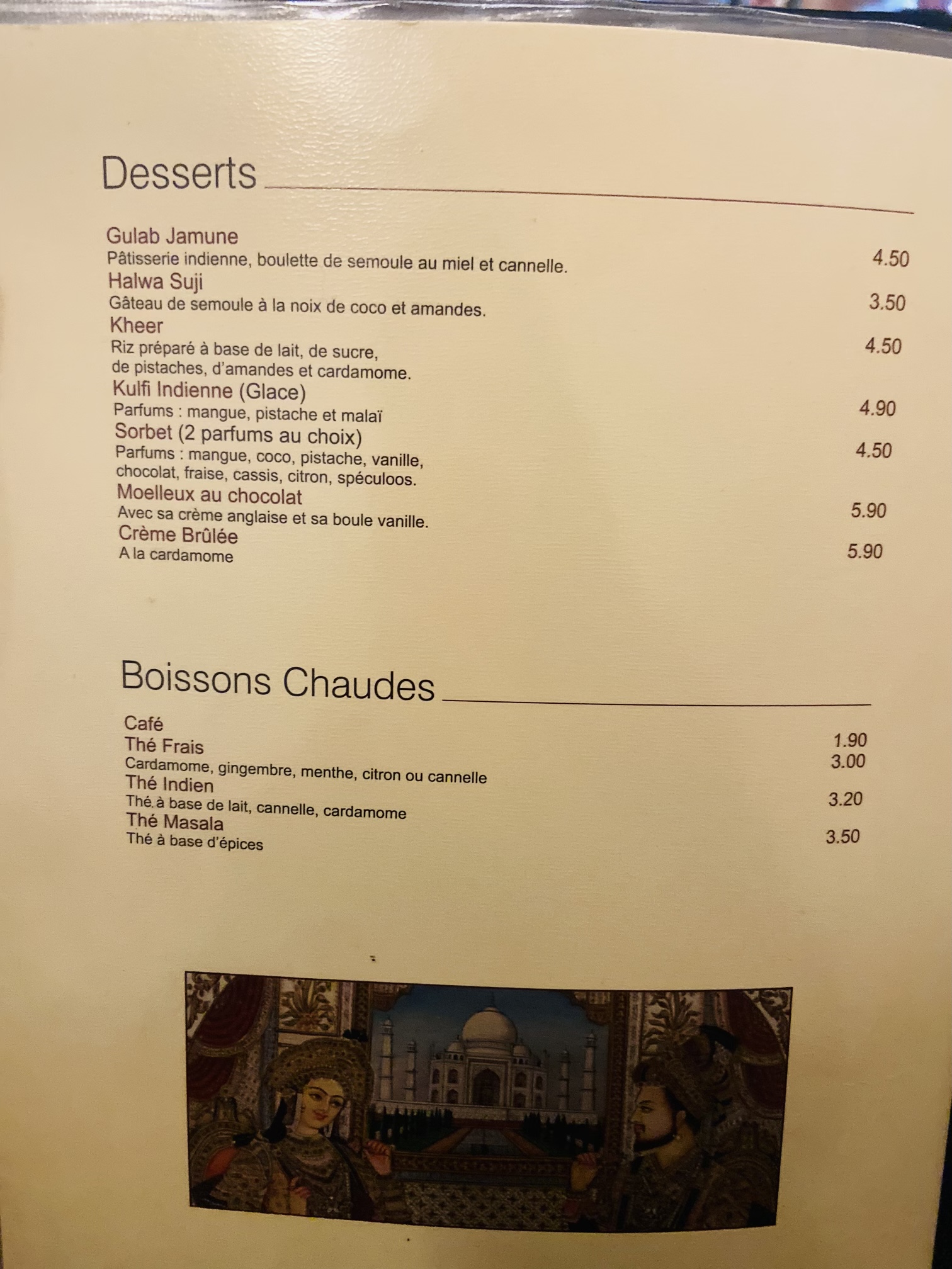 Nous avons passé un agréable déjeuner chez 'Taj Mahal'. La nourriture est délicieuse, le service est rapide et attentionné. Très jolie décoration. Rien à redire 👌 Nous reviendrons !