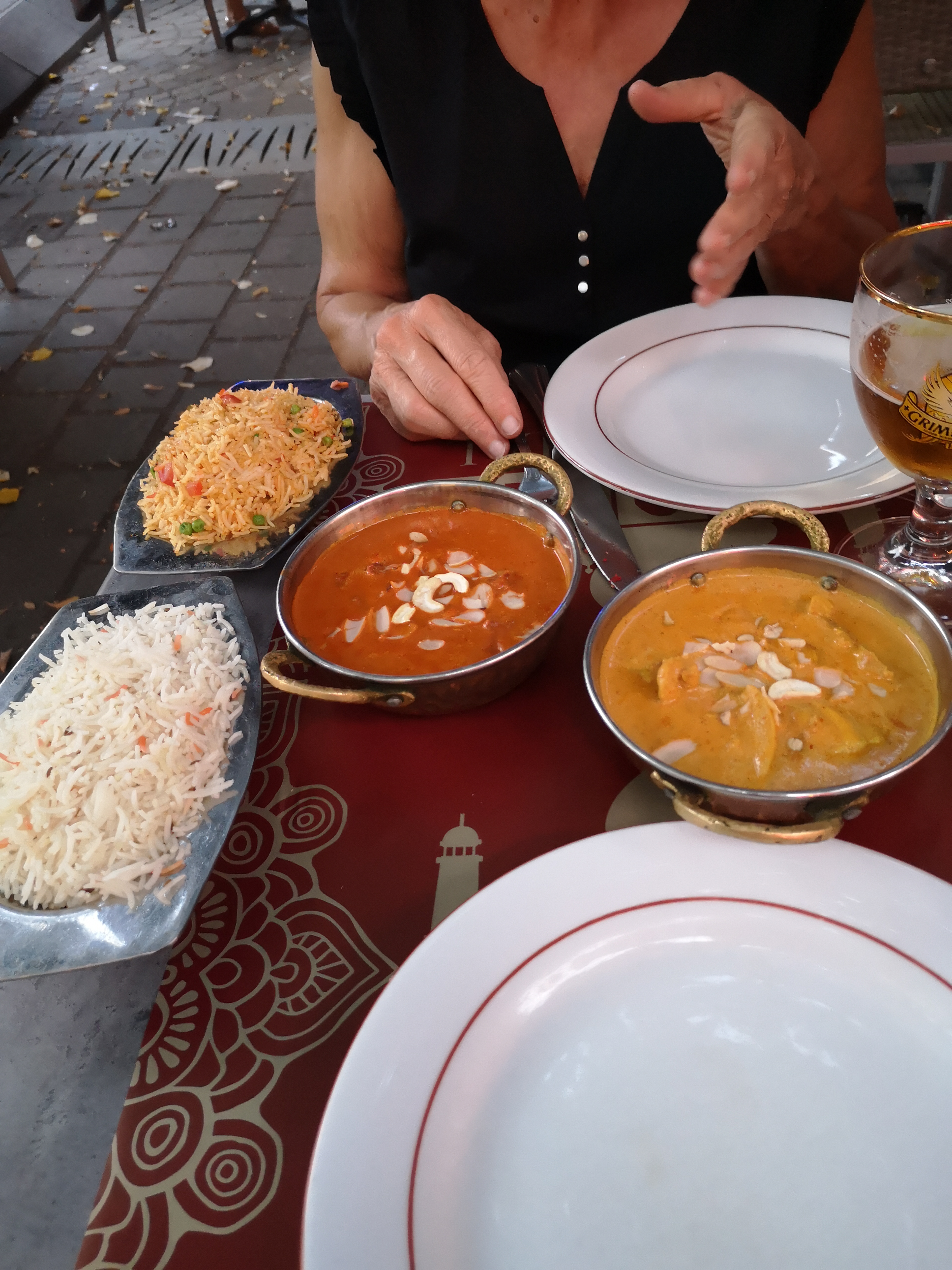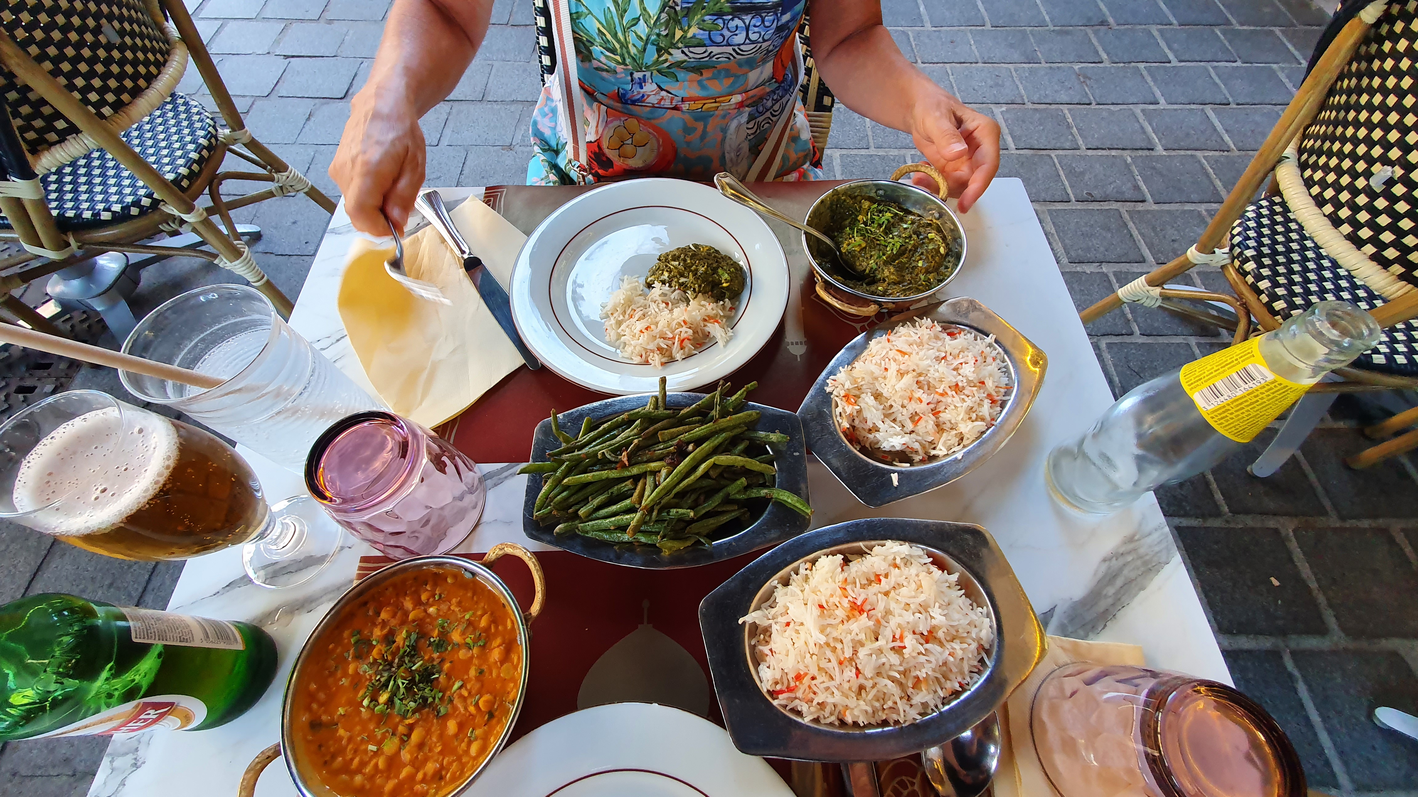 Déjeuner en terrasse , avec le menu à 14€. Complet (entrée, nan, plat et riz). Serveur sympathique et échanges sur la nature des plats.. selon les régions d'Inde (car nous étions surpris de voir sur la carte des 'moules' servies).