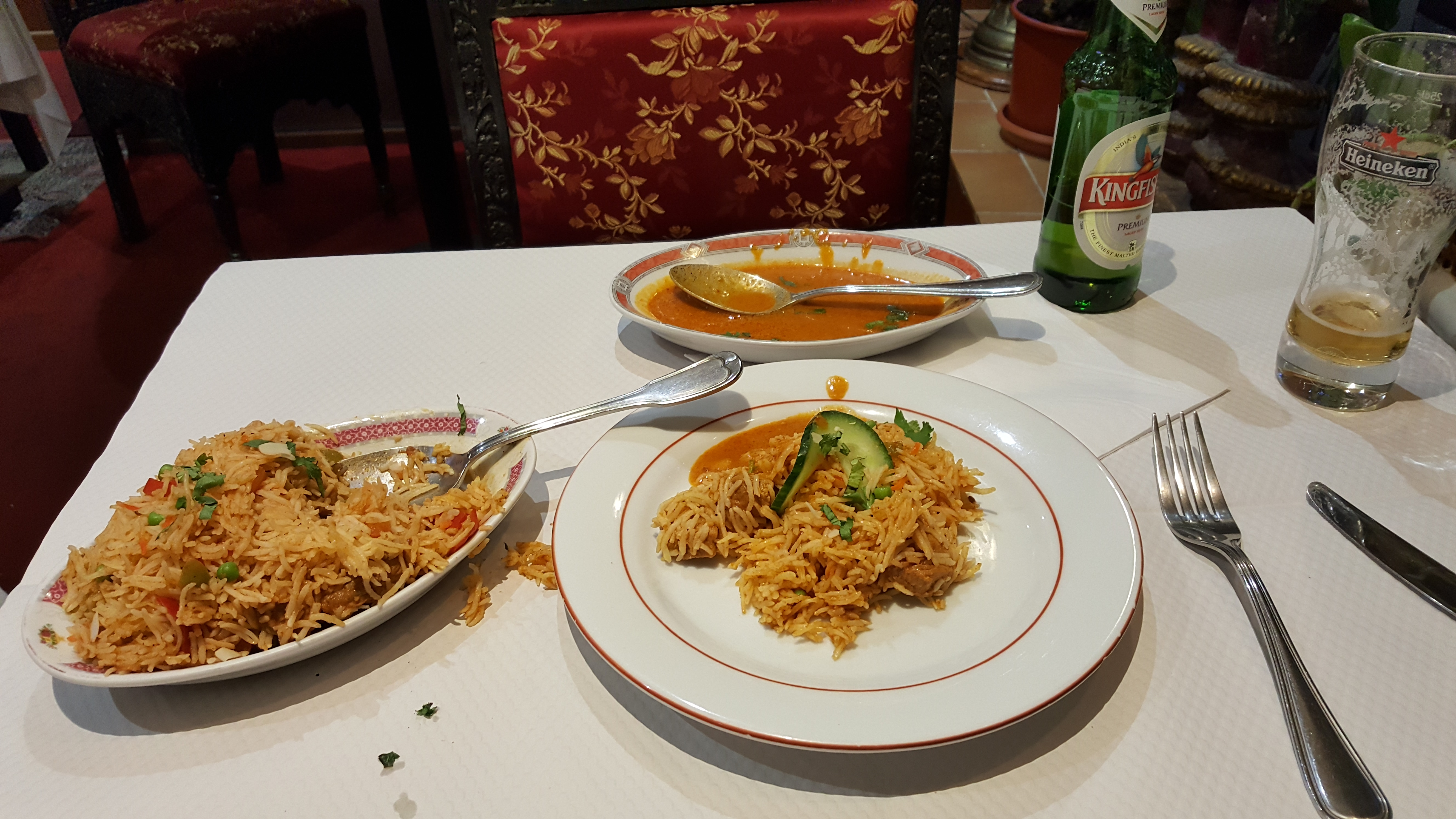 Nous sommes venus un soir où il y avait peu de monde. Service très rapide, au petit soin. Les cocktails étaient très bons et contrairement à certains avis, nous avons trouvé la quantité des plats plus que suffisante. Attention cependant au supplément des accompagnements (riz par exemple) et Naan qui augmentent un peu la facture.