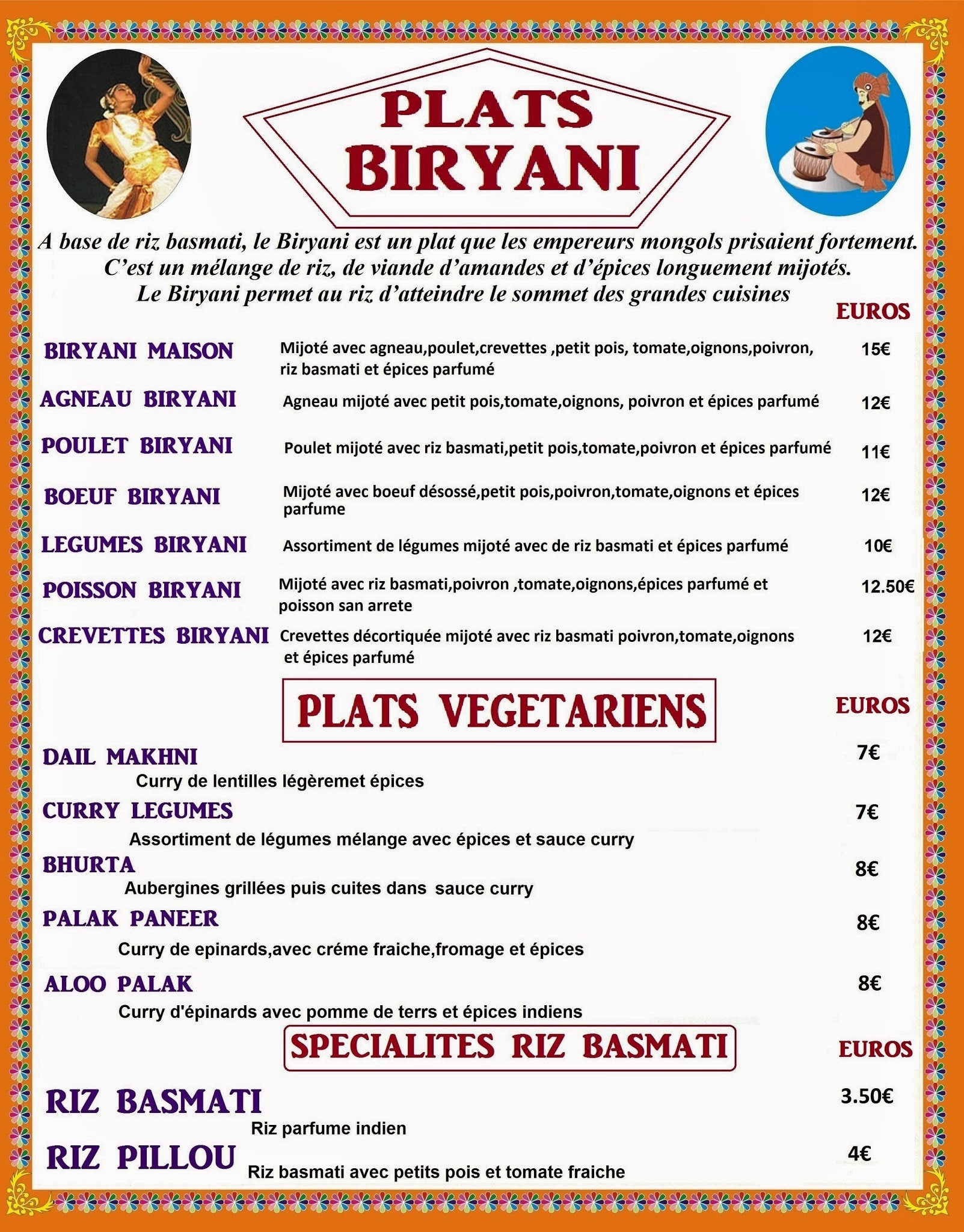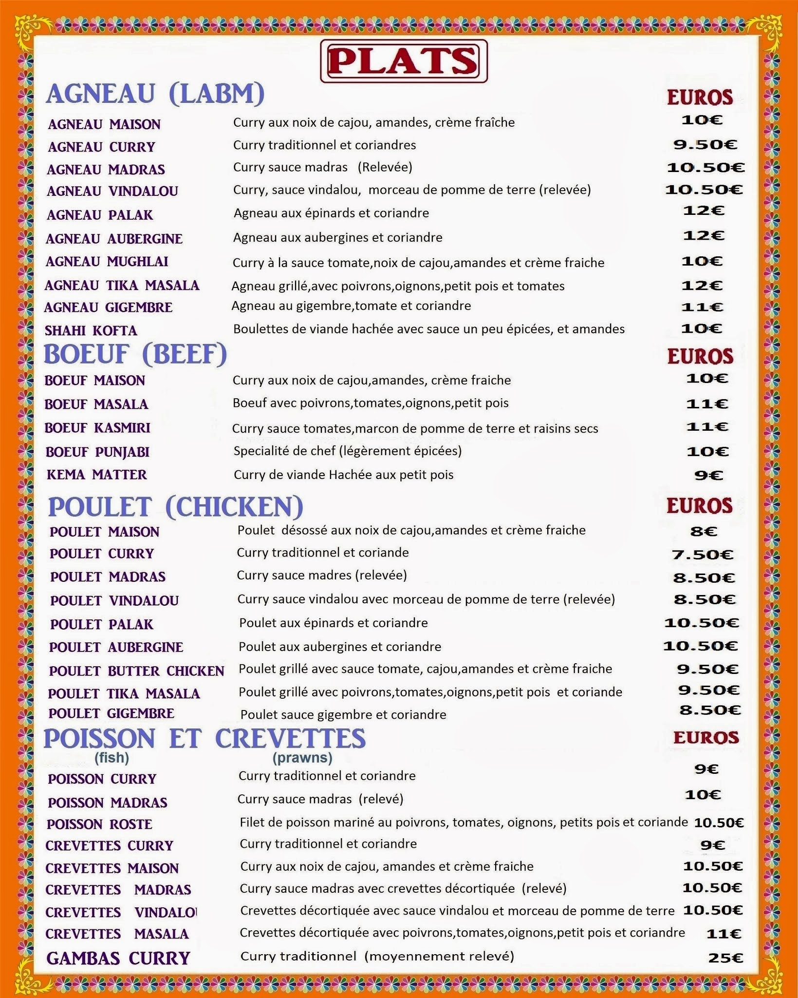 L'accueil est sympathique et agréable. La cuisine est bonne et copieuse et laisse le choix entre les grands classiques indiens déclinés façon boeuf, poulet, poisson ou végétarien.
