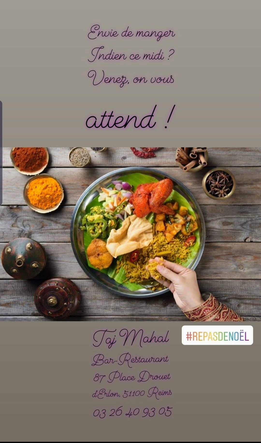 Le restaurant Taj Mahal est une véritable perle ! 🌟 La cuisine est absolument délicieuse, avec des saveurs authentiques qui vous transportent directement en Inde. Le service est impeccable et l’ambiance chaleureuse et accueillante. Je recommande vivement ce restaurant à tous les amateurs de cuisine indienne. Un grand merci à toute l’équipe pour cette expérience culinaire exceptionnelle !