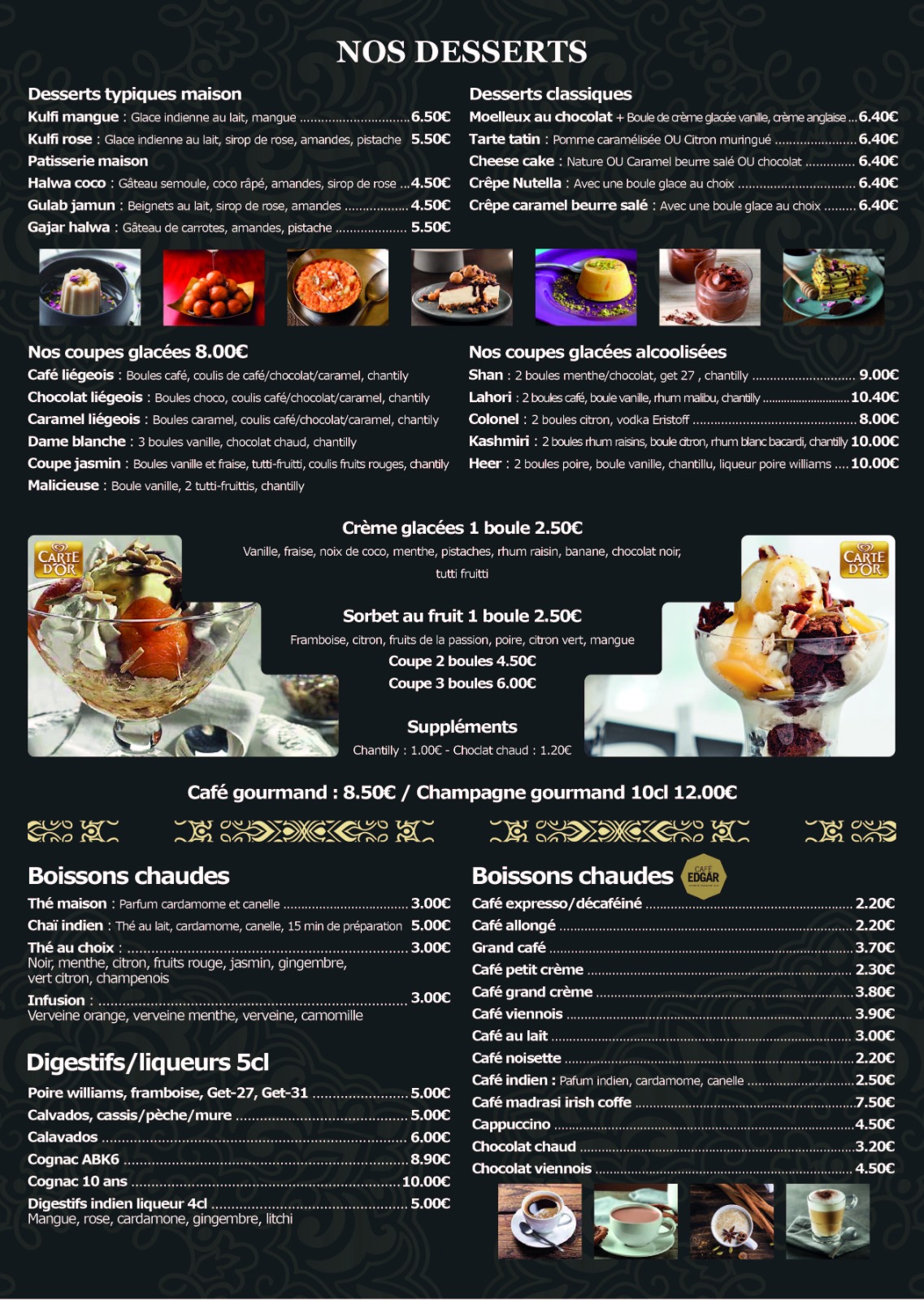 Plusieurs erreurs et oublis , service à améliorer très rapidement...et ceci sans aucune remise! Qualité des plats plutôt correcte sans plus mais peu copieux pour un restaurant indien... Addition un peu salée