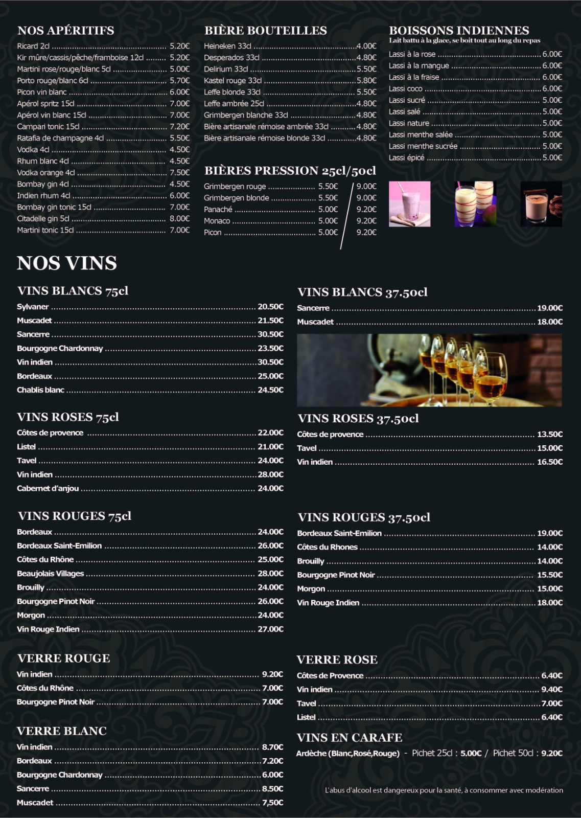 Bonne ambiance Service impeccable Bonnes entrées : beignets, samossas, Bonne formule découverte Lassi Mangue délicieux et bien aéré Manquait juste un peu de riz par rapport à la sauce disponible
