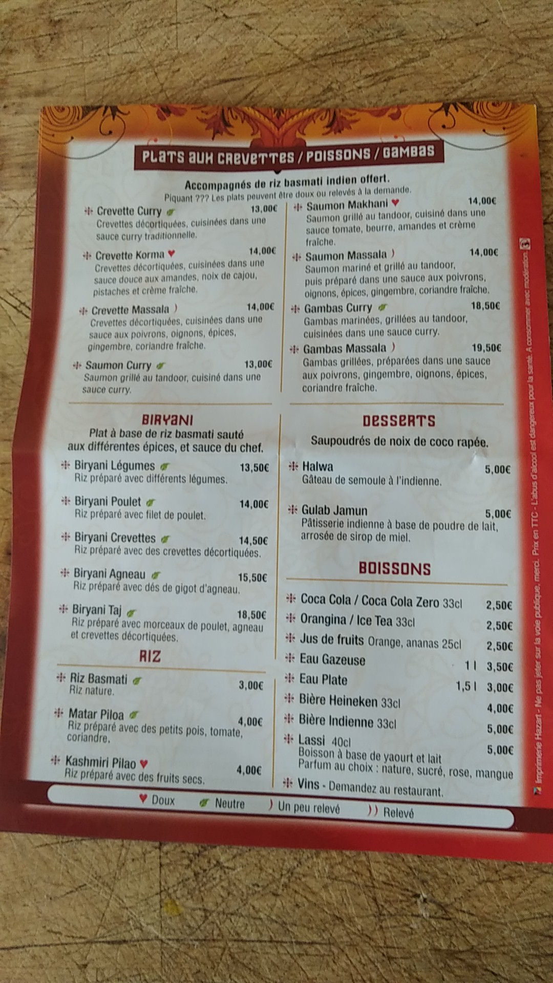 Si vous voulez mangé épicé ! Il faut le préciser au serveur ne vous fier pas au icônes piment sur la carte.
