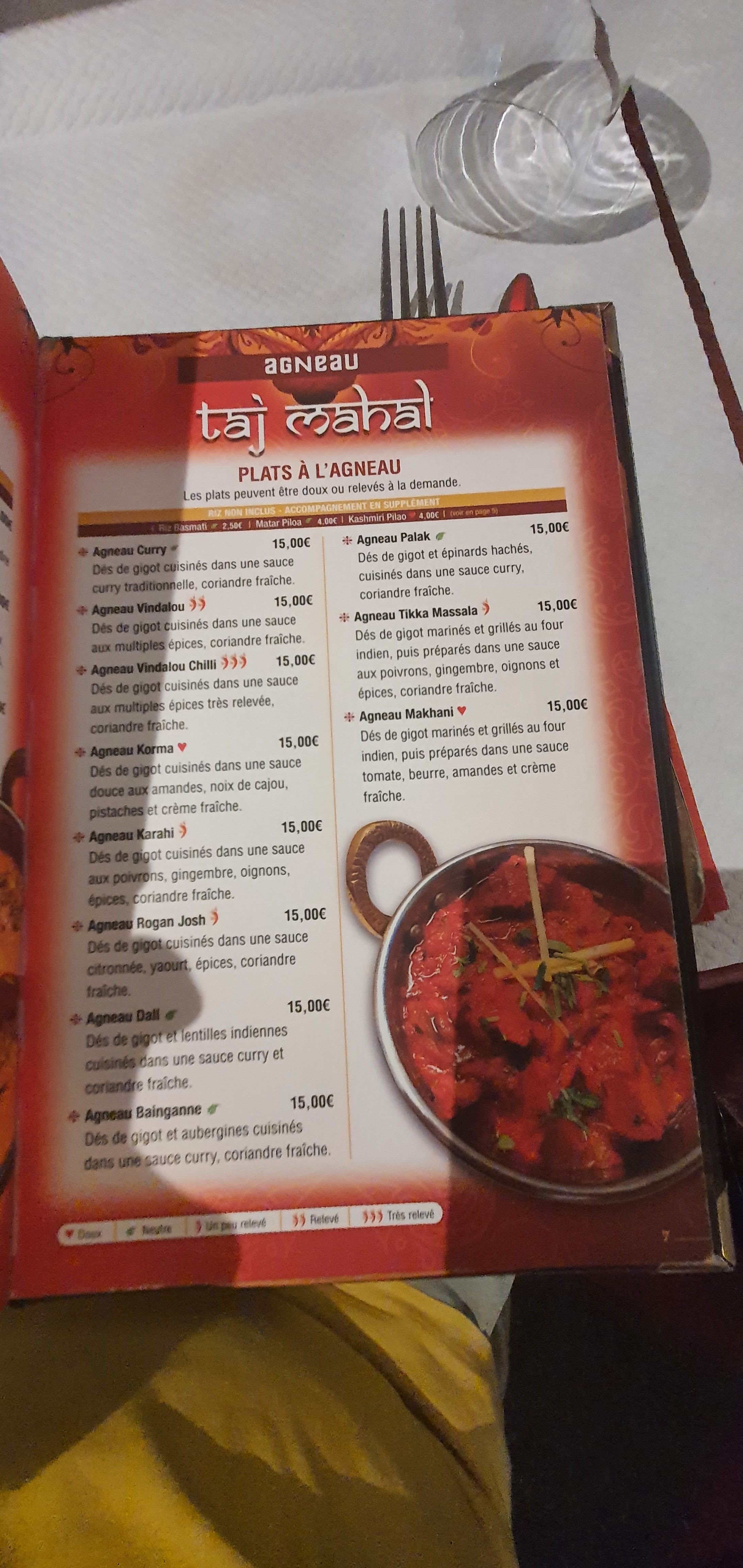 Un excellent accueil et service avec le sourire ! Des plats avec du goût ( un vrai bon restaurant Indien pas seulement pour les français peu amateurs de plat révélés !) avec une option au choix pour l'assaisonnement Doux/épicé ( voir très épicé lorsqu'on le demande aimablement) Des prix très raisonnable au vu de la qualité et quantité proposé Que du bonheur j'y reviendrai à la moindre occasion sans hésiter ( déjà deux fois, ce qui m'emmène à la rédaction de ce post )