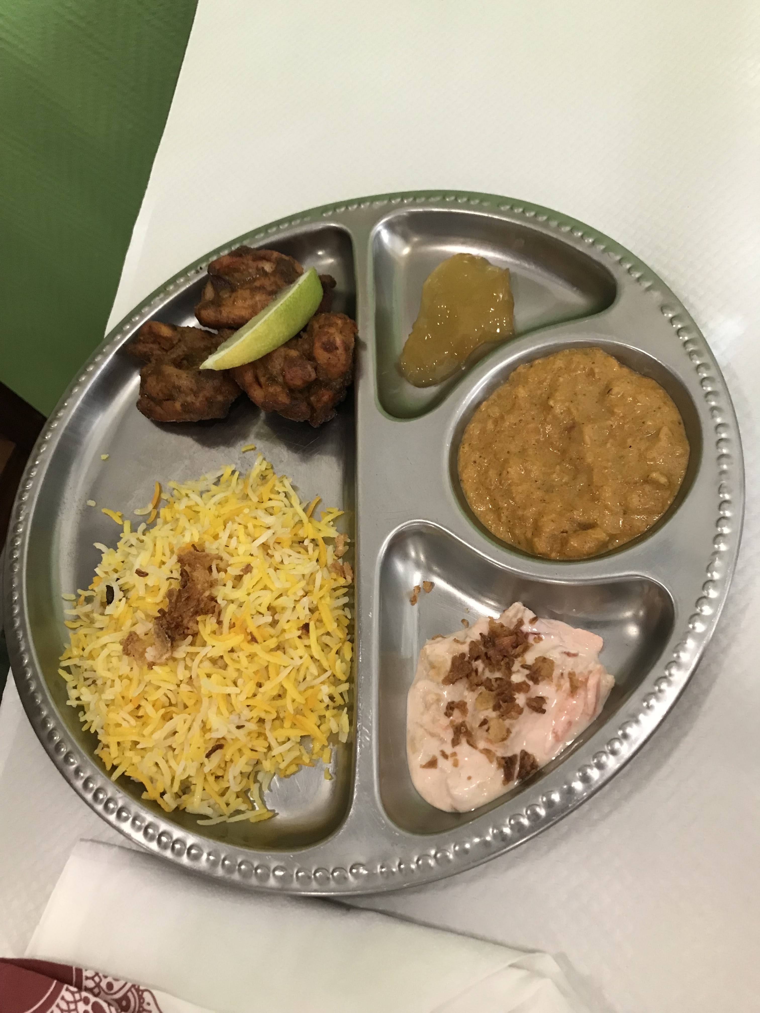 Tout était excellent, le poulet était tendre et bien assaisonné. Le personnel est très accueillant et chaleureux. Le lassi à la rose a un goût exceptionnel et les trois sauces proposées sont très bonnes. Je recommande vivement!