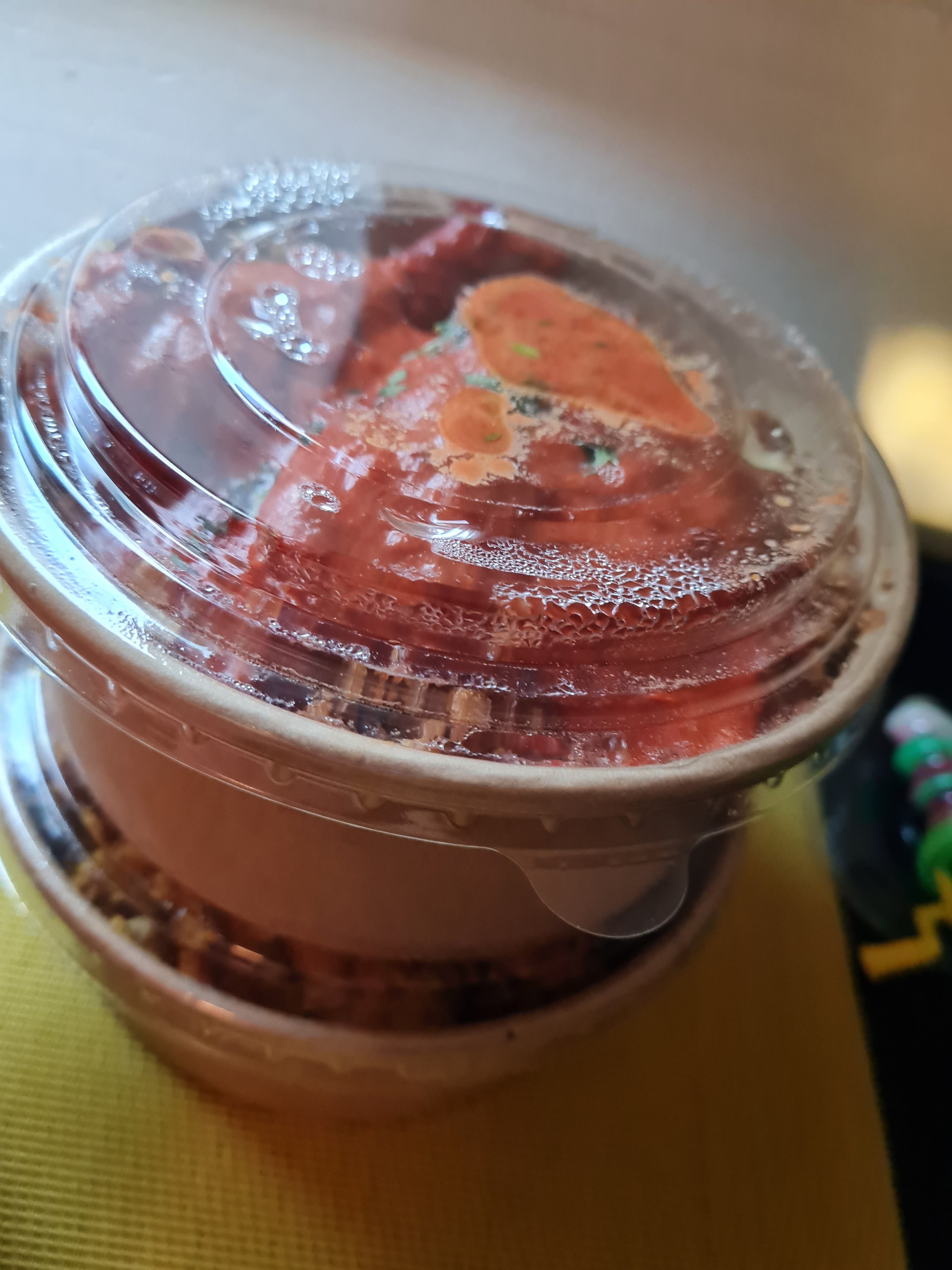 Très déçu par le Dahl qui est un plat à base de lentilles qui peut être accompagné de riz. Là c’était du riz , beaucoup de riz servi avec 1 cuillère à soupe de lentilles.