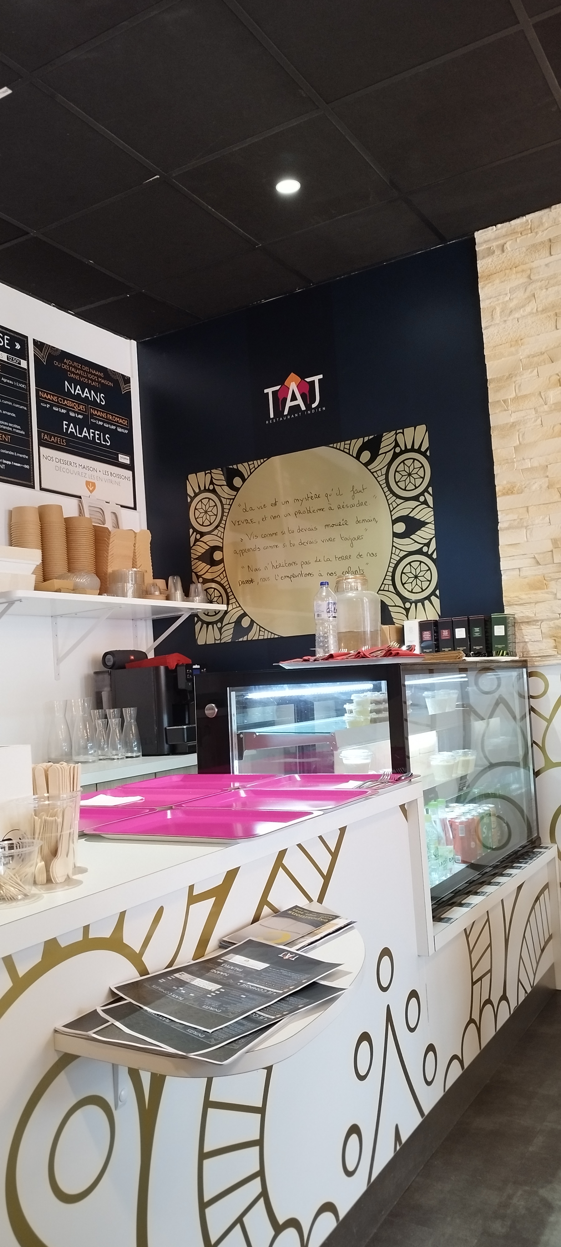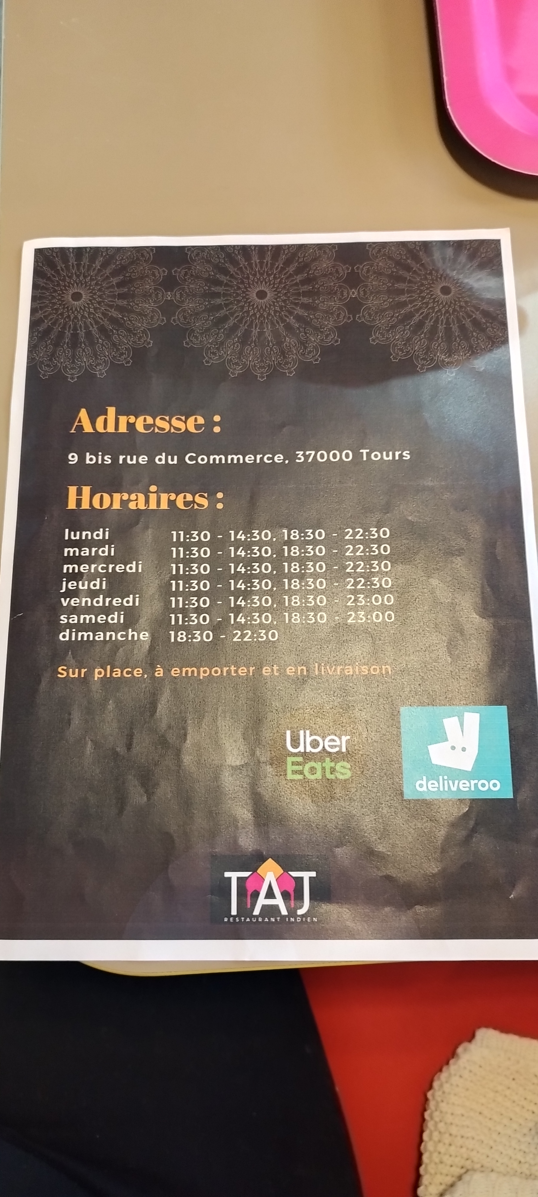 Hier soir j'ai eu la bonne surprise de goûter aux plats du TAJ, le fish & chips est incroyable c'était délicieux 😋 Je suis un peu mitigé concernant le naan au fromage qui était un peu sec mais je vais retenter l'expérience !!!! Super restaurant avec de petites attentions je vous le conseil !