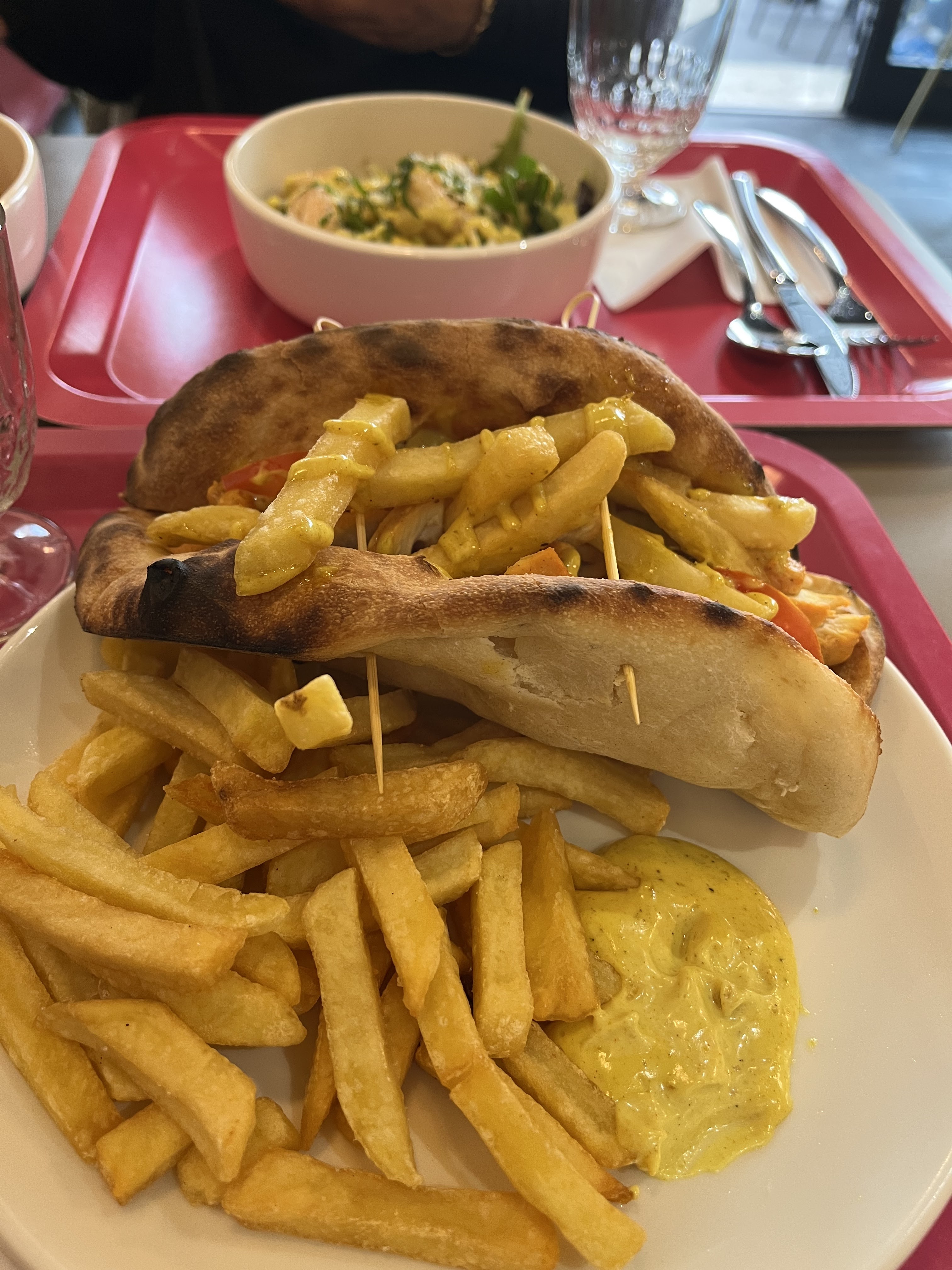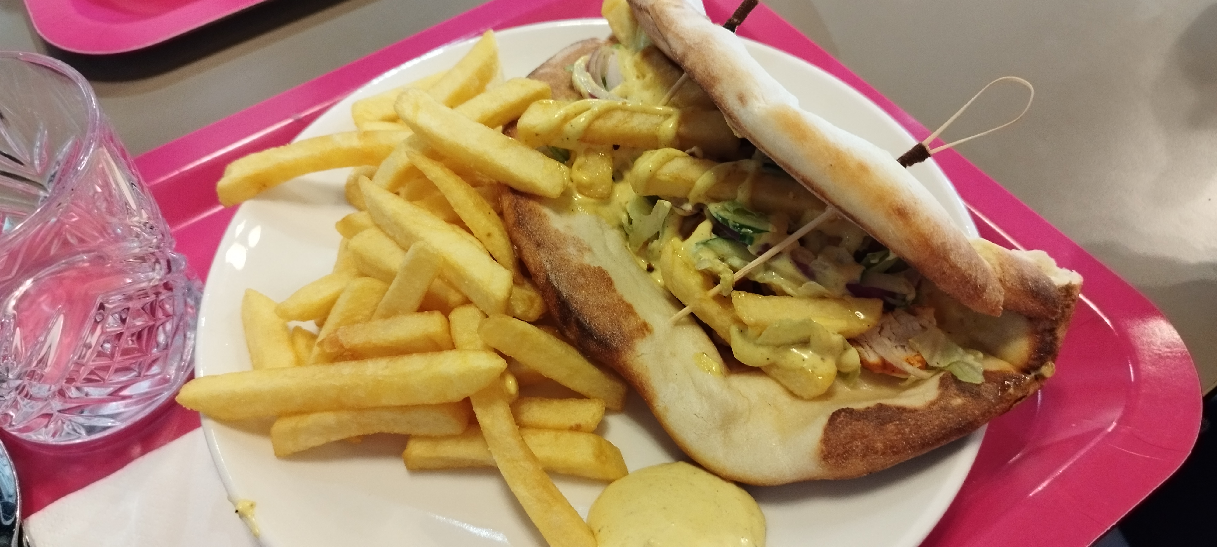 Le taj kebab est délicieux et la sauce également ! Des frites maisons auraient couronnées le tout, dommage.