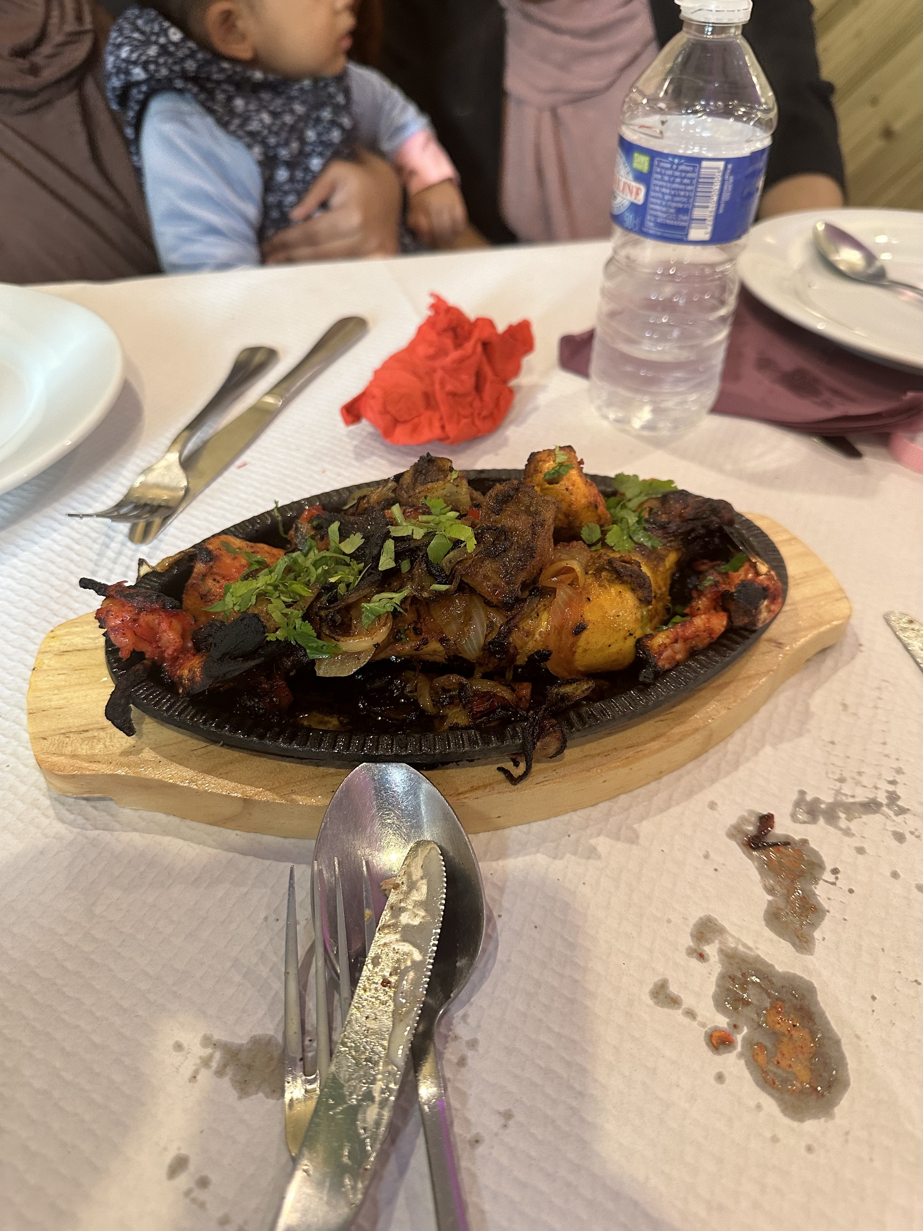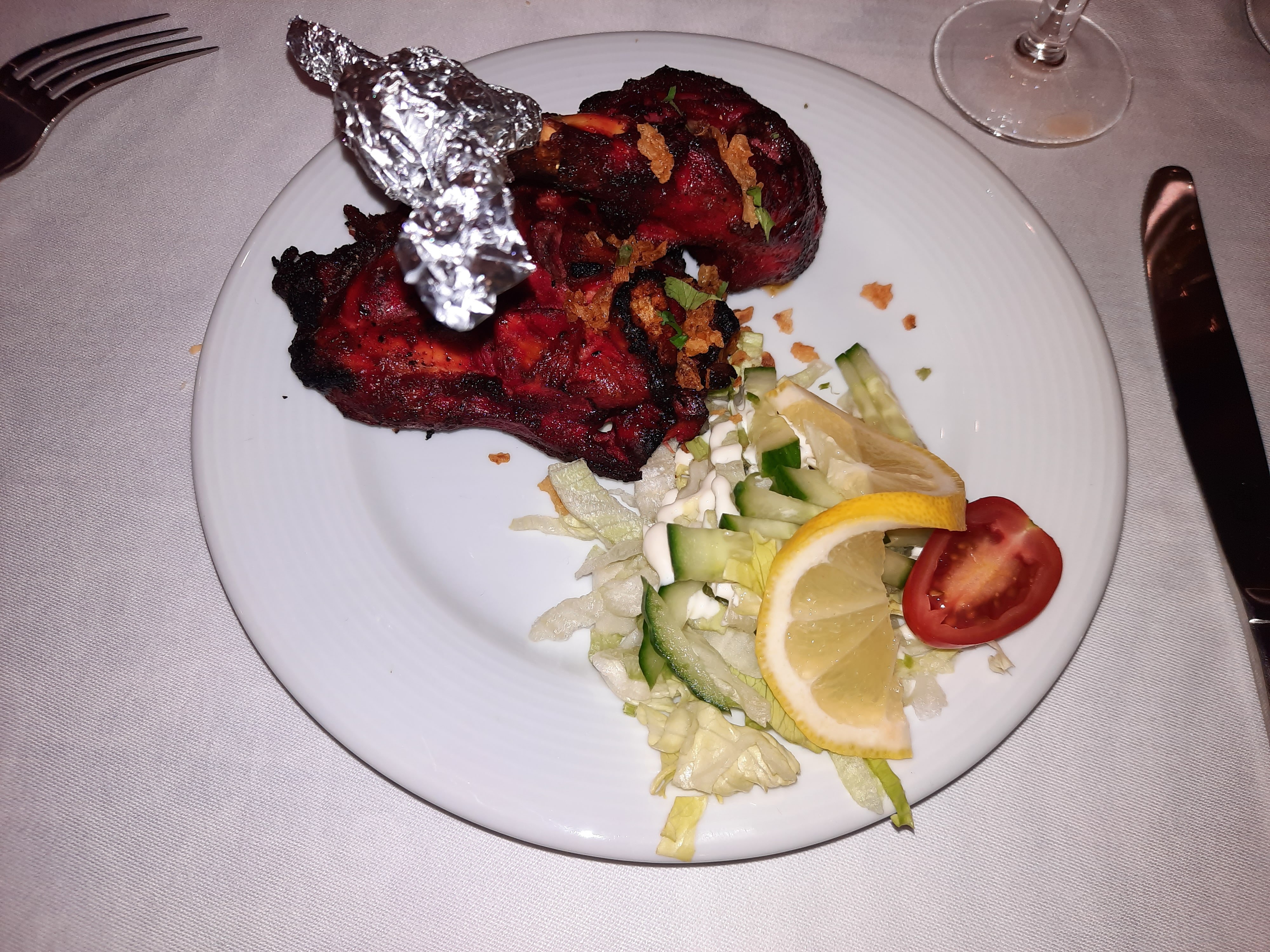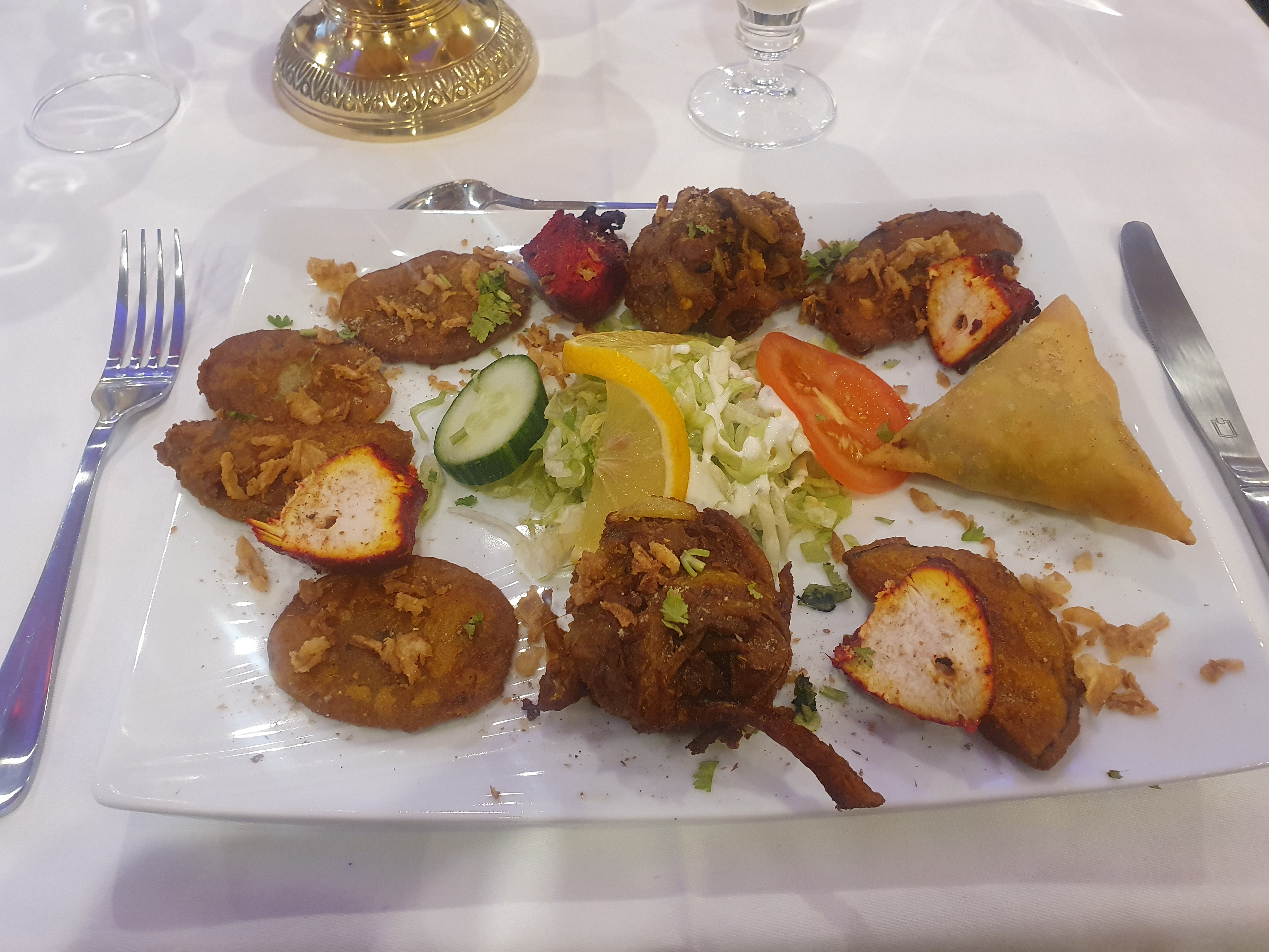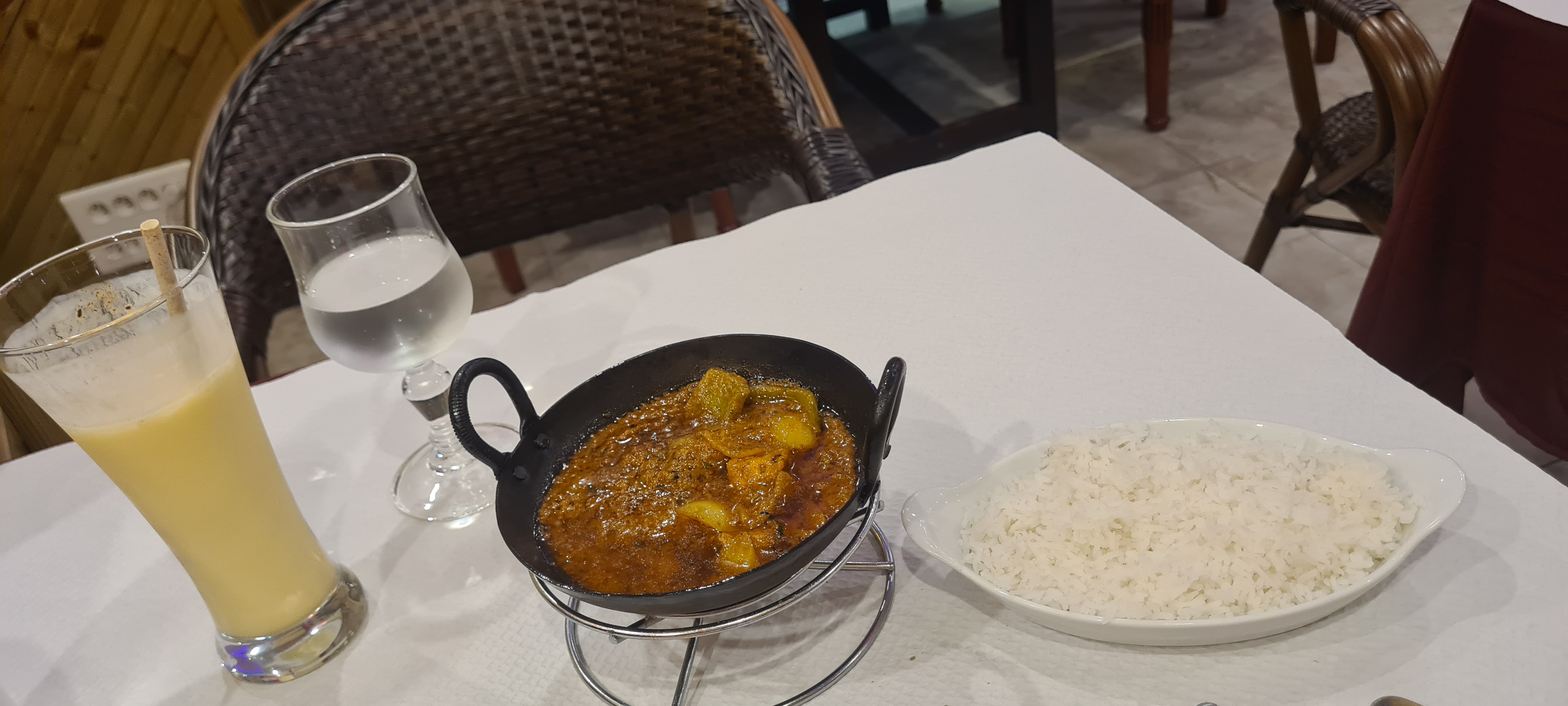 Table sale (déjà servie) tâche et miettes. Entrées très bonnes mais pas servi l entrée demandée. Gambas pas très bon, le patron se plie en quatre et remet des crevettes curry. Sauce délicieuse mais crevettes pas cuites et croquantes. Byriani moyen. Nous n y retournerons pas malgré un patron sympa 1er resto indien où il n y a pas d alcool. Dommage.