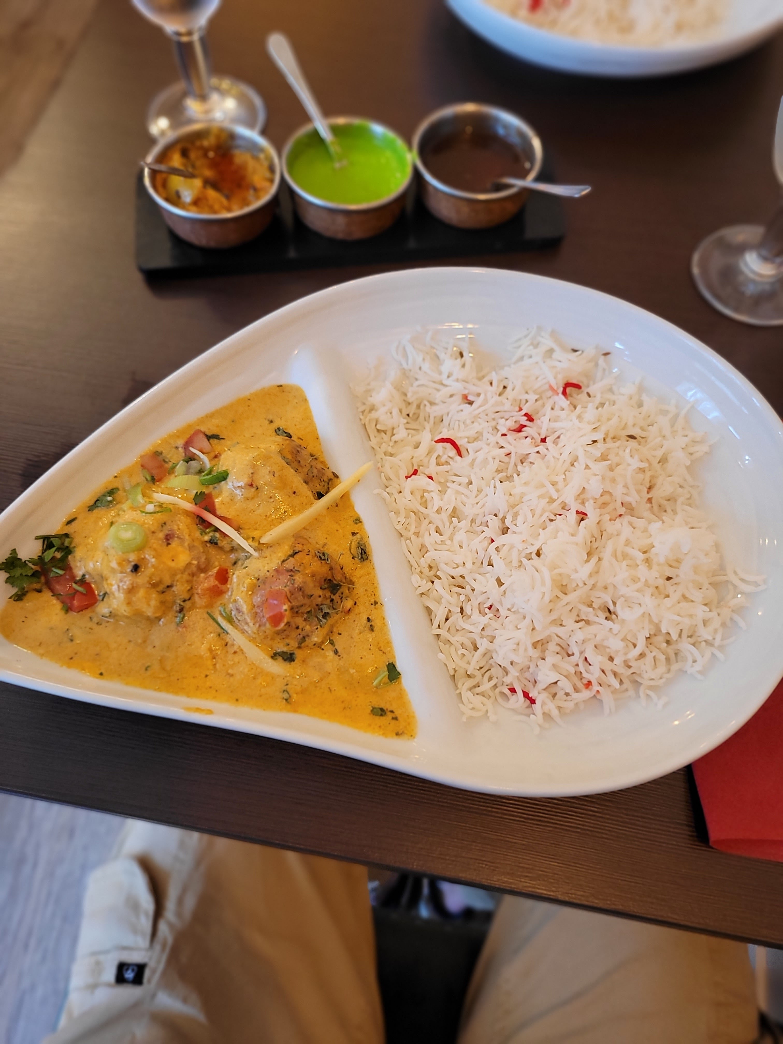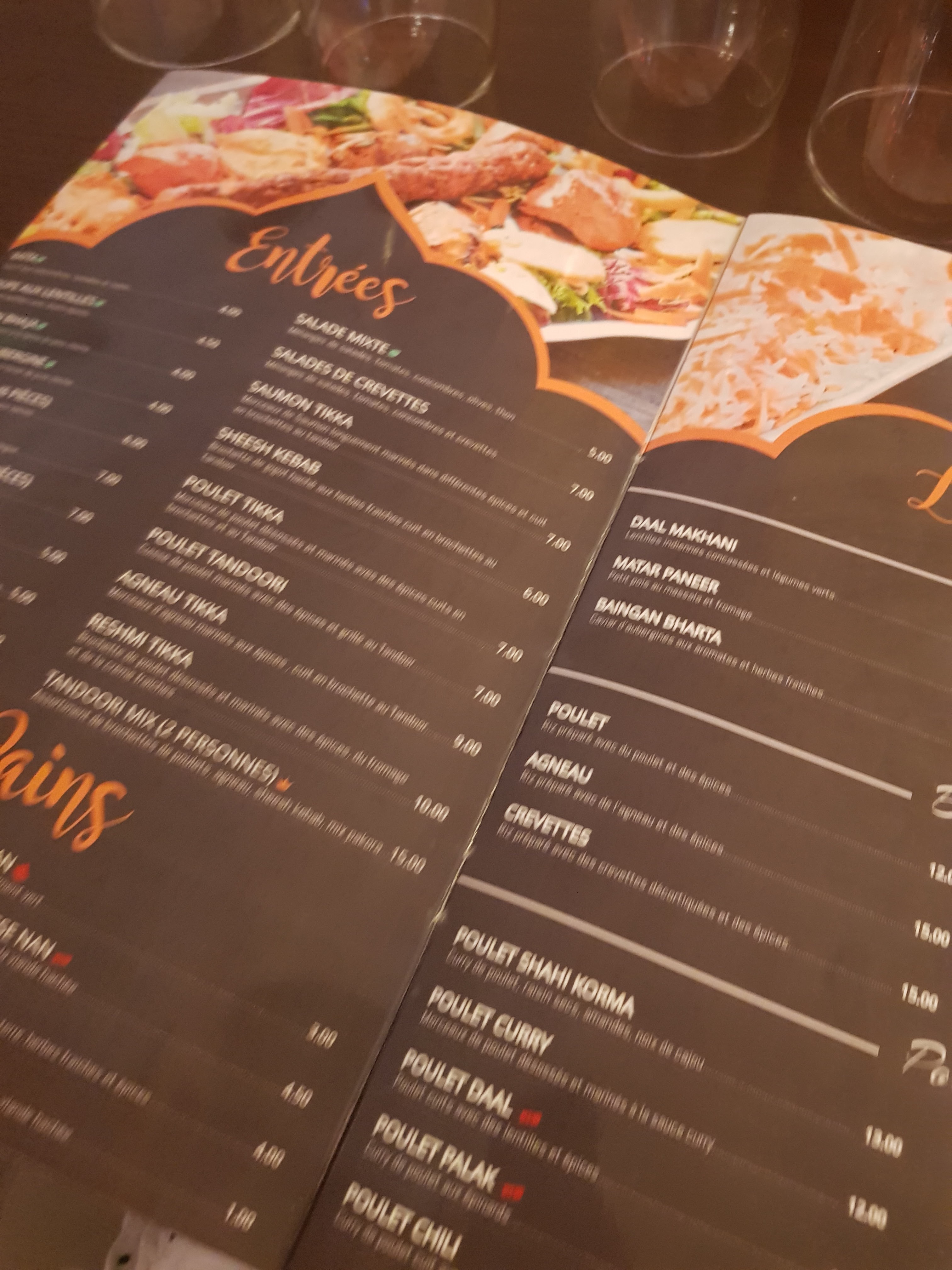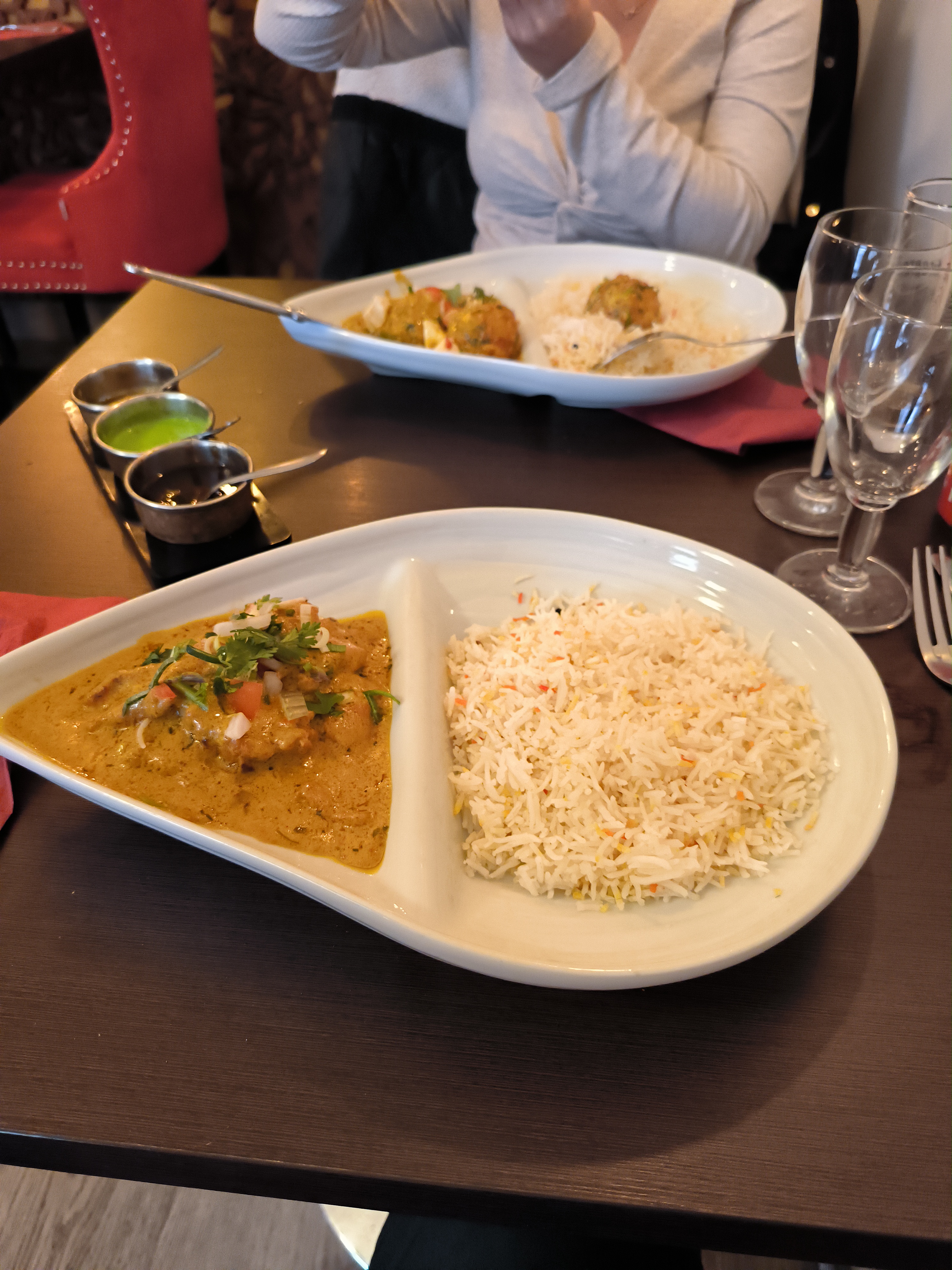 Un superbe restaurant. Avec ma femme nous nous sommes régalés et y avons passé une bonne soirée ! Le service est irréprochable, la qualité des plats excellente (produits frais et on voit que c'est fait maison) et le prix correct par rapport à ce qui est servi. Ci-dessous une photo des plats : Poulet Tika Massala (premier plan) Butterchicken (arrière plan) Je vous le recommande fortement allez-y vous ne serez pas déçus !