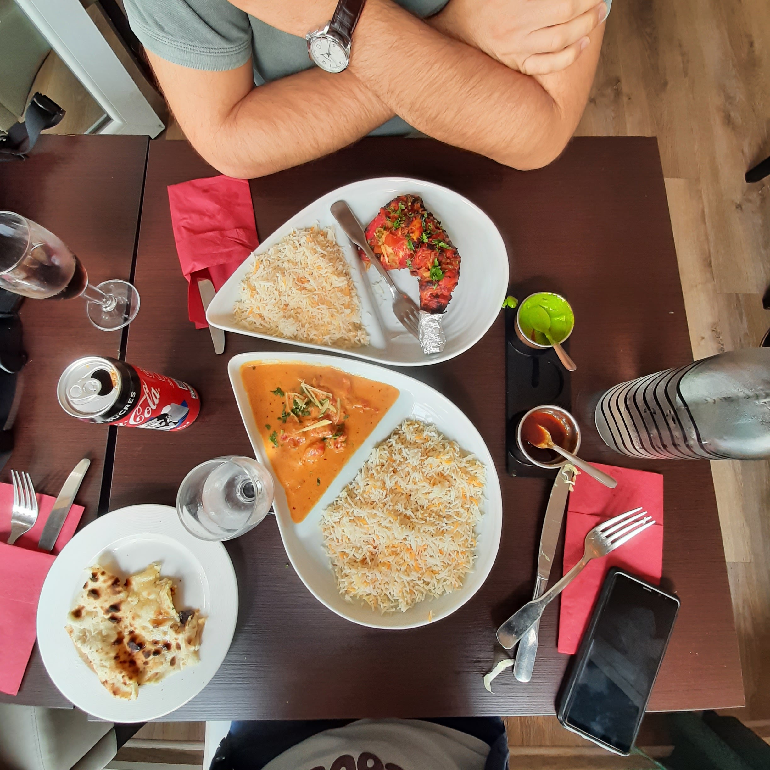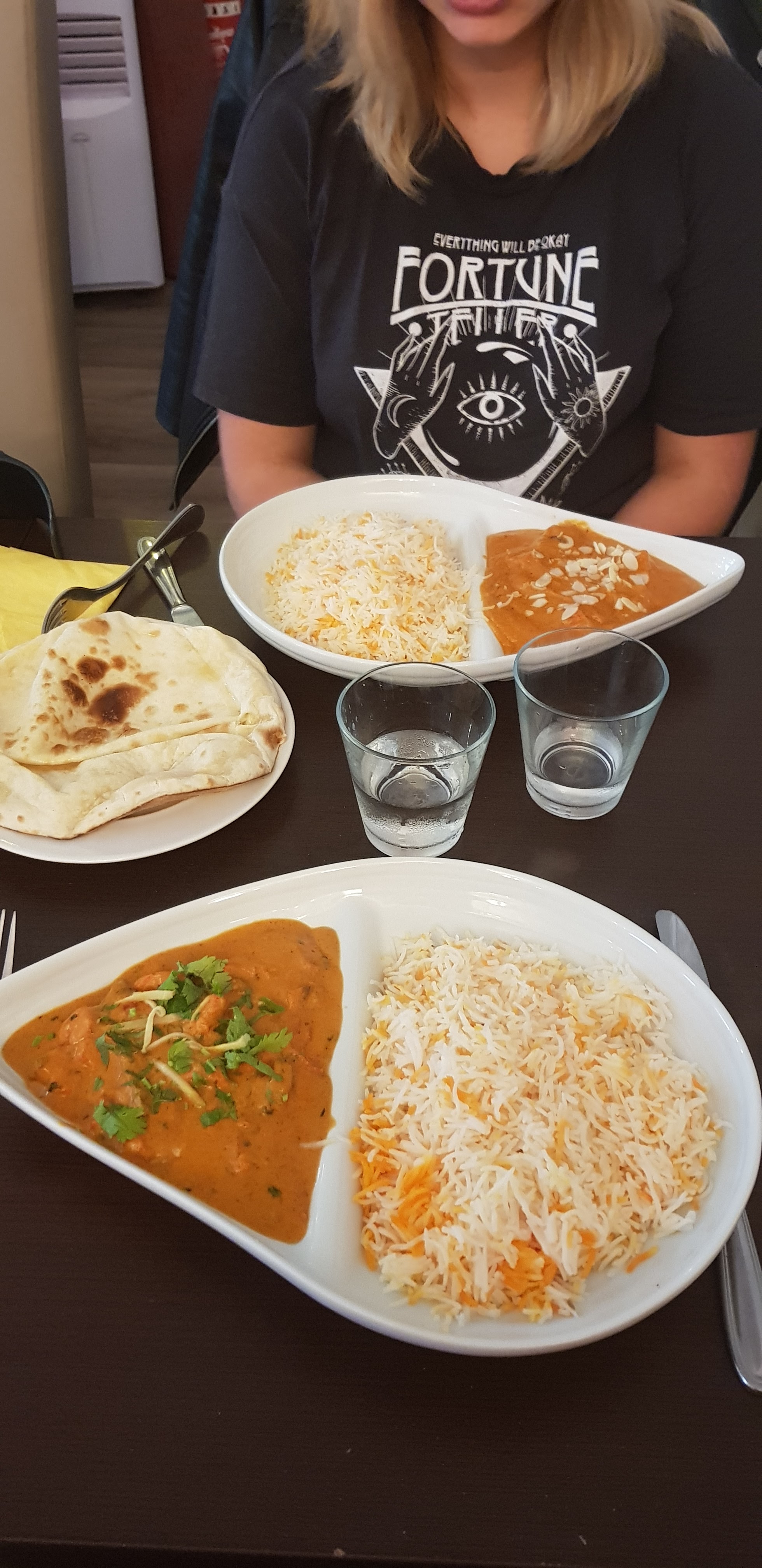 Un restaurant agréable où l'on mange très bien . Le butter chicken était copieux et très bon , accompagné d'une nan au fromage et ses sauces habituelles. Le patron est souriant, gentil et prévenant. Le serveur lui aussi est très souriant et efficace. La décoration et l'ambiance du restaurant mériterait d'être améliorée pour se sentir davantage dépaysé vers l'Inde.
