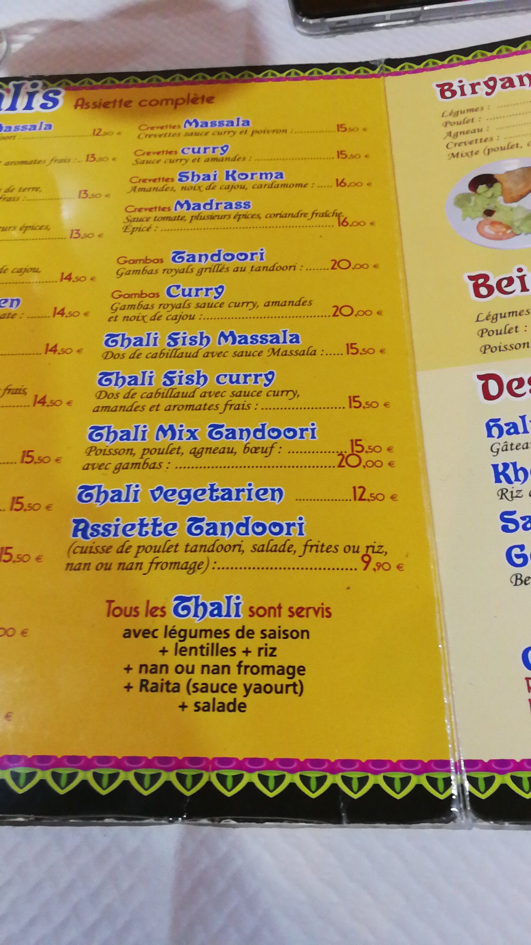 Restaurant indien cuisine indienne excellente à prix très abordable