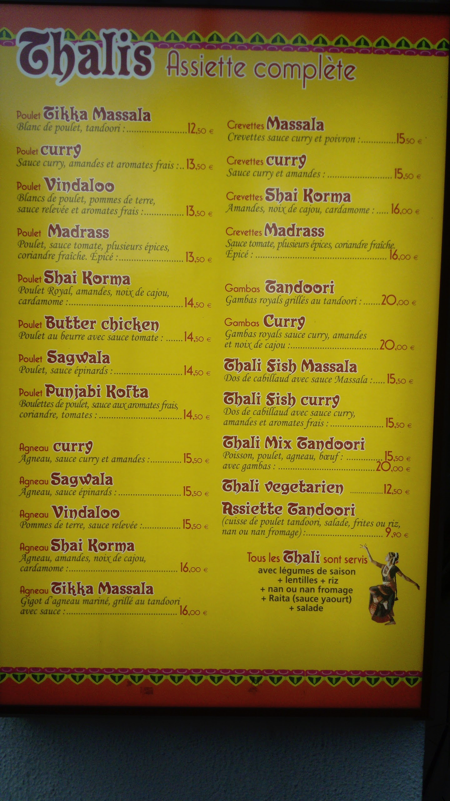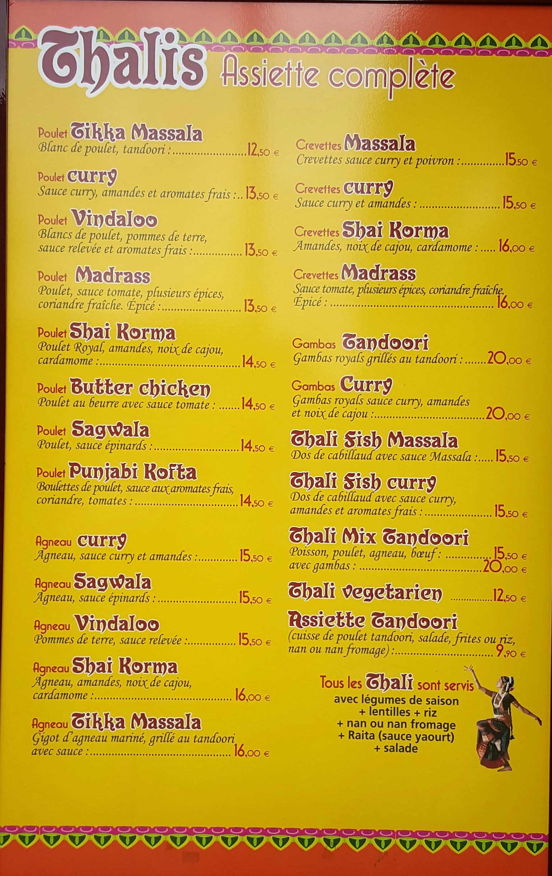 Très bon thalis, une véritable cuisine indienne servie en bonne proportion, les lassis mangue sont excellents, ainsi que les desserts. Belle découverte pour un prix doux.