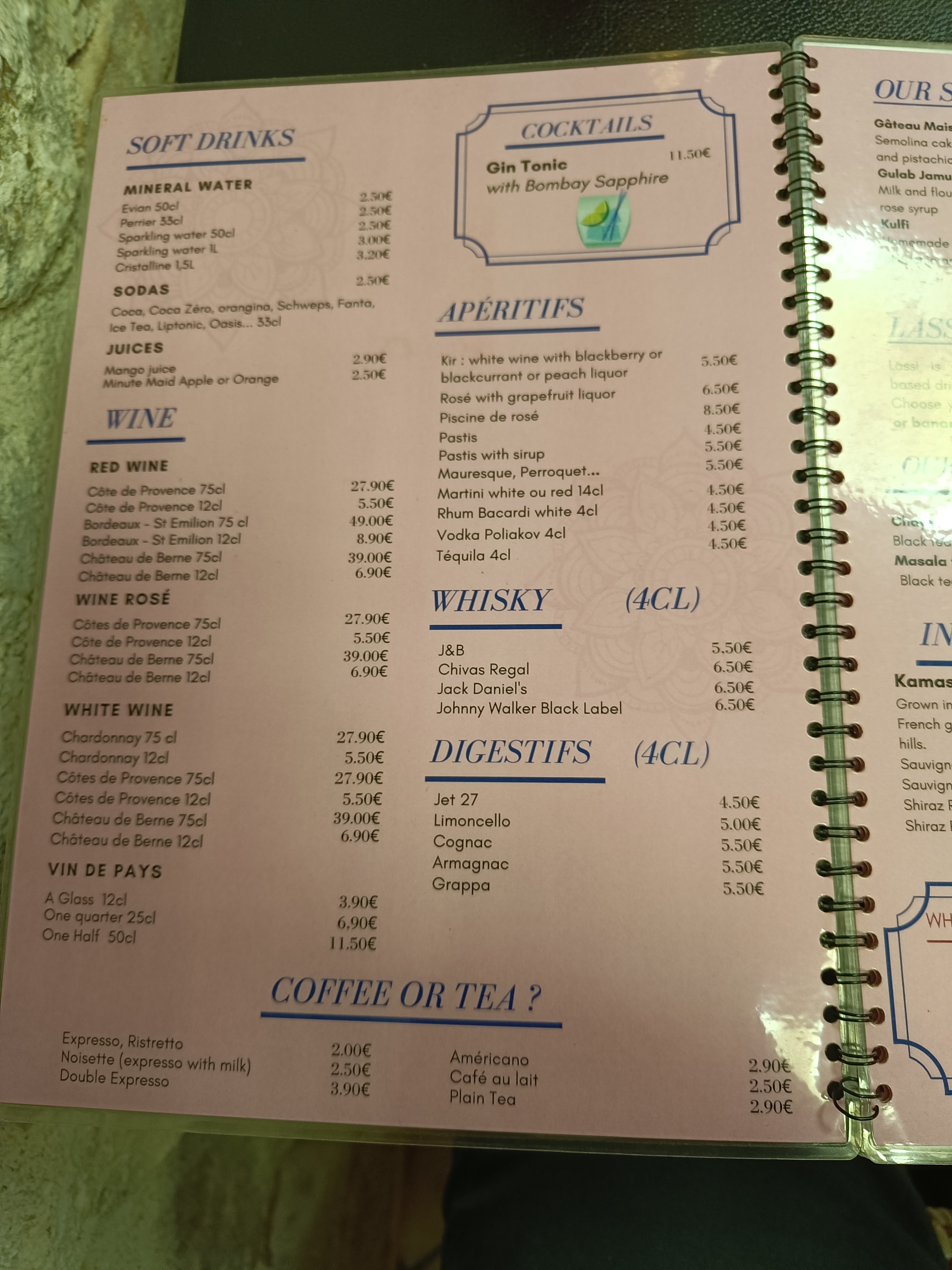 Une place spéciale où les saveurs de l'Inde vous accueillent avant votre arrivée et vous guident dans ce local vraiment unique, à l'entrée de Vieux Nice. Du curry au tandoori, en passant par les saveurs du tamarin au gingembre à l'ail au coriandre, tout est là pour vous transporter au beau milieu du sous continent indien.