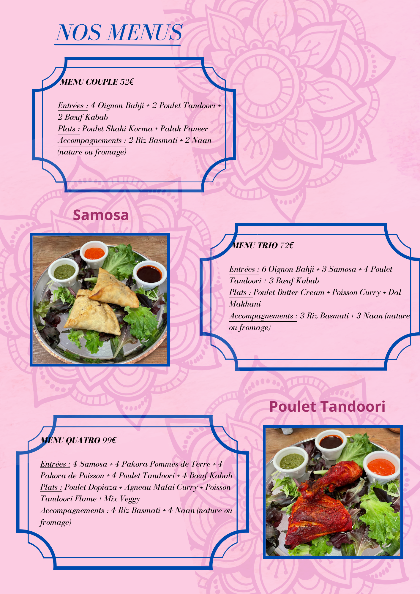 Namaste et Bonjour venez faire votre degustation au Tandoori Flame à Vielle Nice.France..Super Duper accueil