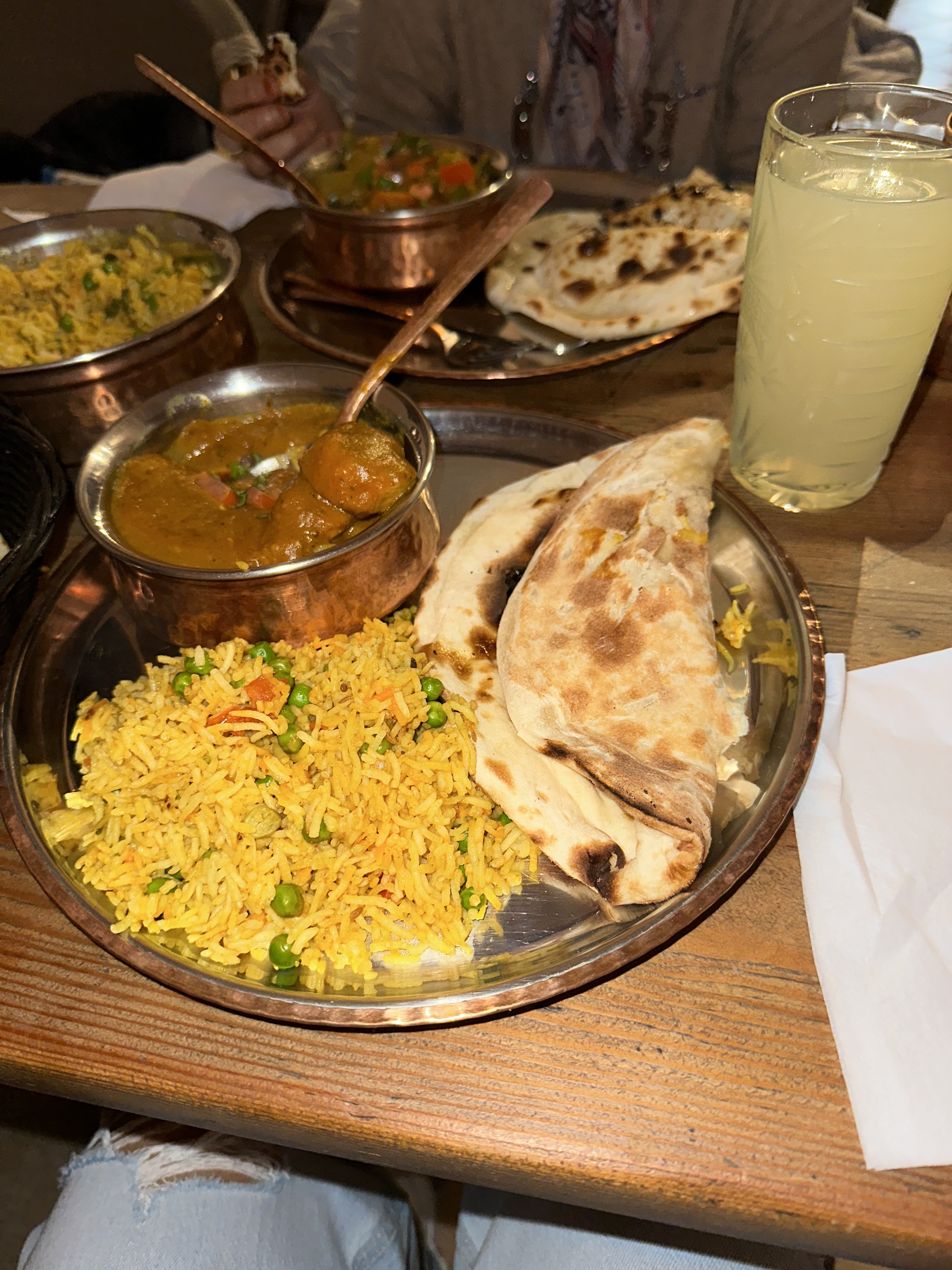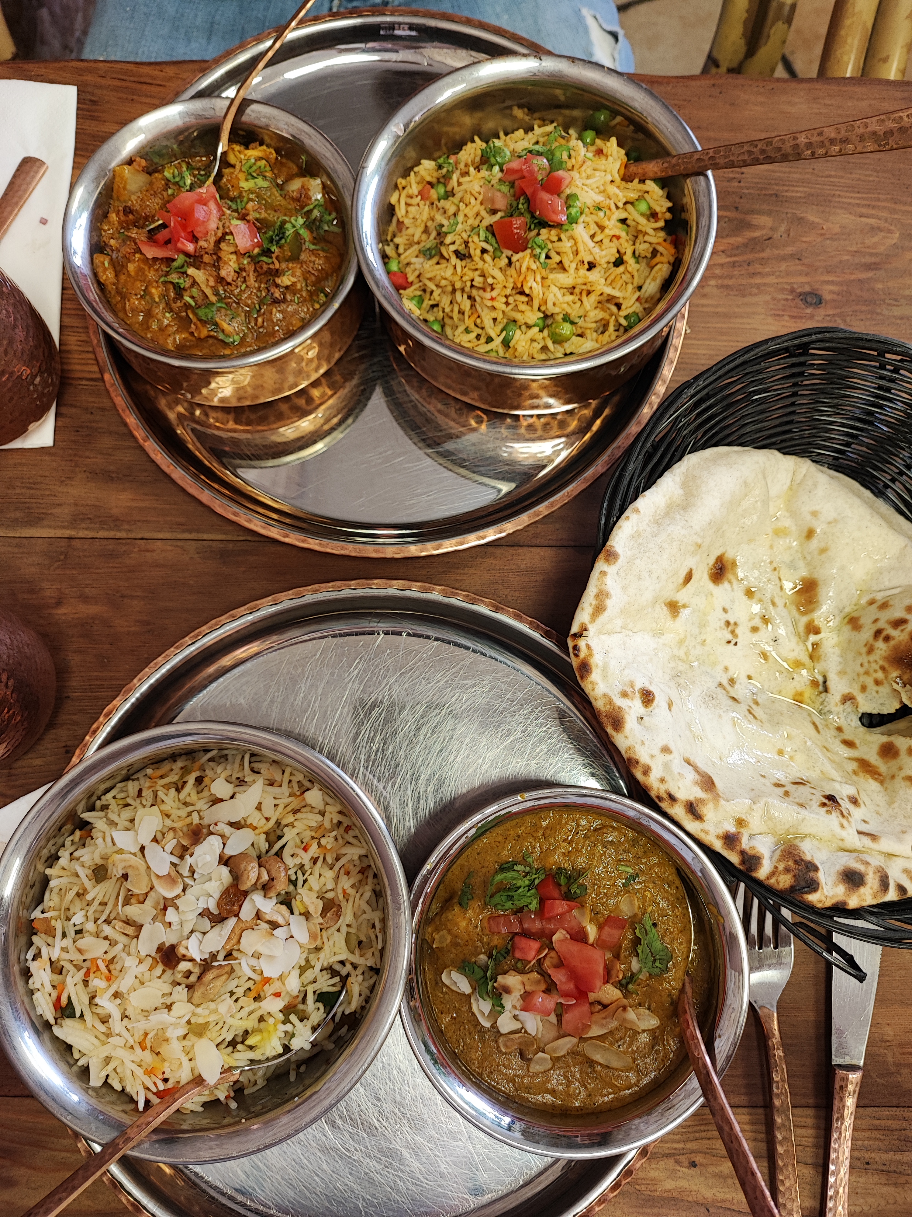 Un voyage en Inde. Les plats sont bons, les lassis et les naans aussi. Le service l'est tout autant.