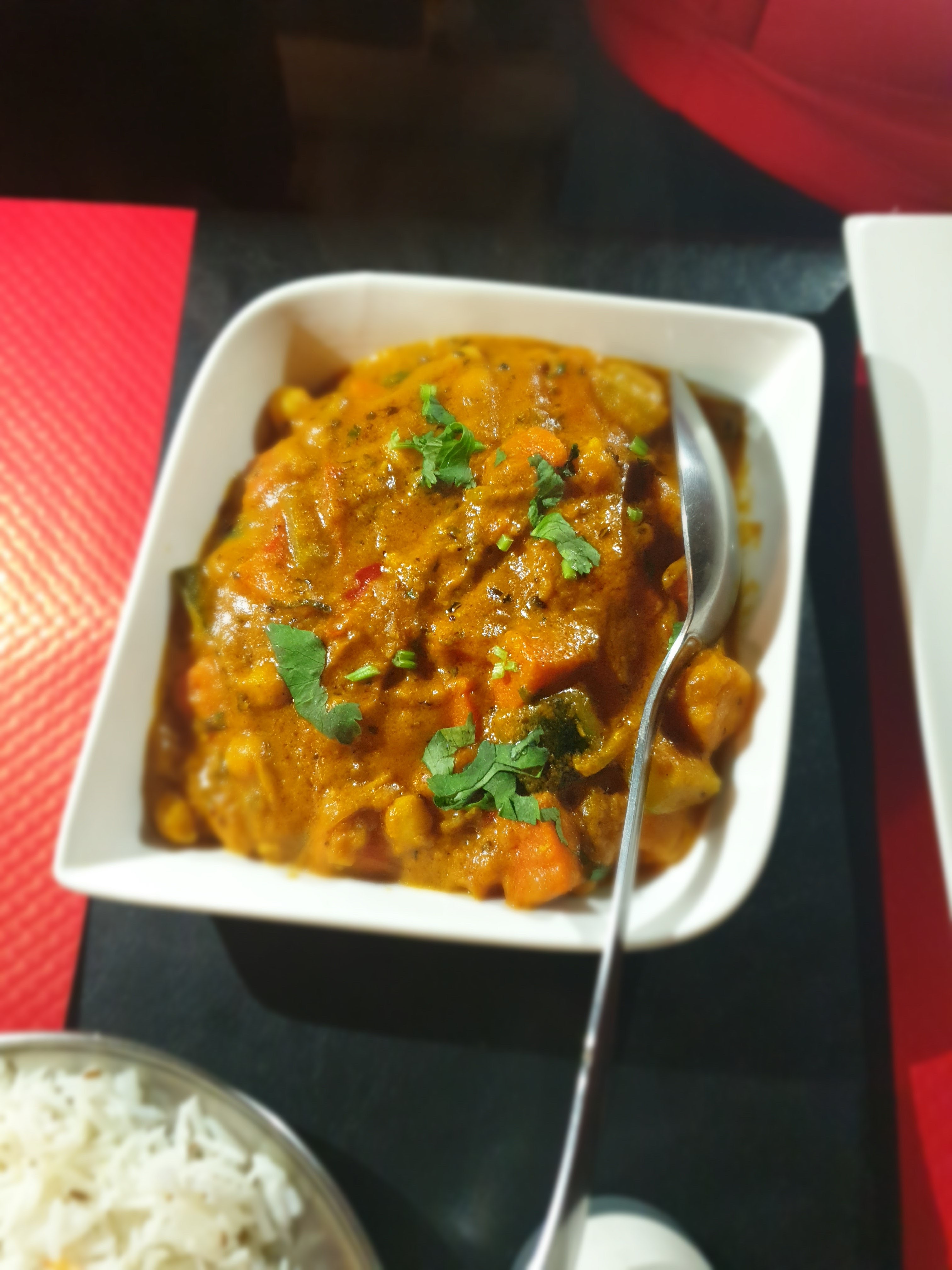 J'ai commandé en livraison, le temps d'attente était assez voir très long mais leur livreur était sympa et souriant et j'ai eu moins 10% pour l'attente. J'ai pris le menu dégustation, je ne suis pas connaisseuse des plats indiens mais c'était pas mal. J'ai pris comme plat les crevettes massala (un peu petites à mon goût) mais avec la sauce et le riz basmati, c'était très bon! J'ai bien aimé aussi le samossa au légumes, le poisson tikka et le mix pakora.