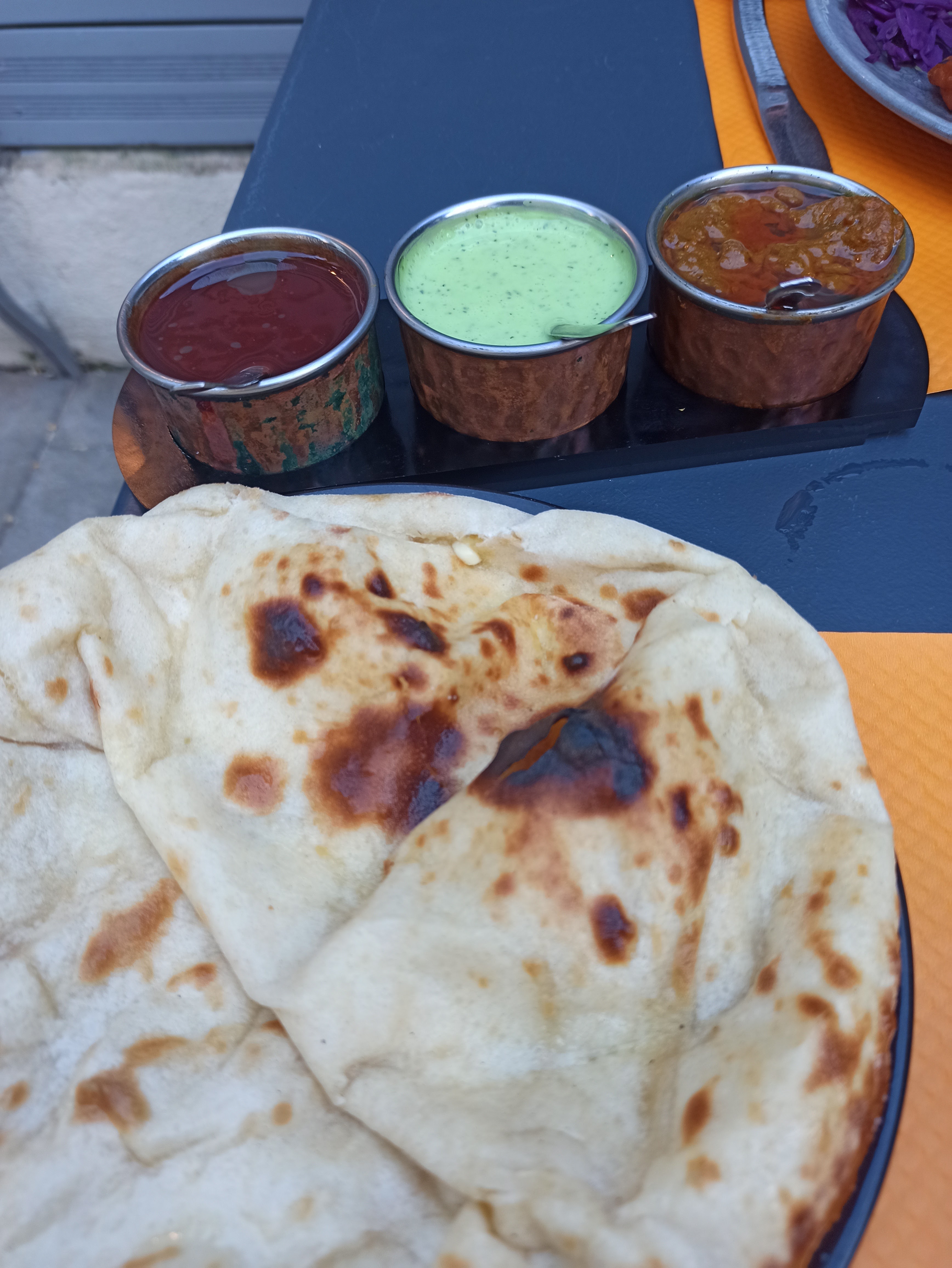 Super le poulet curry est vraiment incroyable attention cependant si vous prenez à emporter les naan risques d’être ramolli donc demandez leur ou ouvrez l’emballage en aluminium pour éviter cela