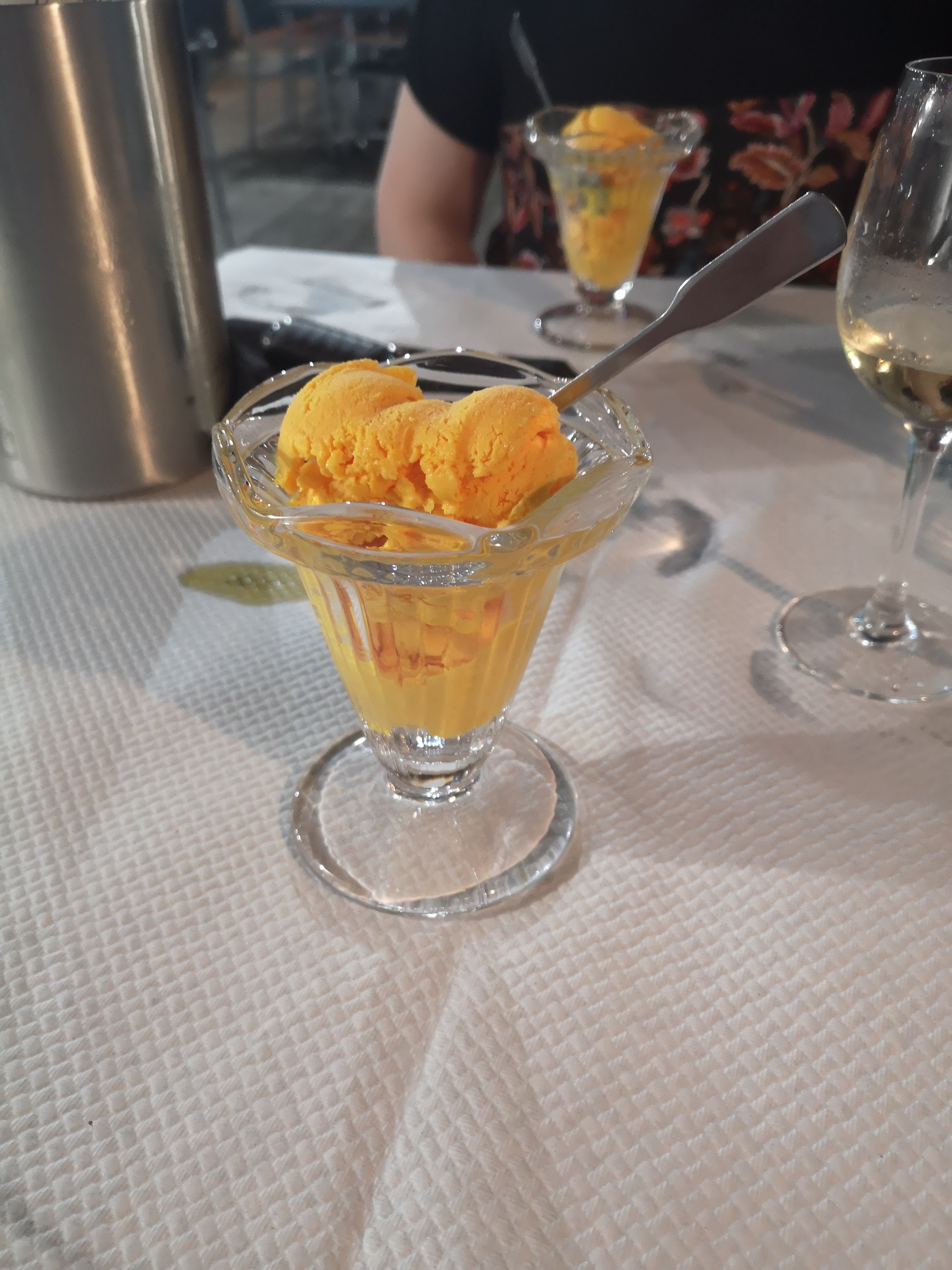 Service impeccable, plat copieux et vraiment bon 👍 en désert la glace kulfi vraiment merveilleuse un délice je vous recommande, juste un peu long mais je le conseille..