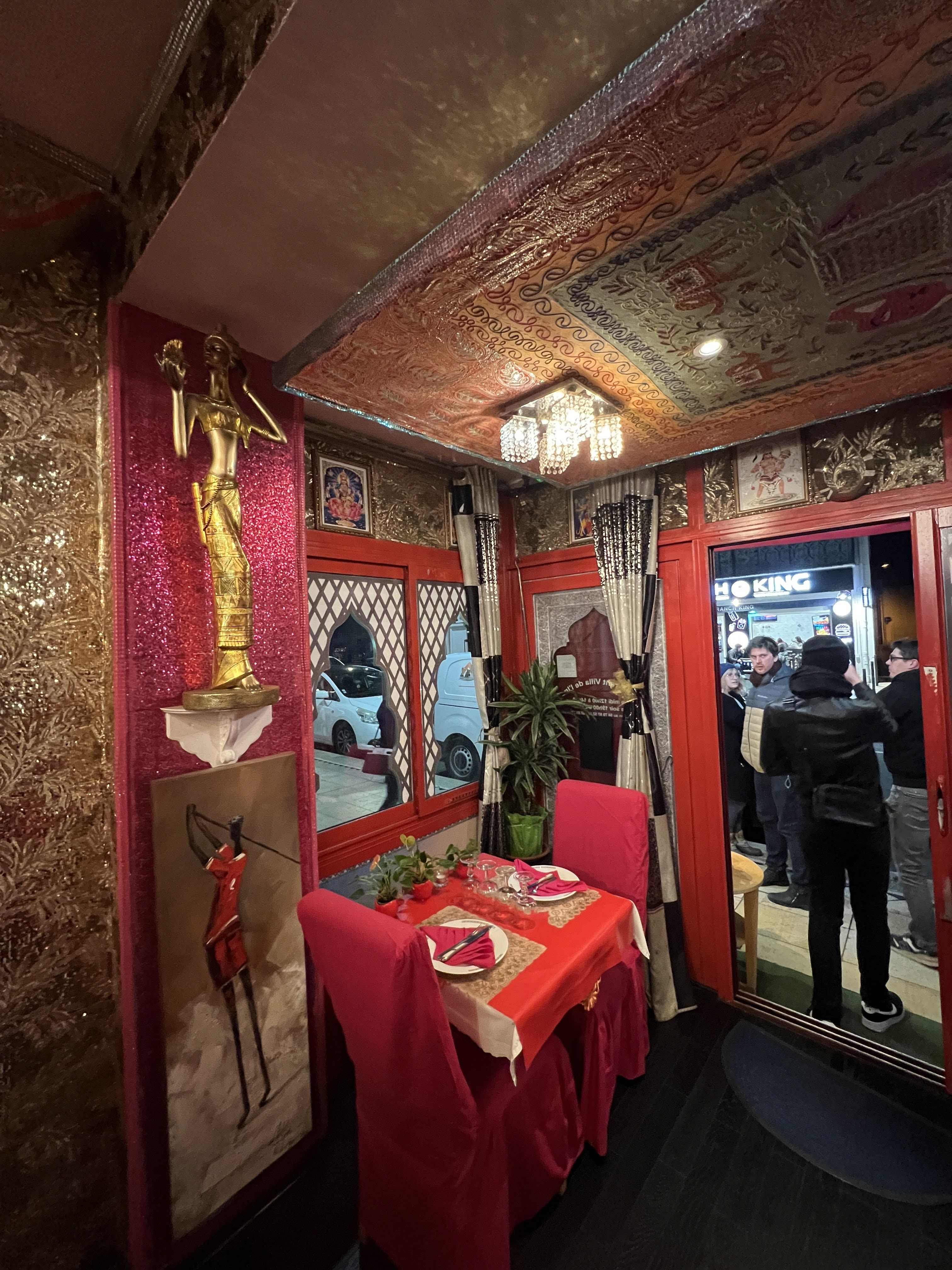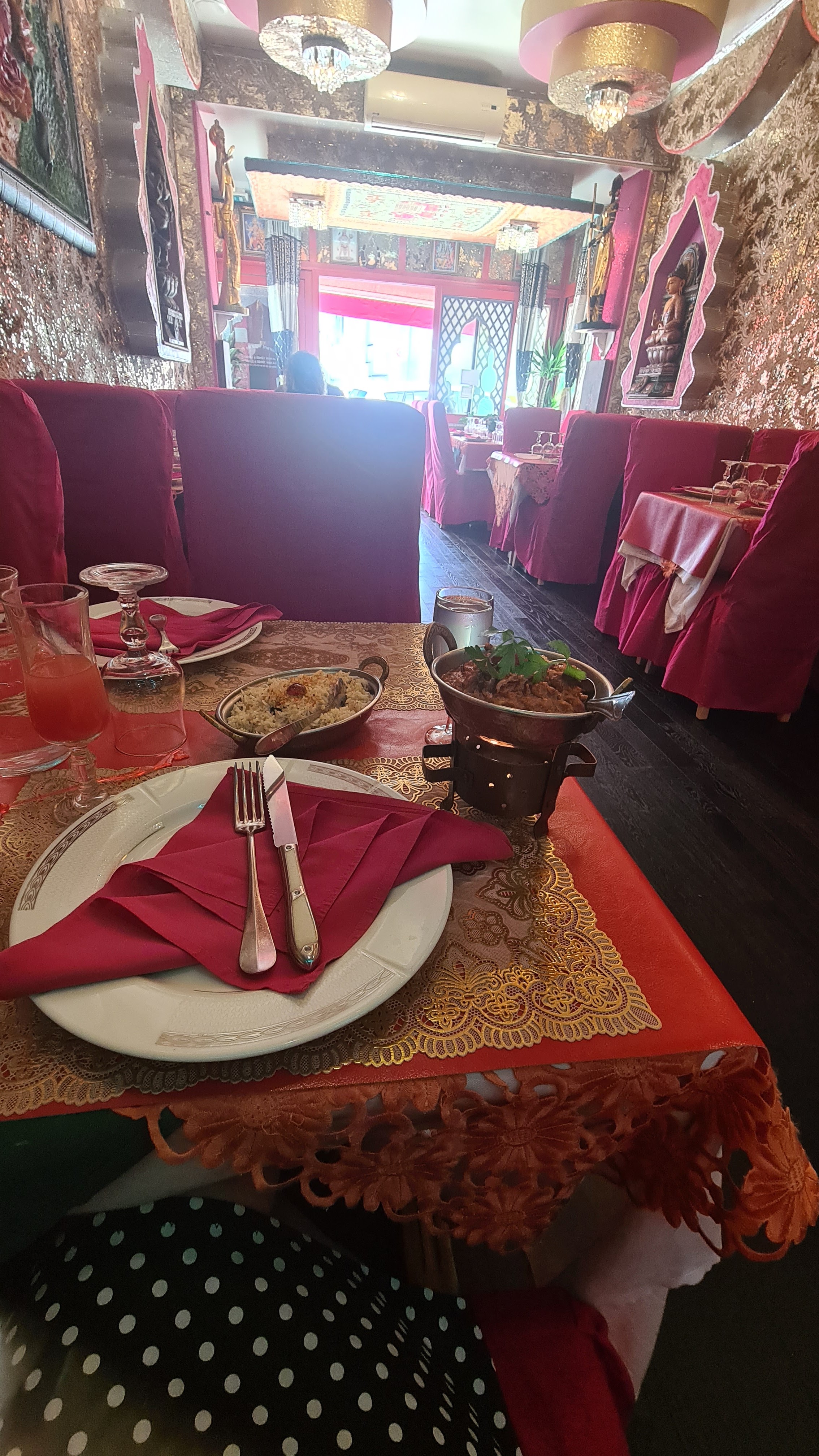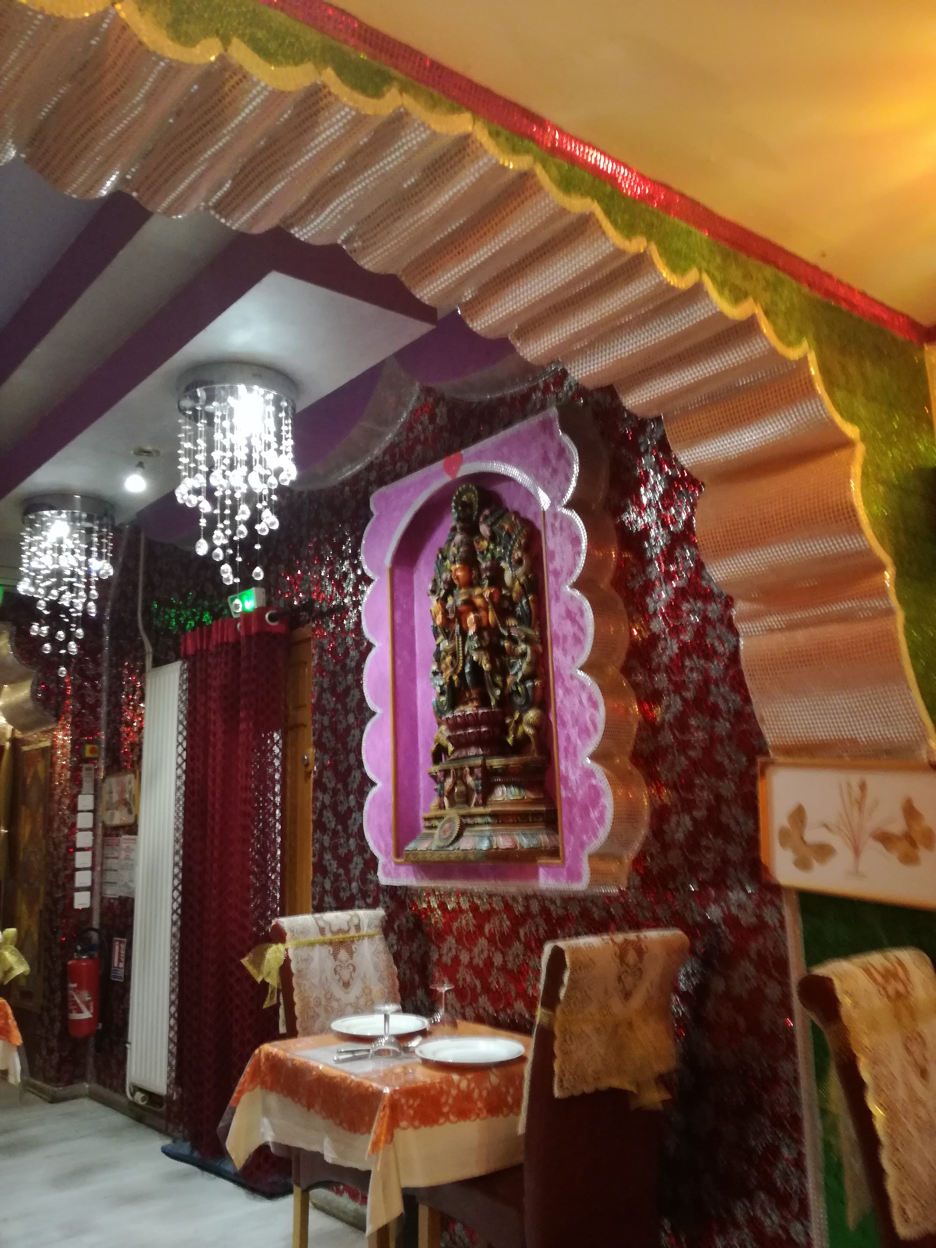 Une decoration magnifique qui nous amène directement en Inde d'autant plus d'autant plus avec les odeurs d encens et de parfum indien, personnel aux petit soins pour nous faire vivre la plus explosive experience culinaire Et cela est bien le cas!
