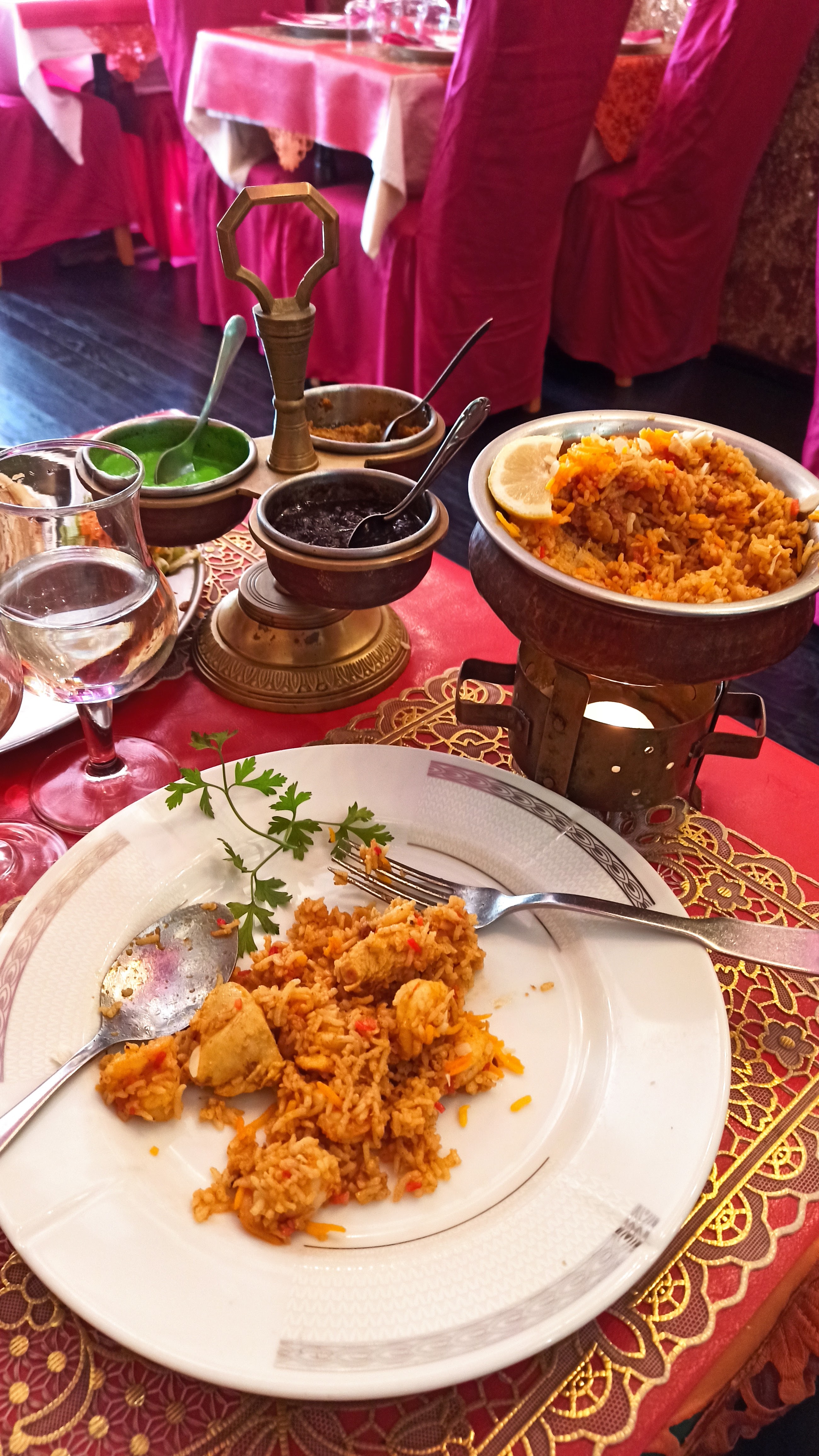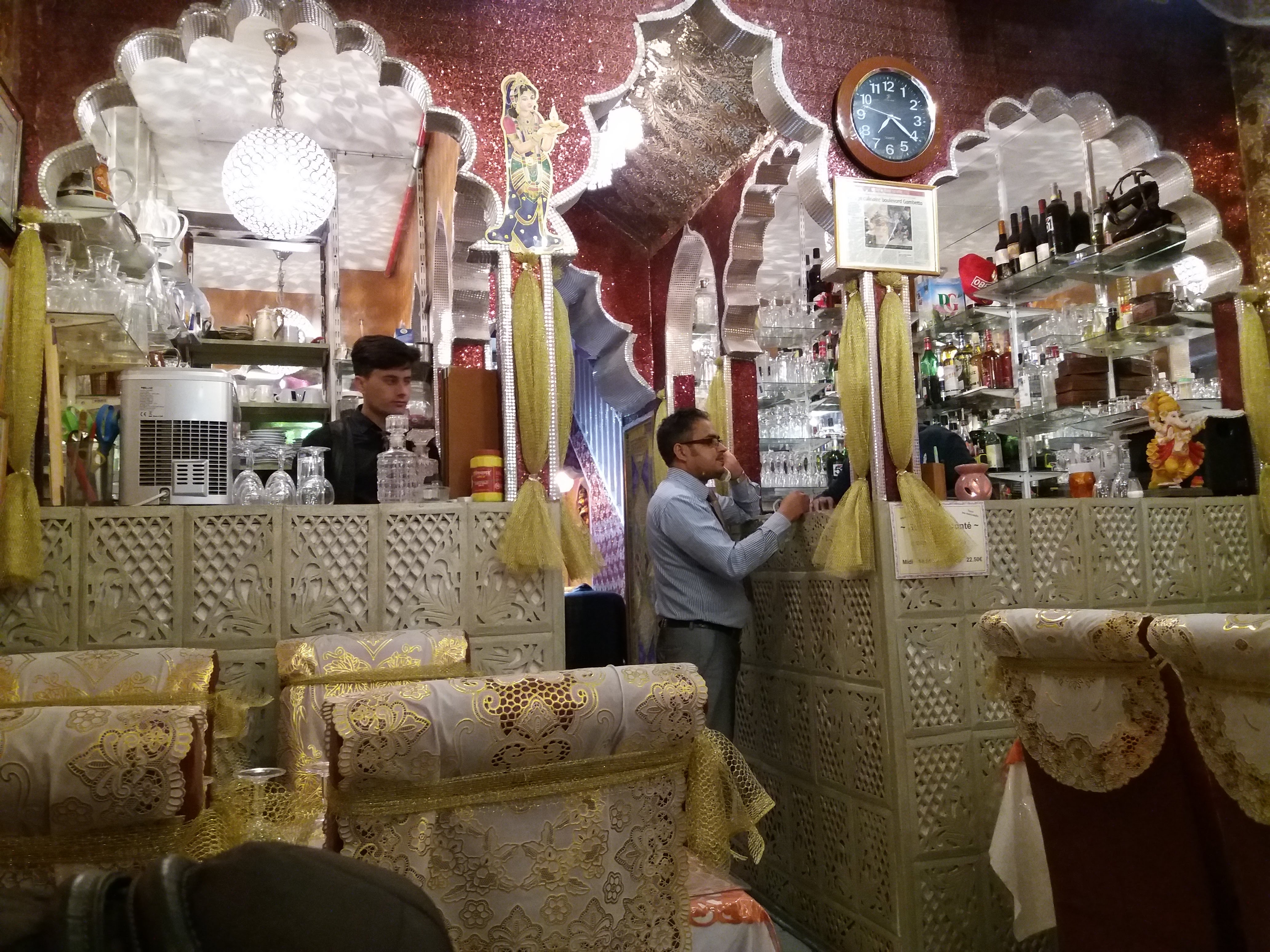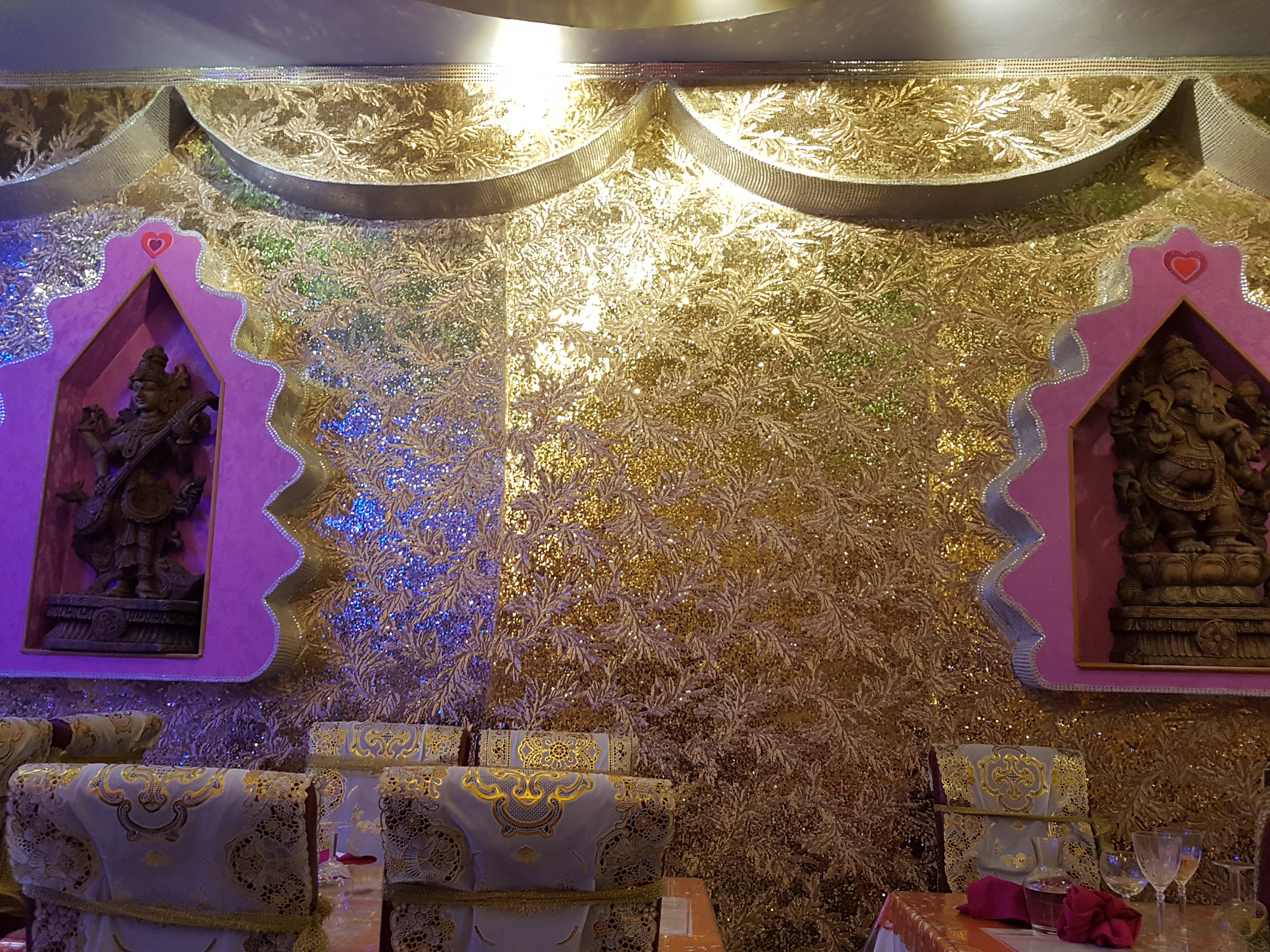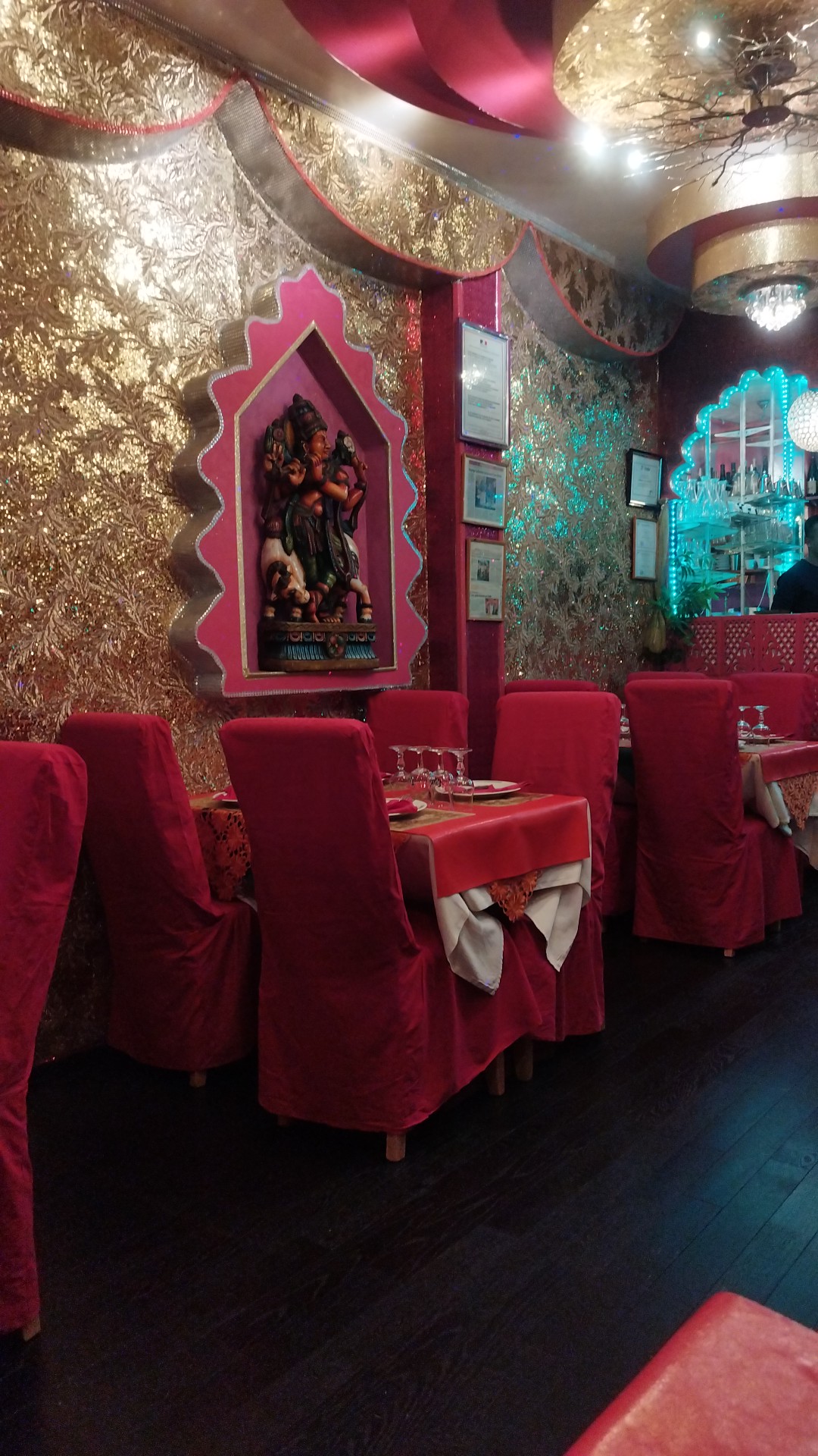 Une decoration magnifique qui nous amène directement en Inde d'autant plus d'autant plus avec les odeurs d encens et de parfum indien, personnel aux petit soins pour nous faire vivre la plus explosive experience culinaire Et cela est bien le cas!