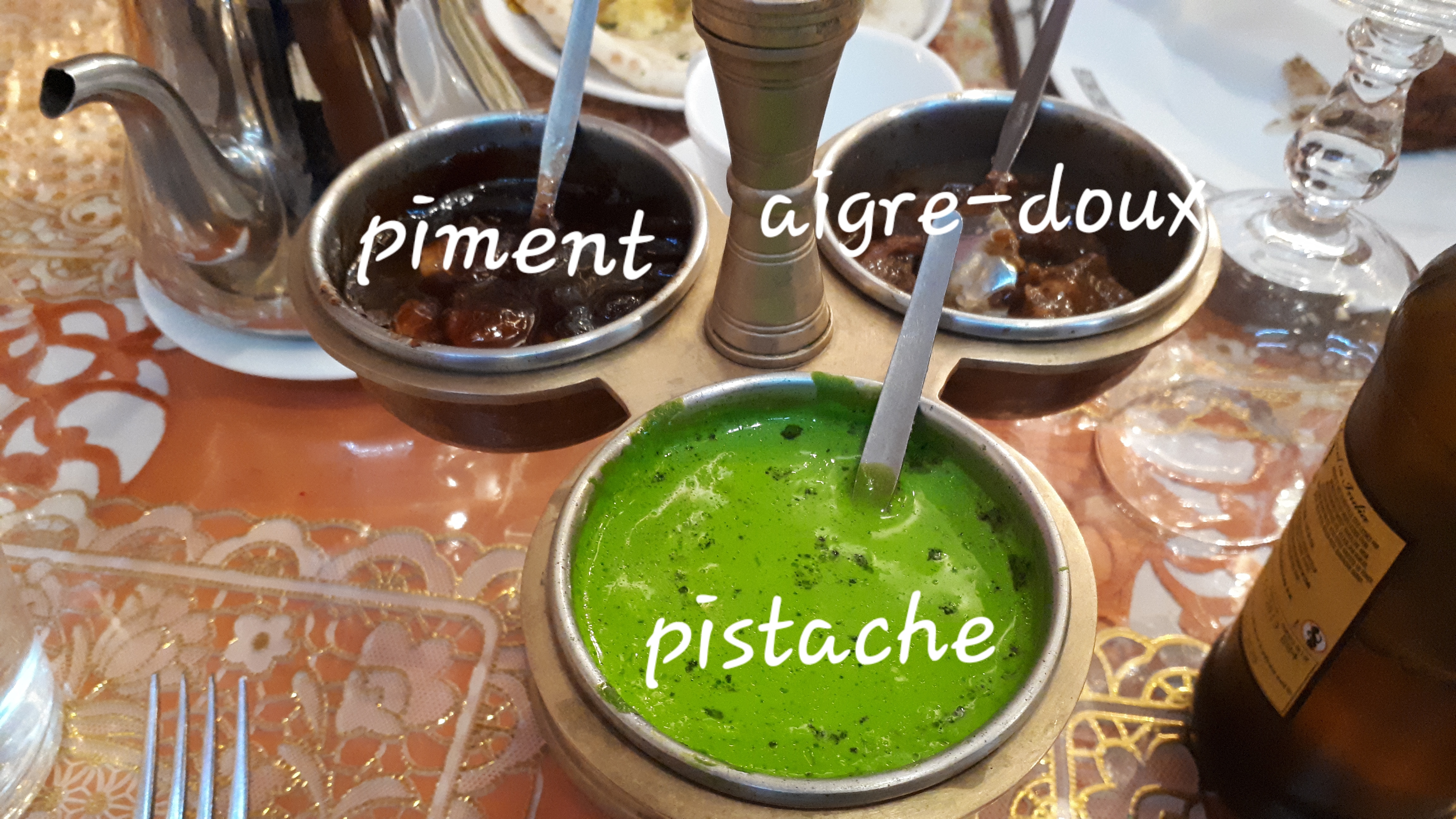 A peine sortie du restaurant, ma chérie a rendu son repas ! Des tables situées à l'entrée du restaurant, donc obligé de faire bouger les personnes pour sortir. Repas pas terrible, j'ai pris un plat sensé être des brochettes d'agneau haché, mais c'était une sorte de pâte jaune caoutchouteuse. Et que dire de la french manucure ? No comment ! Édit : pour répondre à votre interrogation sur la french manucure : les ongles noirs, dans la restauration, on ne peut pas dire que ce soit vendeur.