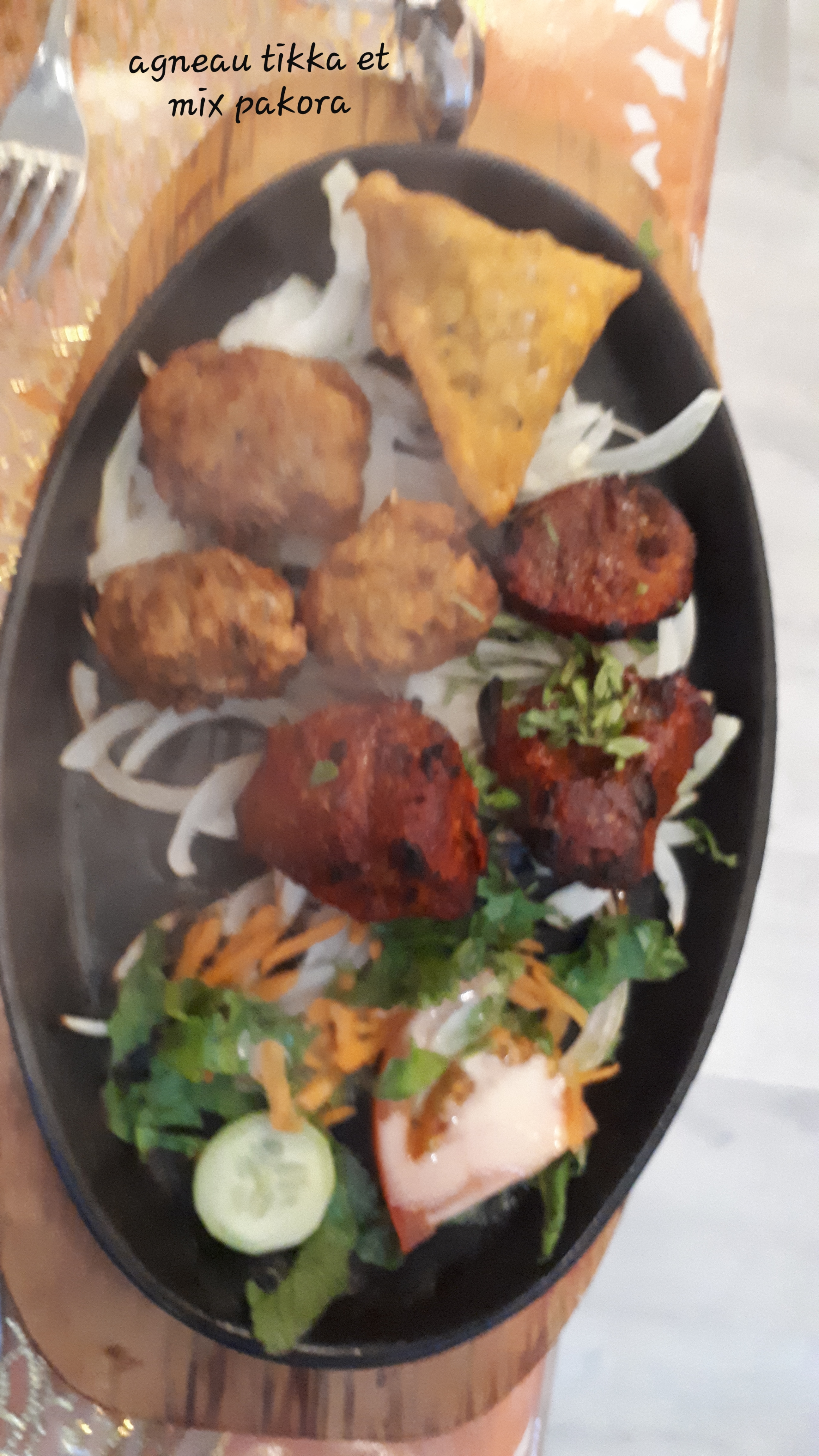 Samoussa pas bon du tout ! Une des trois sauces avec un cheveux noir dans la sauce sucré. Le serveur me disant que les sauces passer de table en table , en me faisant comprendre que c’était sûrement un client 😂 bravo l’hygiène Nan au fromage pas bon du tout , moi qui adore ça ! La pâte trop épaisse , J’ai mangé même pas la moitié. Par contre le plat agneau et le riz très bon ! On a même pas mangé de dessert, tellement qu’on était déçu. Étant habitué à manger au restaurant indien le Ghandi , j’ai voulu changer pour goûter celui-là car il était bien noté autant que le Ghandi . Je retournerai au Gandhi, sans hésiter, en plus , un peu moins cher. Pourtant, ce n’est pas mon habitude de mettre des mauvais commentaires.