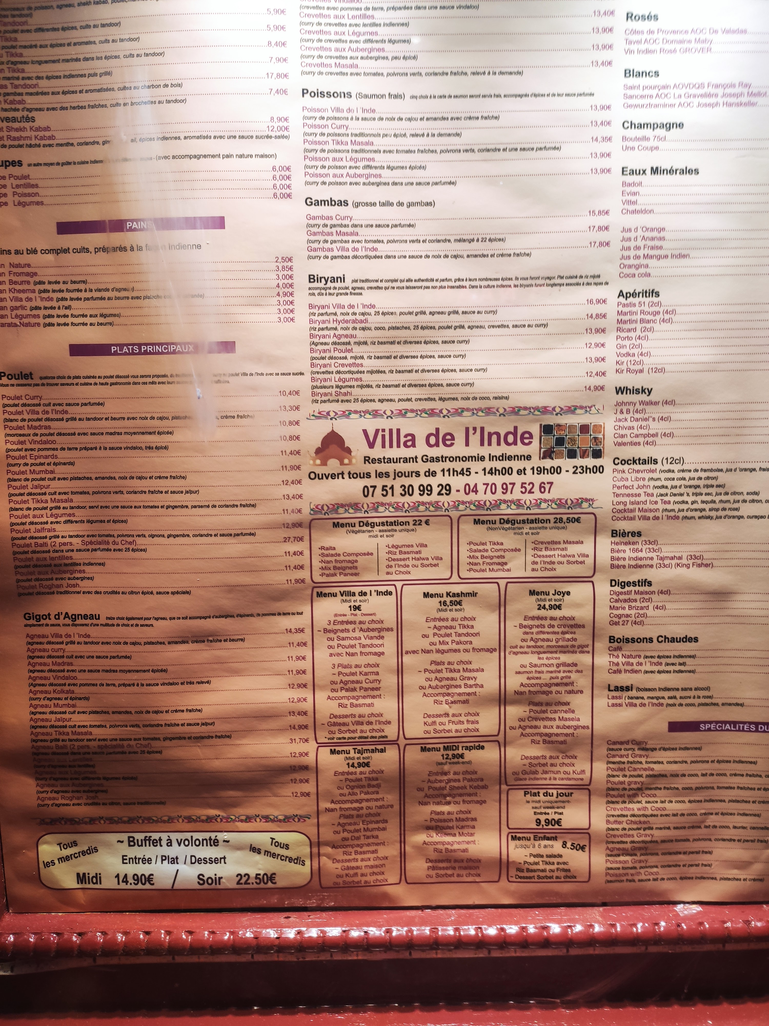 Certains restaurateurs, sous prétexte d'être «de là bas», s'improvisent cuisiniers :chinois, italiens , maghrébins, et bien d'autres. La villa de l'Inde est un véritable restaurant gastronomique indien, où l'on ressent de suite dans son assiette que le patron est un CUISINIER. Dépaysez vous, changez de continent, partez en vacances, vous ne serez pas déçus ! Fin, délicat, copieux : Un sommet.